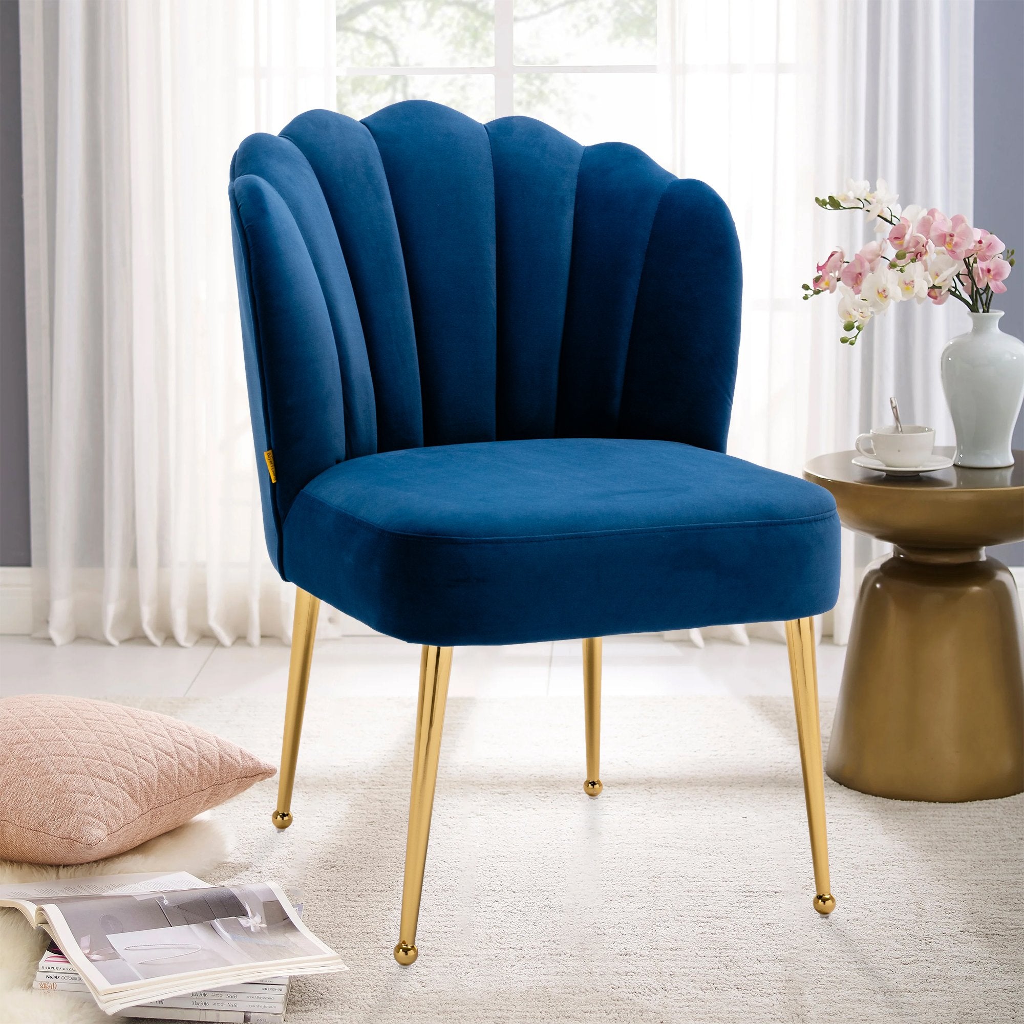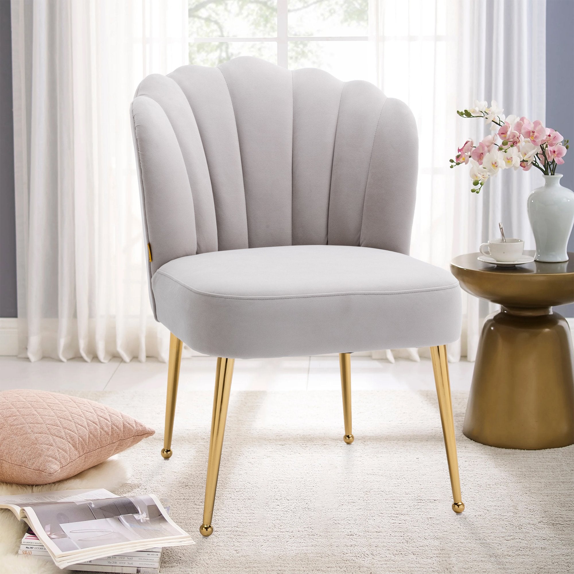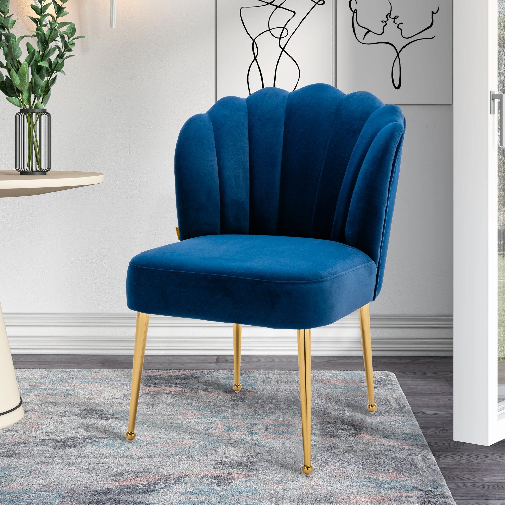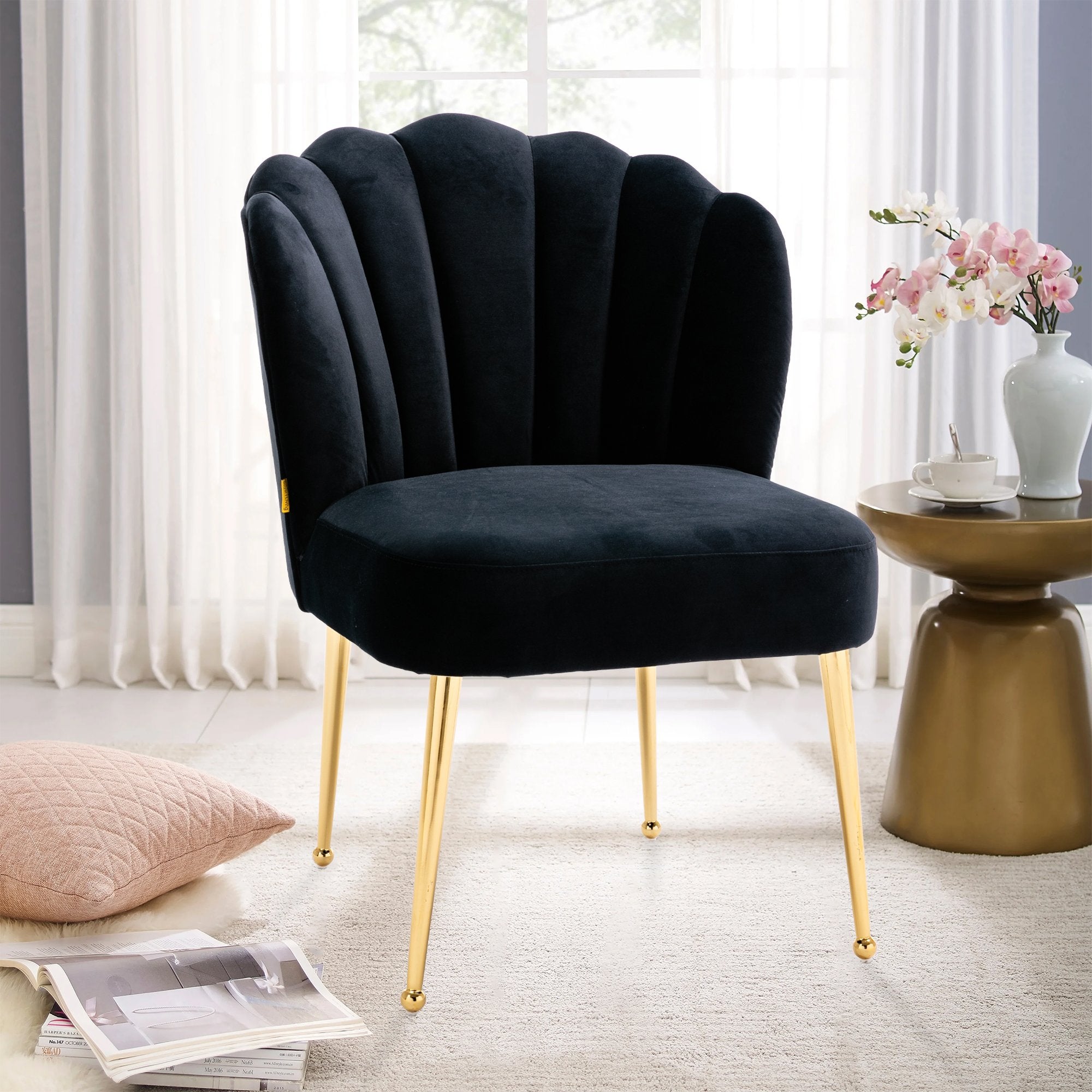 - This shell-shaped side chair is a high-quality piece that gives a comfortable feeling. You can instantly transform your living room, dining room and bedroom with this modern velvet accent chair.