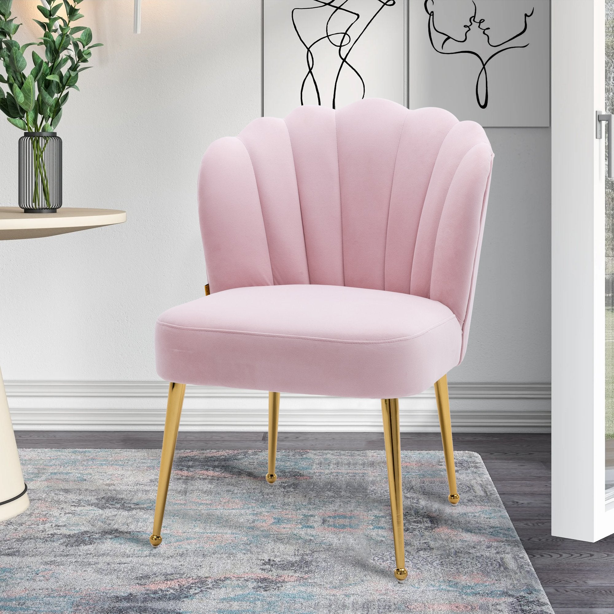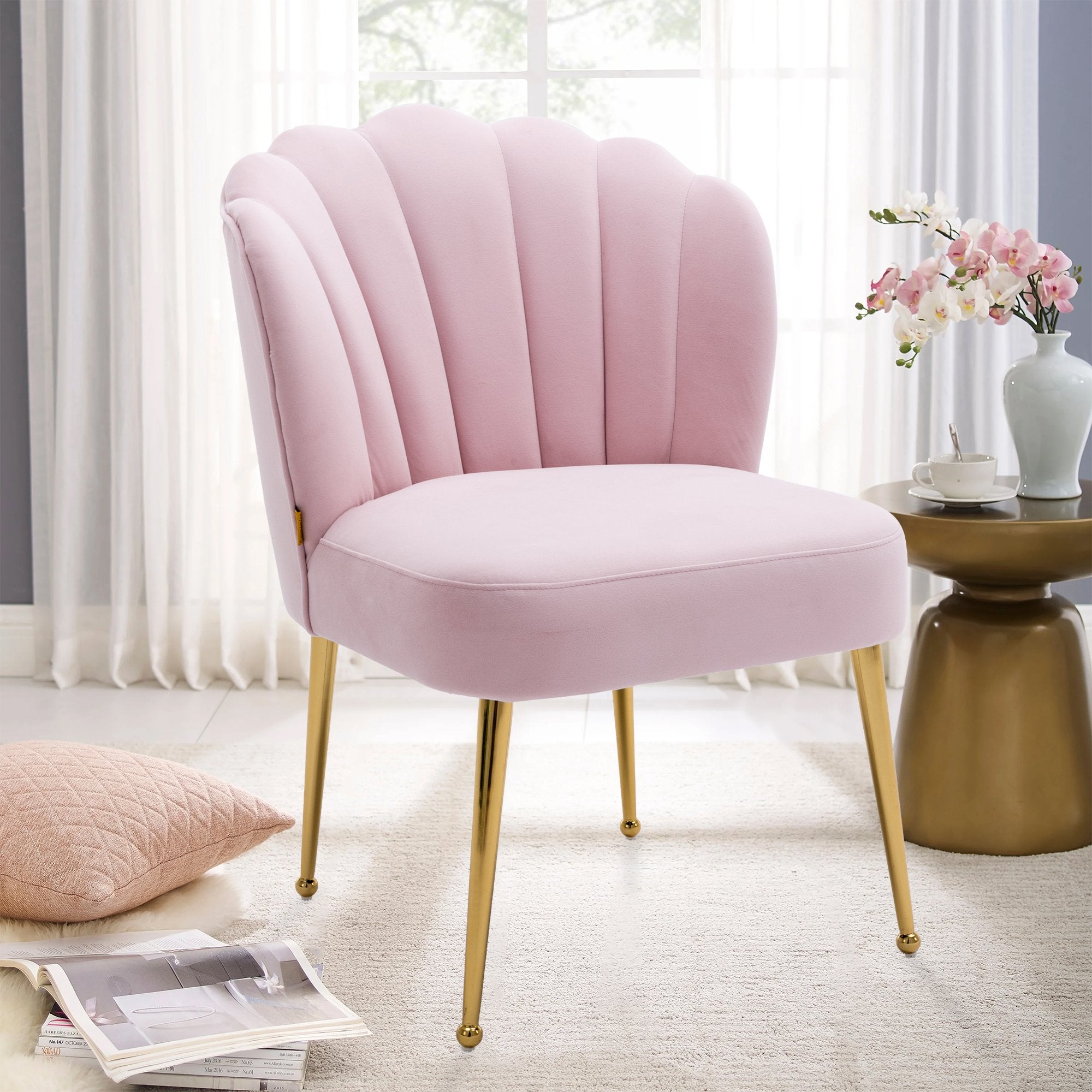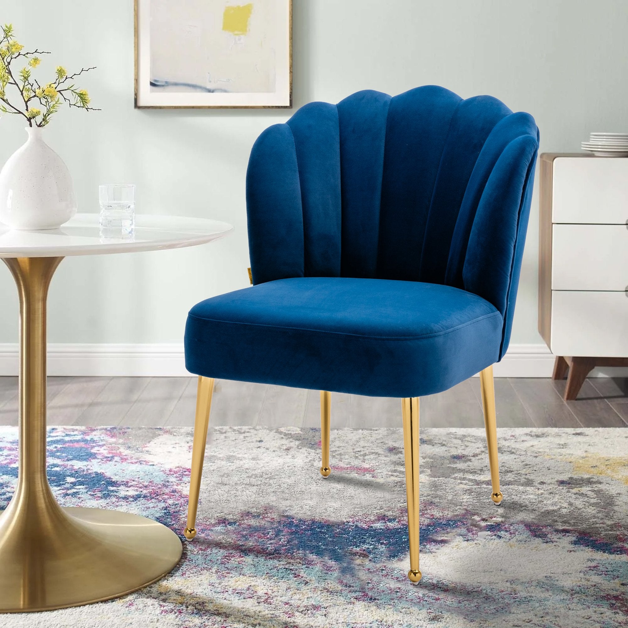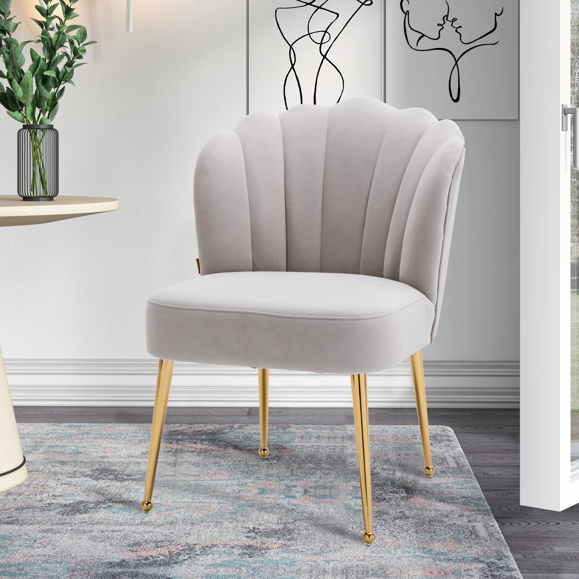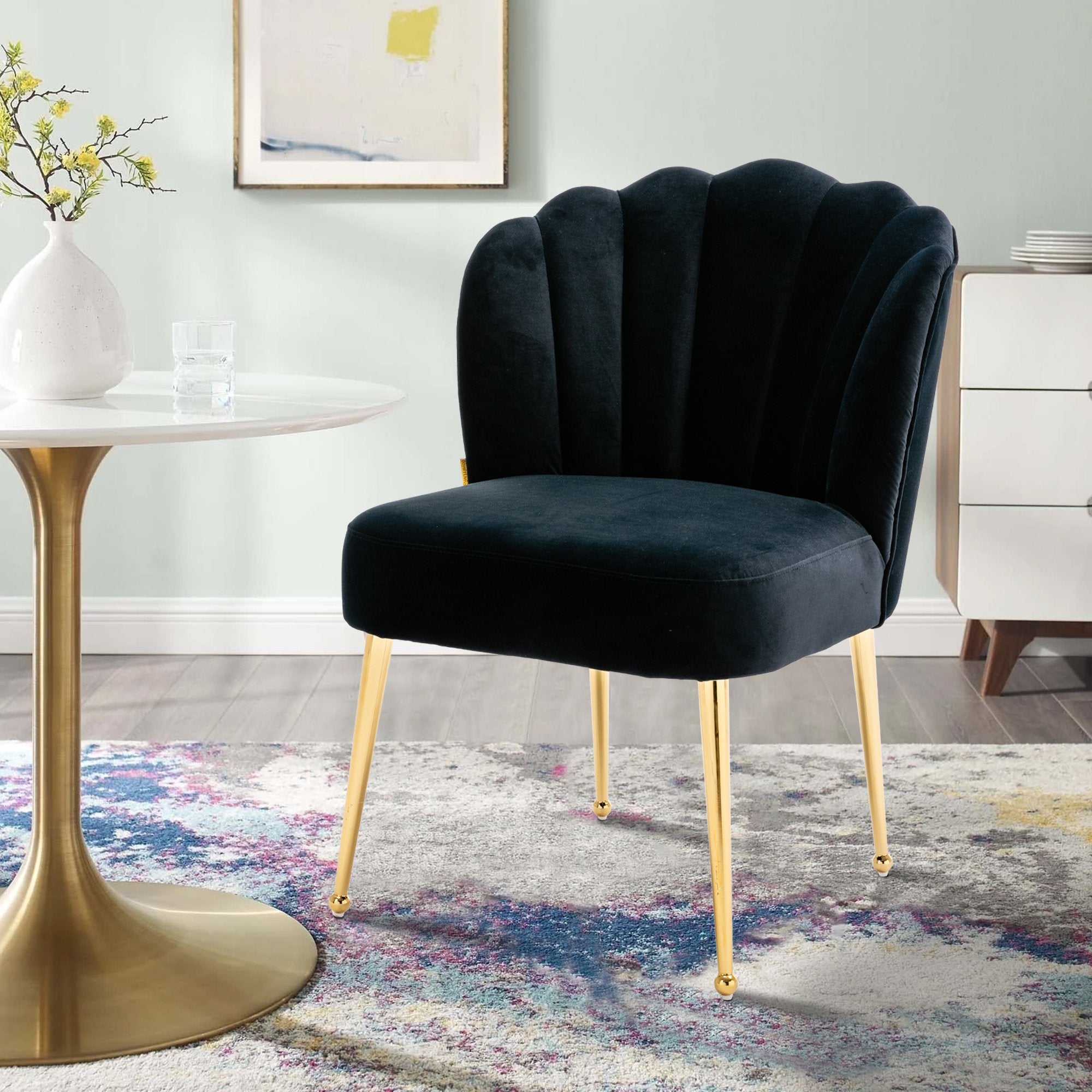 - This shell-shaped side chair is a high-quality piece that gives a comfortable feeling. You can instantly transform your living room, dining room and bedroom with this modern velvet accent chair.