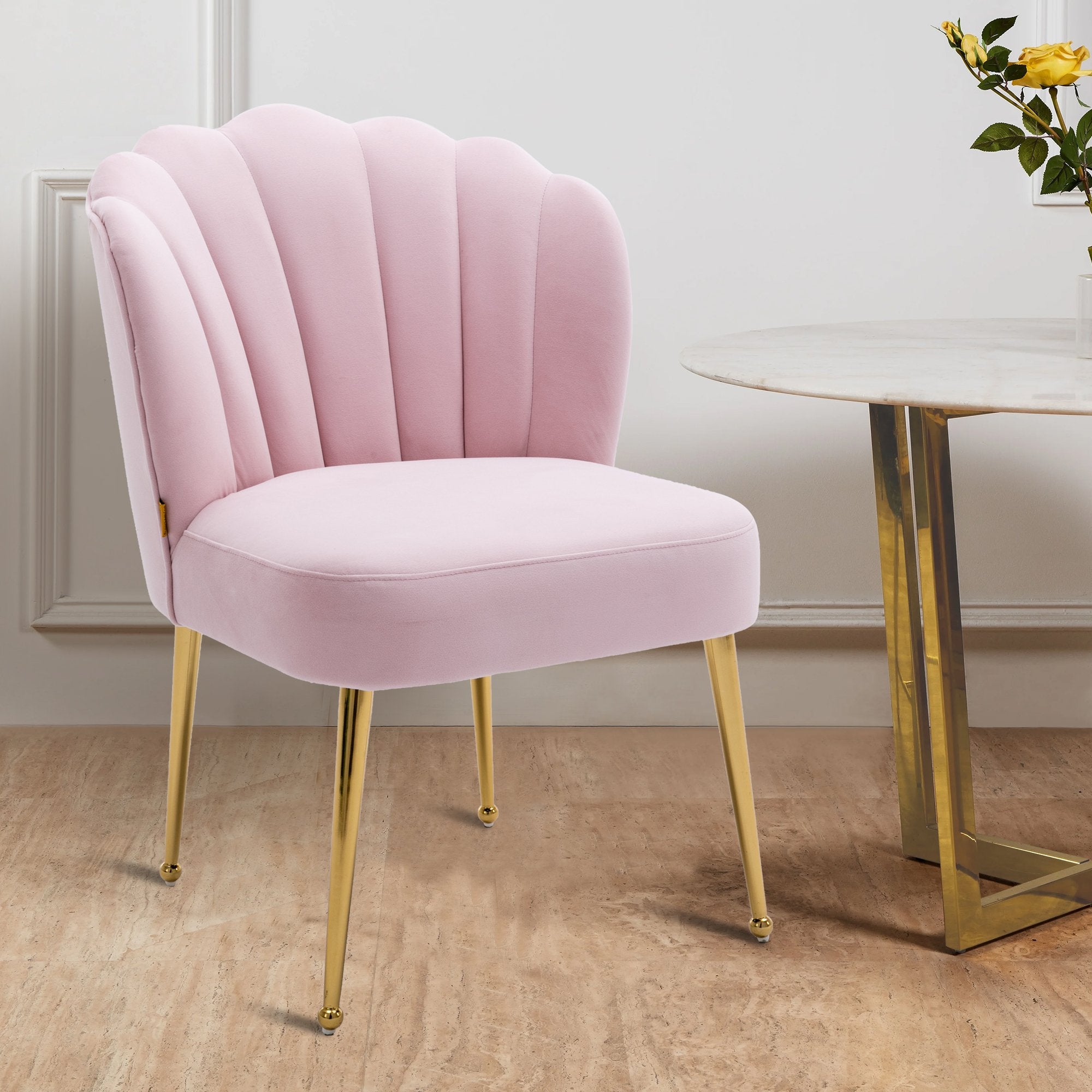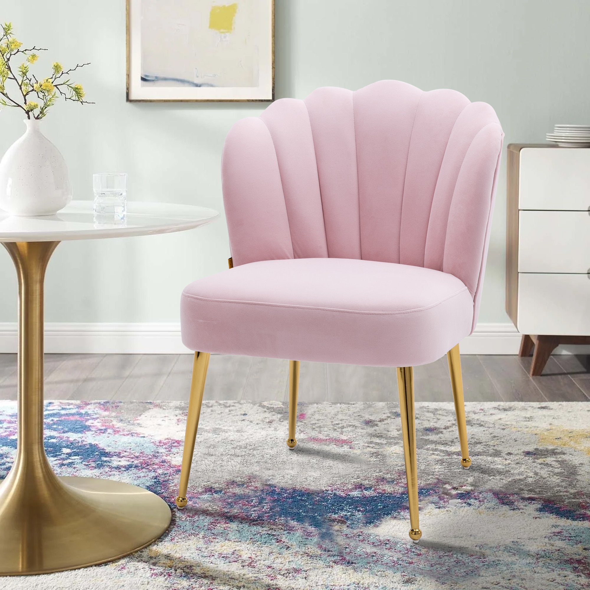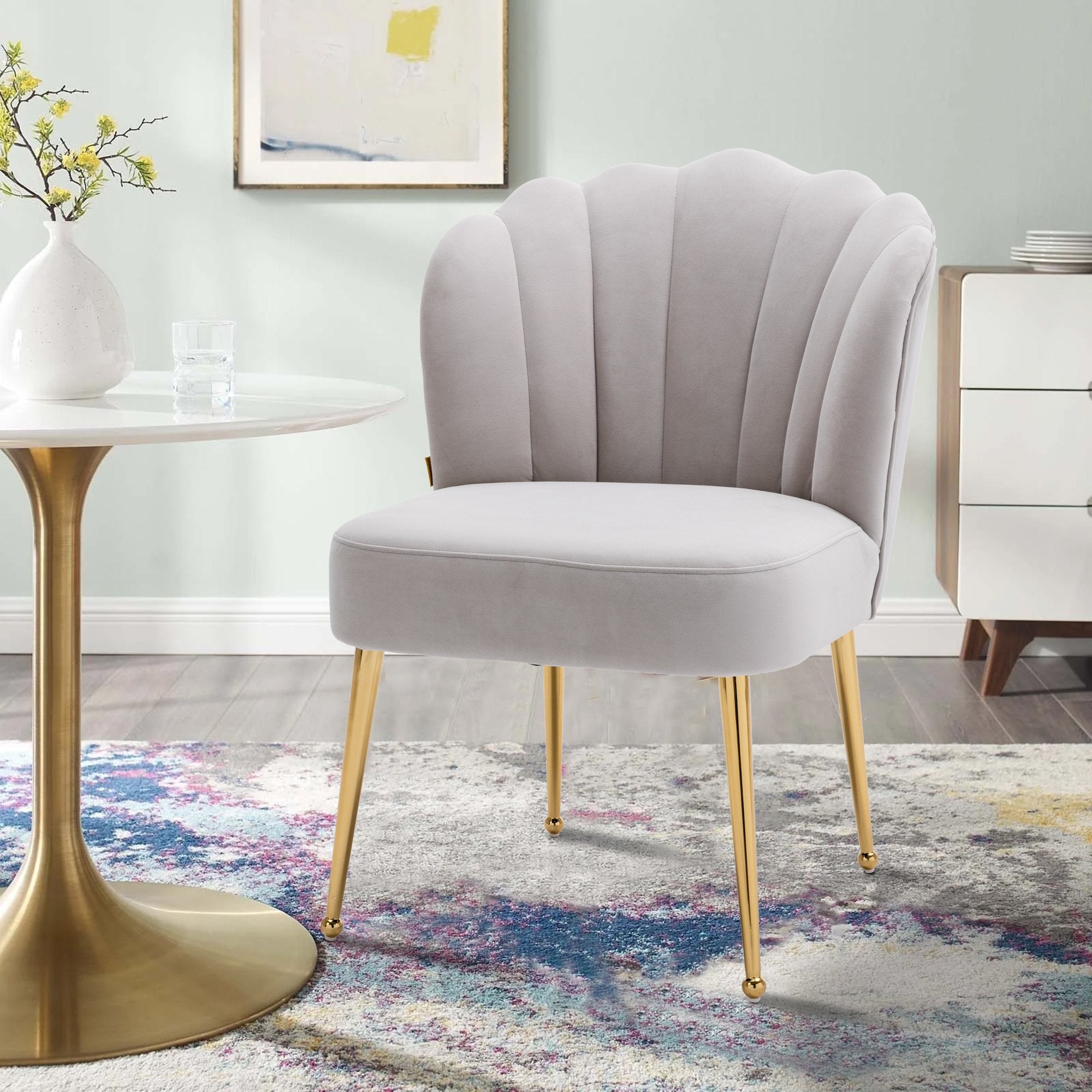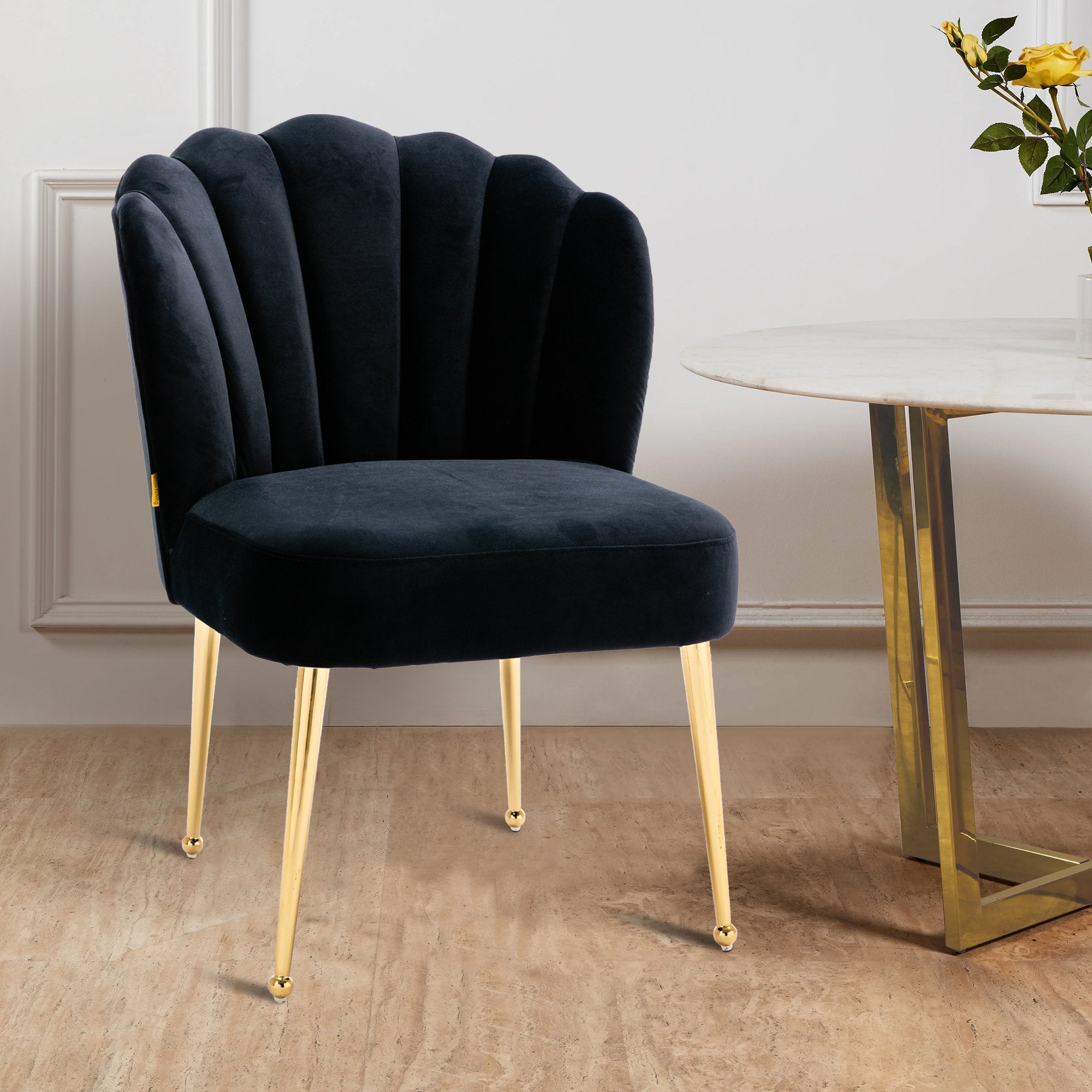 - This shell-shaped side chair is a high-quality piece that gives a comfortable feeling. You can instantly transform your living room, dining room and bedroom with this modern velvet accent chair.