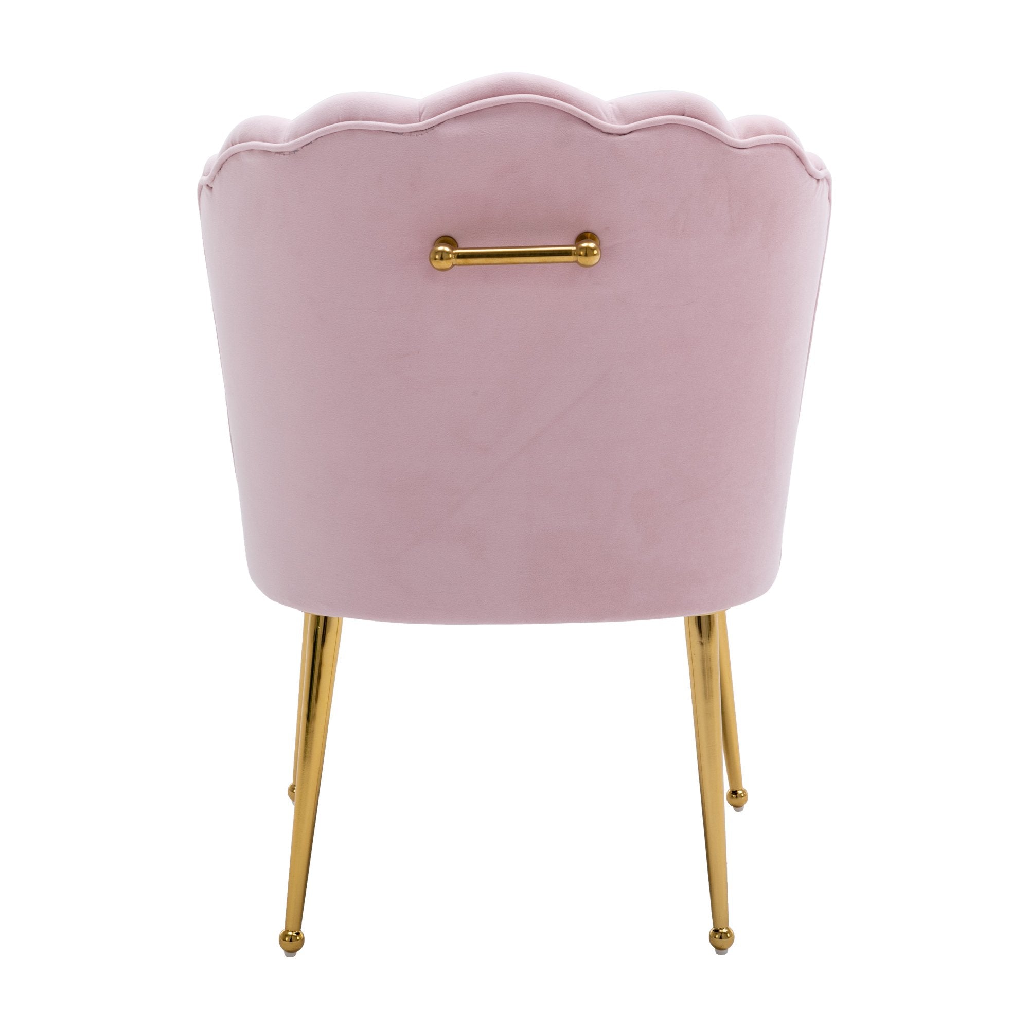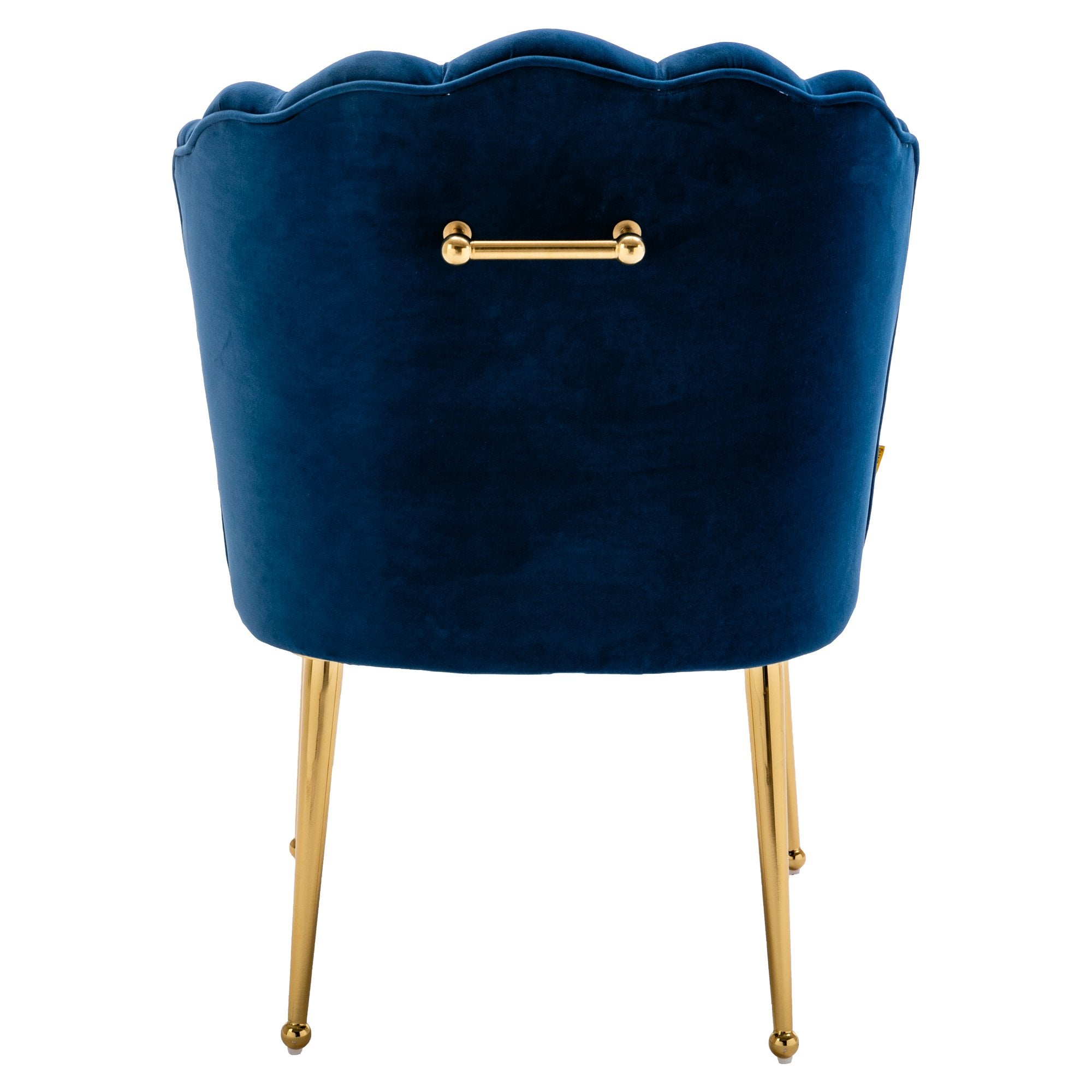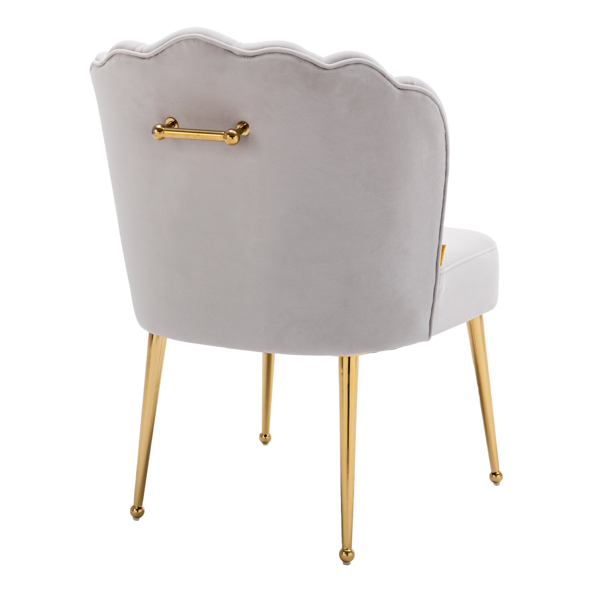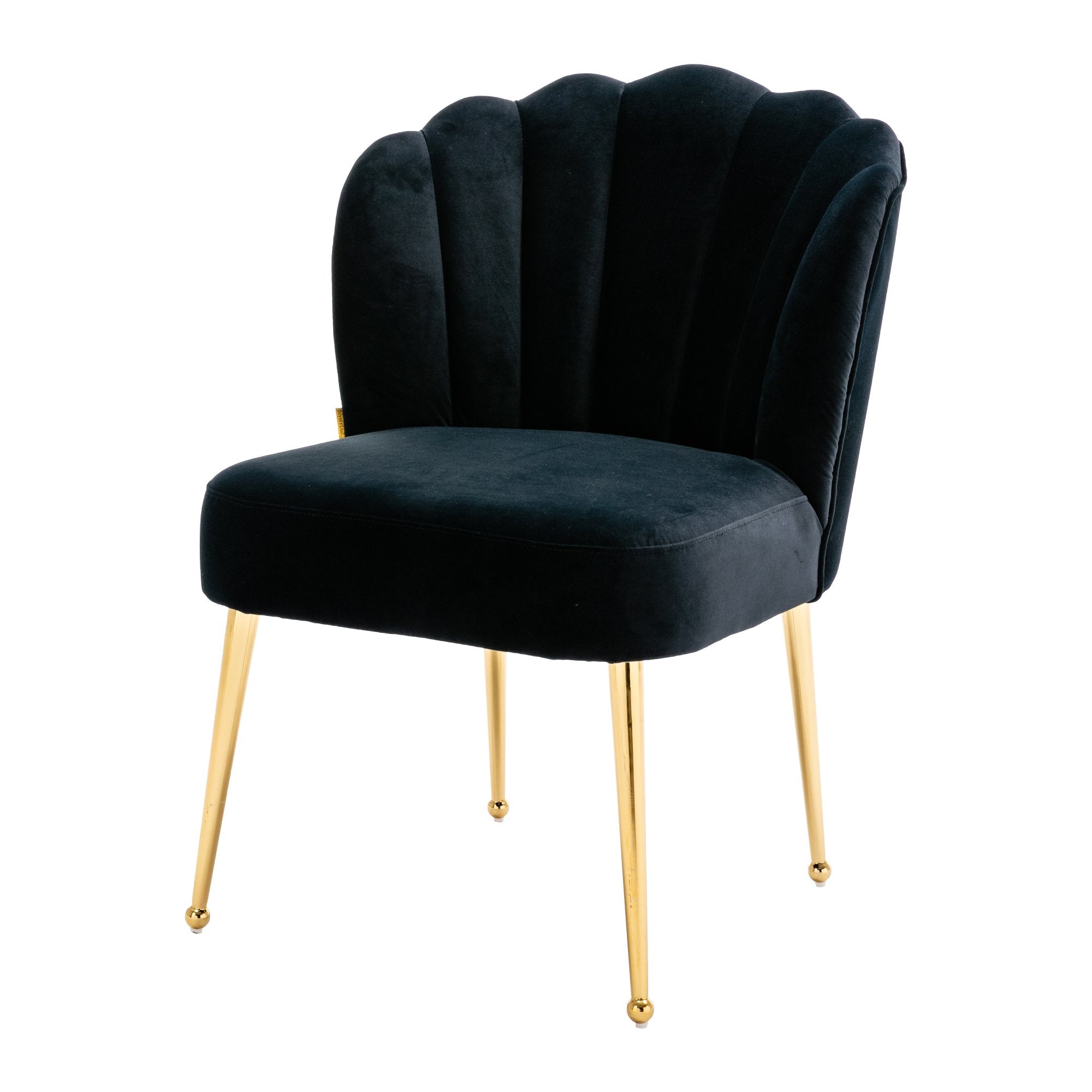 This modern style accent chair is perfect for small spaces, whether you pull it up to your dining table or complete your living room with an extra seat. Elegantly upholstered velvet curves meet sleek metal legs, and the scalloped shell backrest creates an artistic elegance that gives this chair a contemporary flair and adds a chic ambiance to your dining room, den or bedroom.