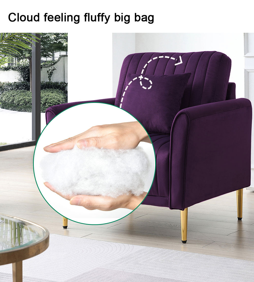 Modern Soft Velvet Accent Chair Living Room Chair Bedroom Chair Home Chair With Gold Legs, Purple