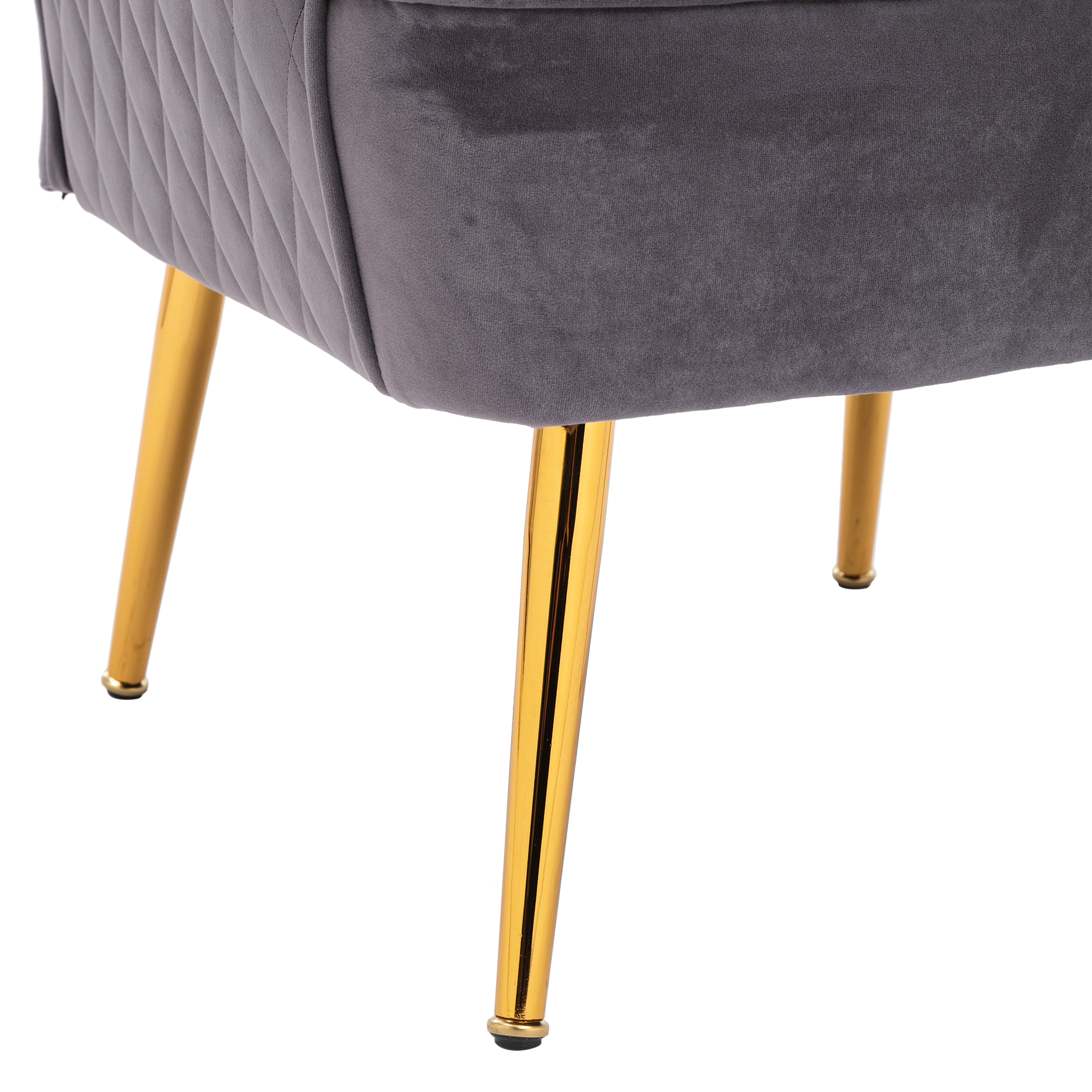 | 3.Soft and durable skin-friendly fabric cover, wood frame matches the high density foam, tapering metal legs and universal foot stops with a golden finish ensure added stability and luxury style. | |