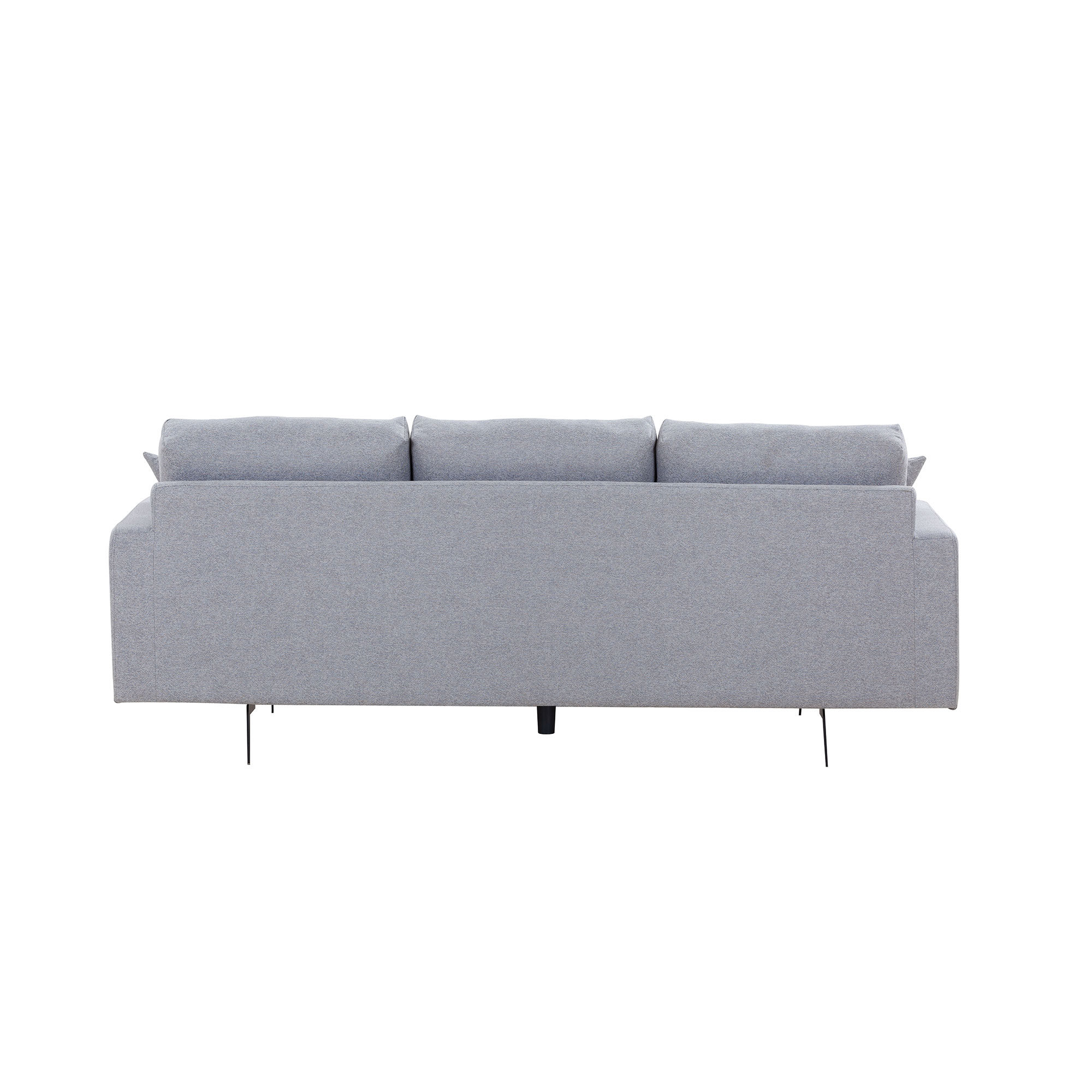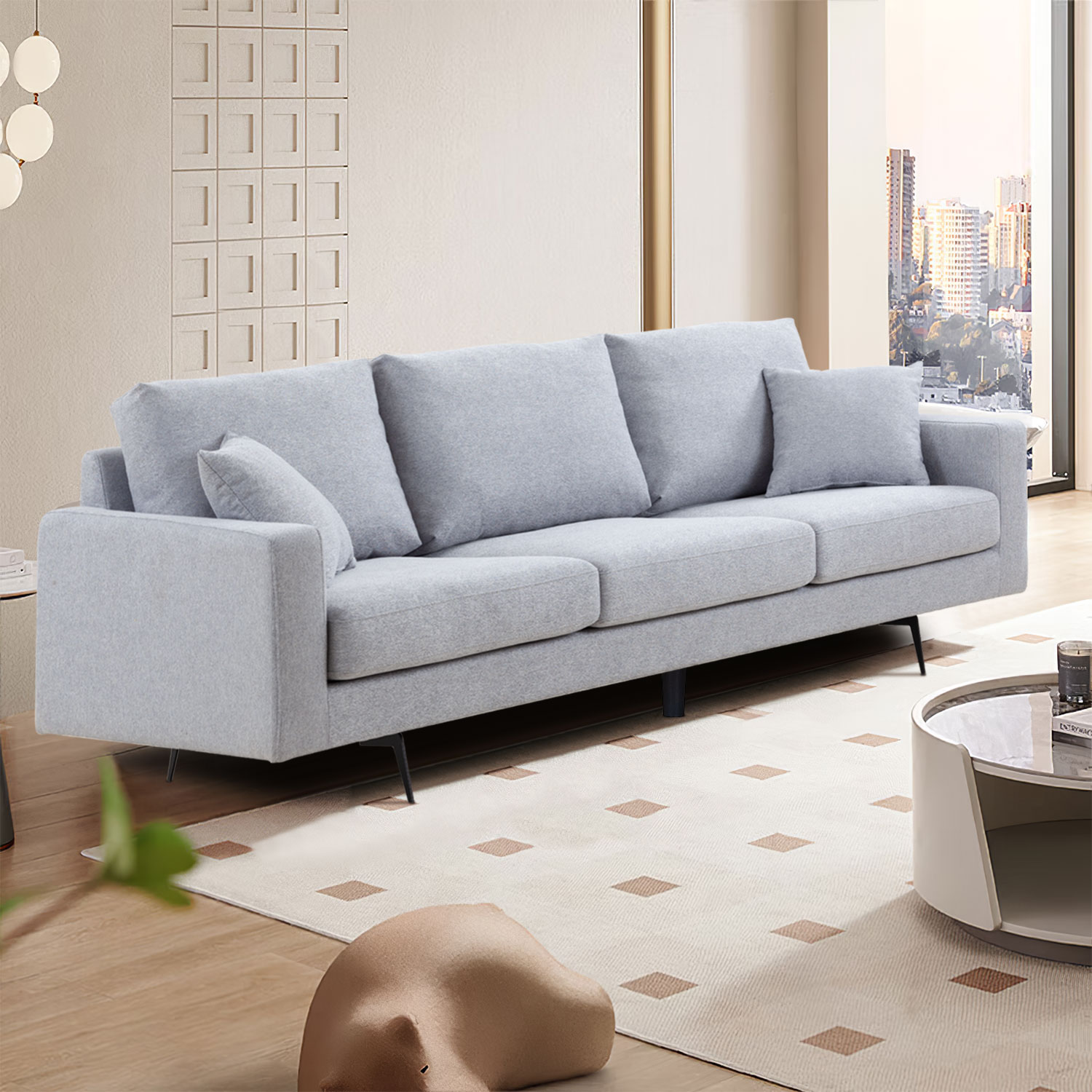 * Ample seating: The three-seat design of this sofa ensures there's plenty of room for friends and family to sit comfortably together.* Plush comfort: The thick sponge padding and included pillows provide cozy support that's perfect for lounging and relaxing.* Long-lasting structure: Made with a solid wood structure and high-density spring support, this sofa is built to last and withstand years of use.* Modern design: The sleek metal legs give this sofa a contemporary edge that will elevate any living space.* Easy to clean: The durable upholstery is easy to clean and maintain, so you don't have to worry about stains or spills.* Comfortable for all: With its spacious design and supportive cushioning, this sofa is suitable for people of all ages and body types.* Great value: This sofa offers both comfort and quality at an affordable price, making it an excellent investment for your home.