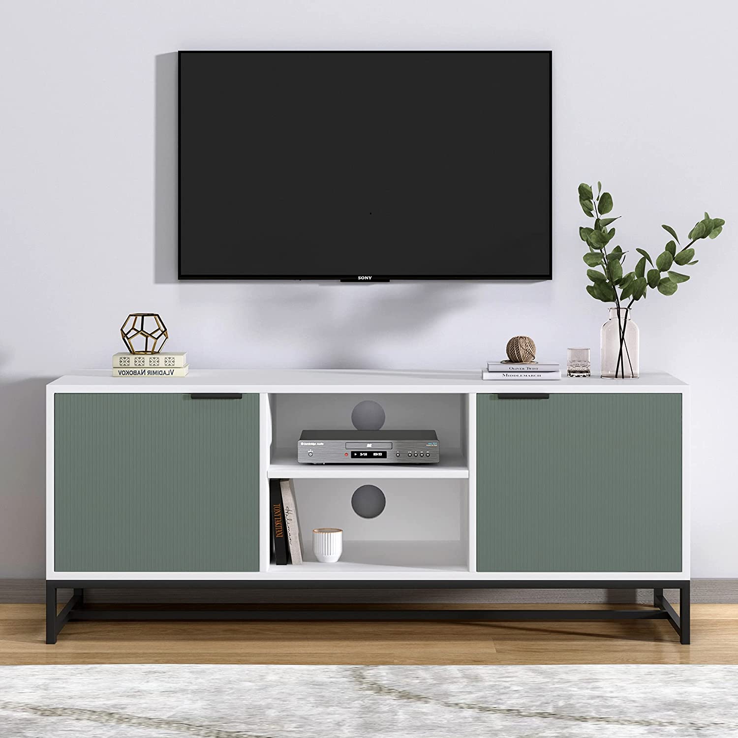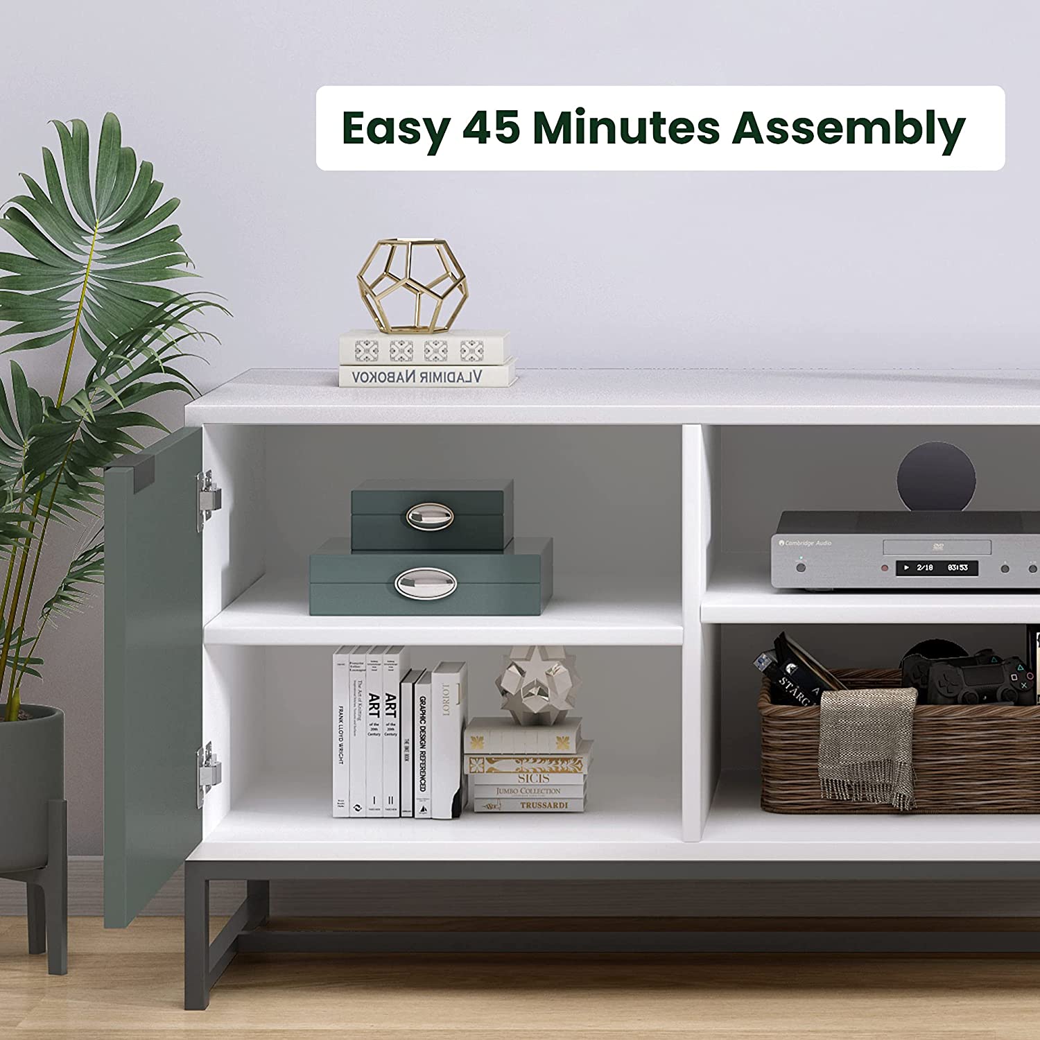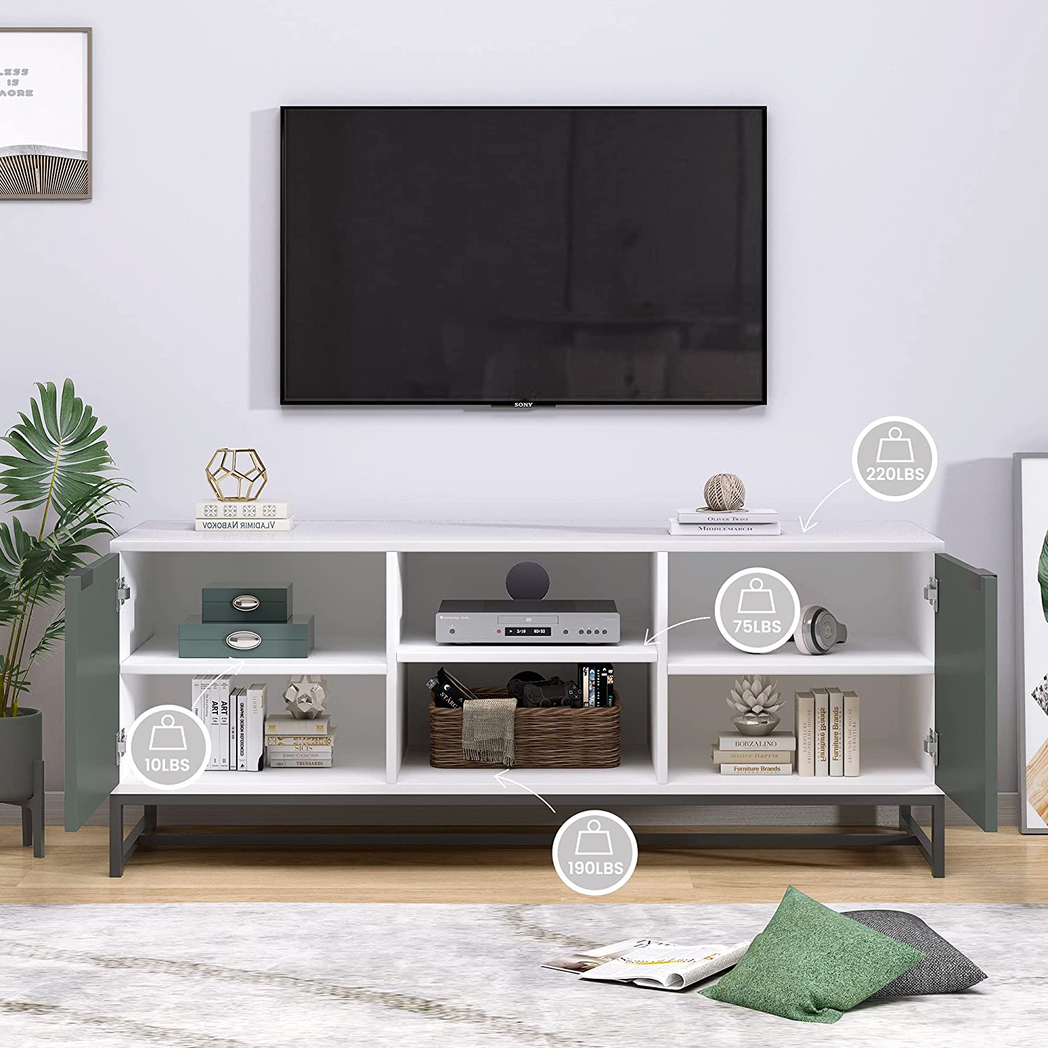 【Sleek Modern TV Stand】As the core of living room furniture, a nice TV stand is sure to grab everyone’s attention. This TV stand is a blend of function and aesthetics.The combination of gray and white color highlights elegant and modern home decoration style. The cabinet door is designed with customized lines, which adds a unique sense of bumps. It looks awesome and accommodates up to 58” screen TV easily. Are you ready for everyone who comes to your house to praise this TV cabinet?