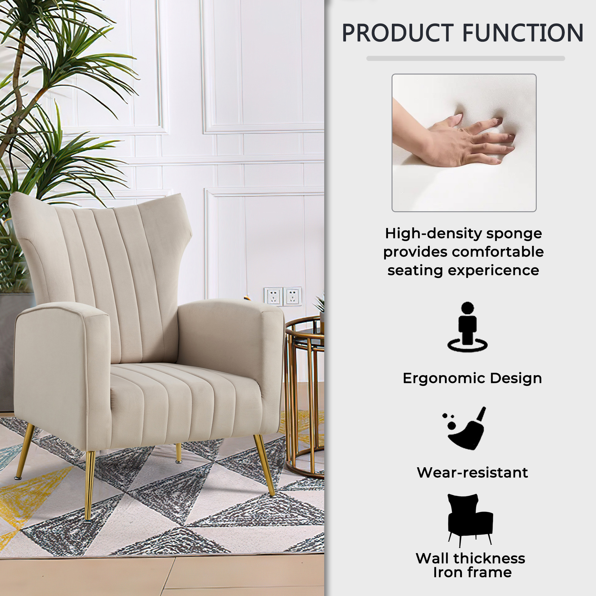 | Chair Back and Seat: | Metal frame+Sponge+Velvet |
