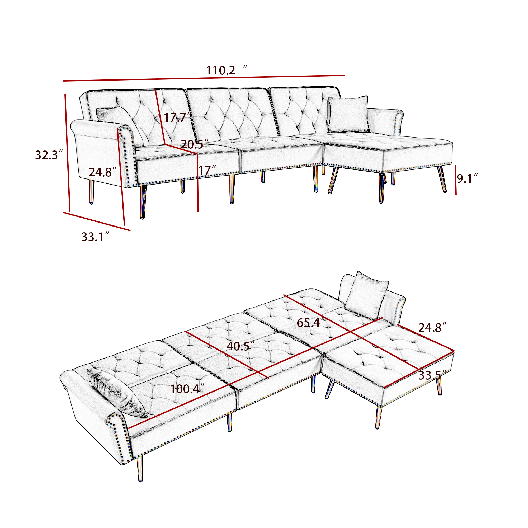 Sofa Size : 110.2"W * 33.1"D * 32.3"H
