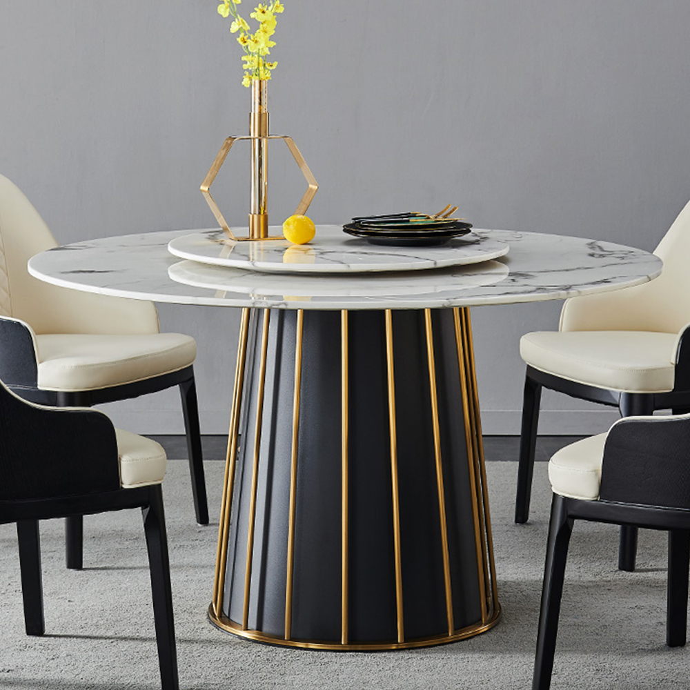 This round marble dining room table remains a beautiful veining pattern in the years to come. With a modern design showing a simple but long-lasting look. It's also a lazy Susan dining table. With this detachable Lazy Susan ring, you can reach every fabulous dish by rotating it without leaving your seat. You can also move it away according to different needs.
