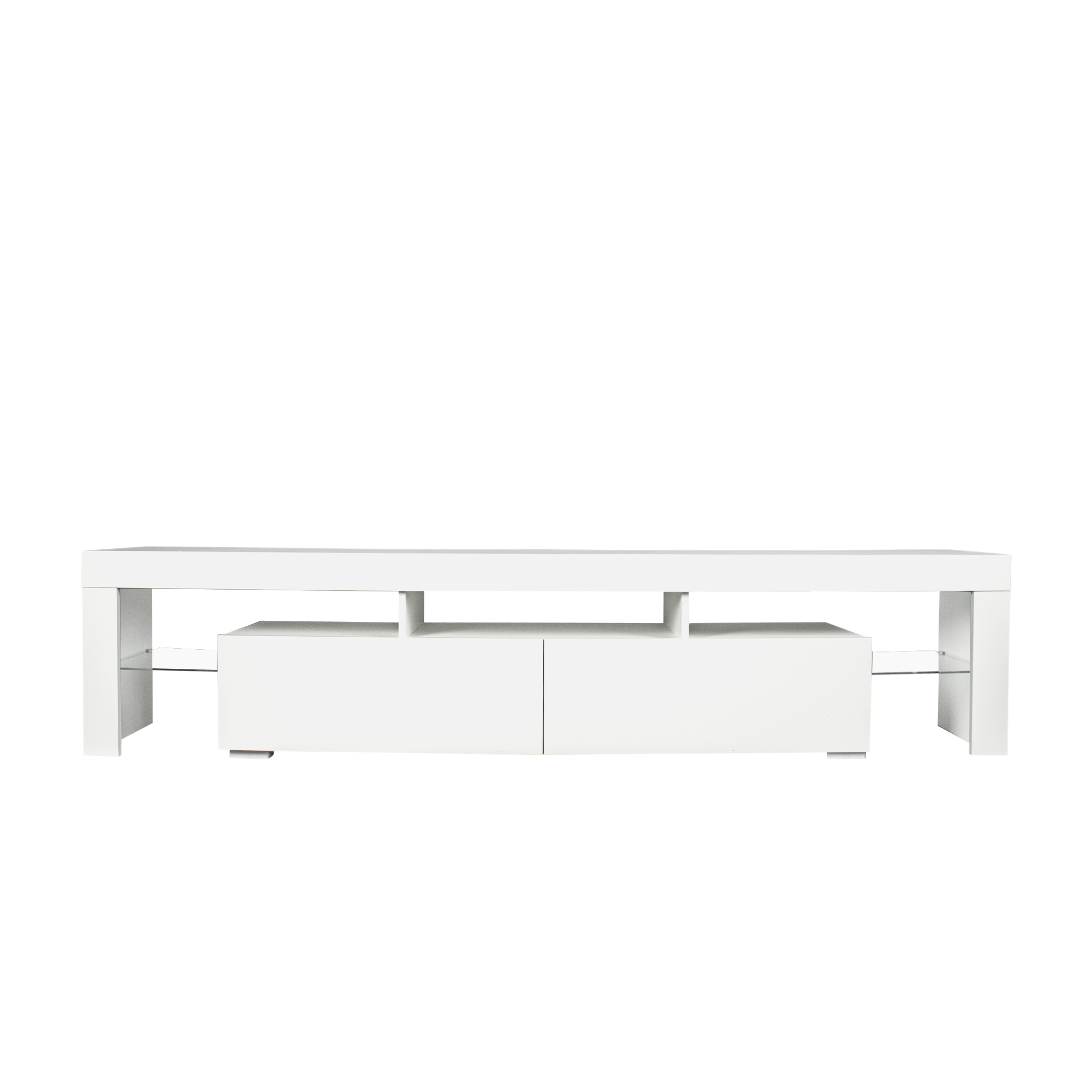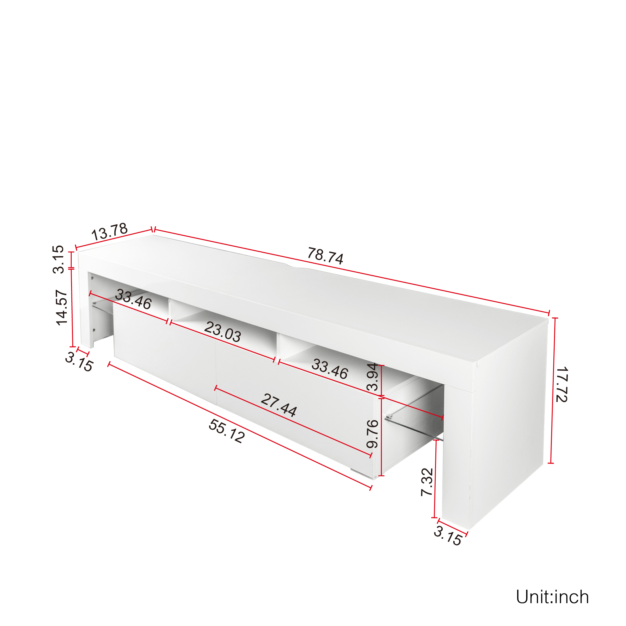 · Large Storage: 78.74" W x 13.78" D x 17.72" H. This under TV is suitable for Up to 80-inch TV. The White TV stand features two drawers and open shelves. Plenty of storage space for your entertainment consoles, you can put Xbox, PS4 and even books and magazines in the cabinet that can help you keep your home tidy and clean