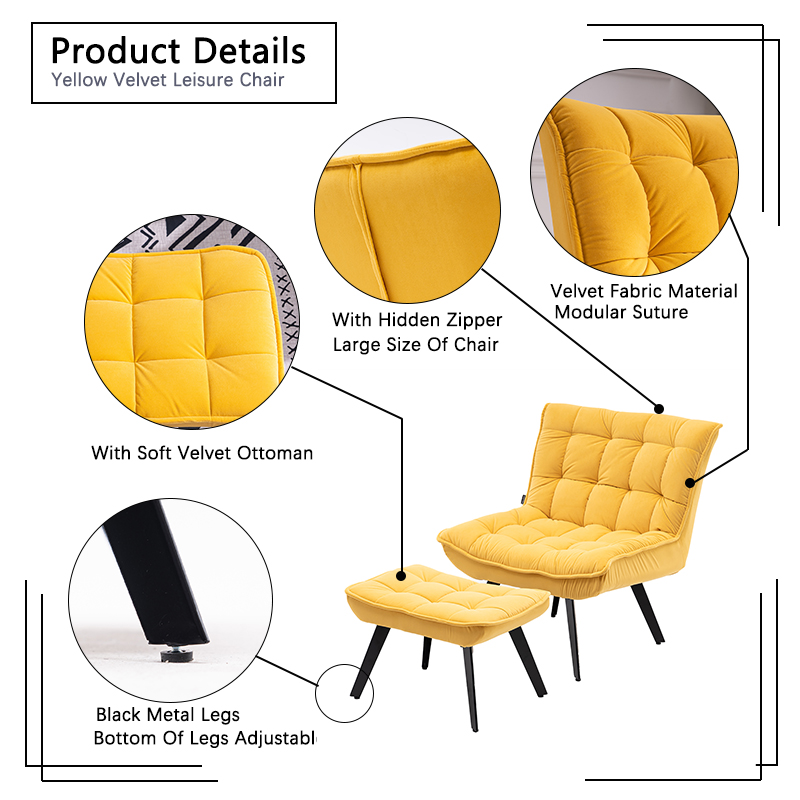 5.The reclining back velvet accent chair with velvet ottoman set,It can make you more comfortable to watch movies or play video games or more.