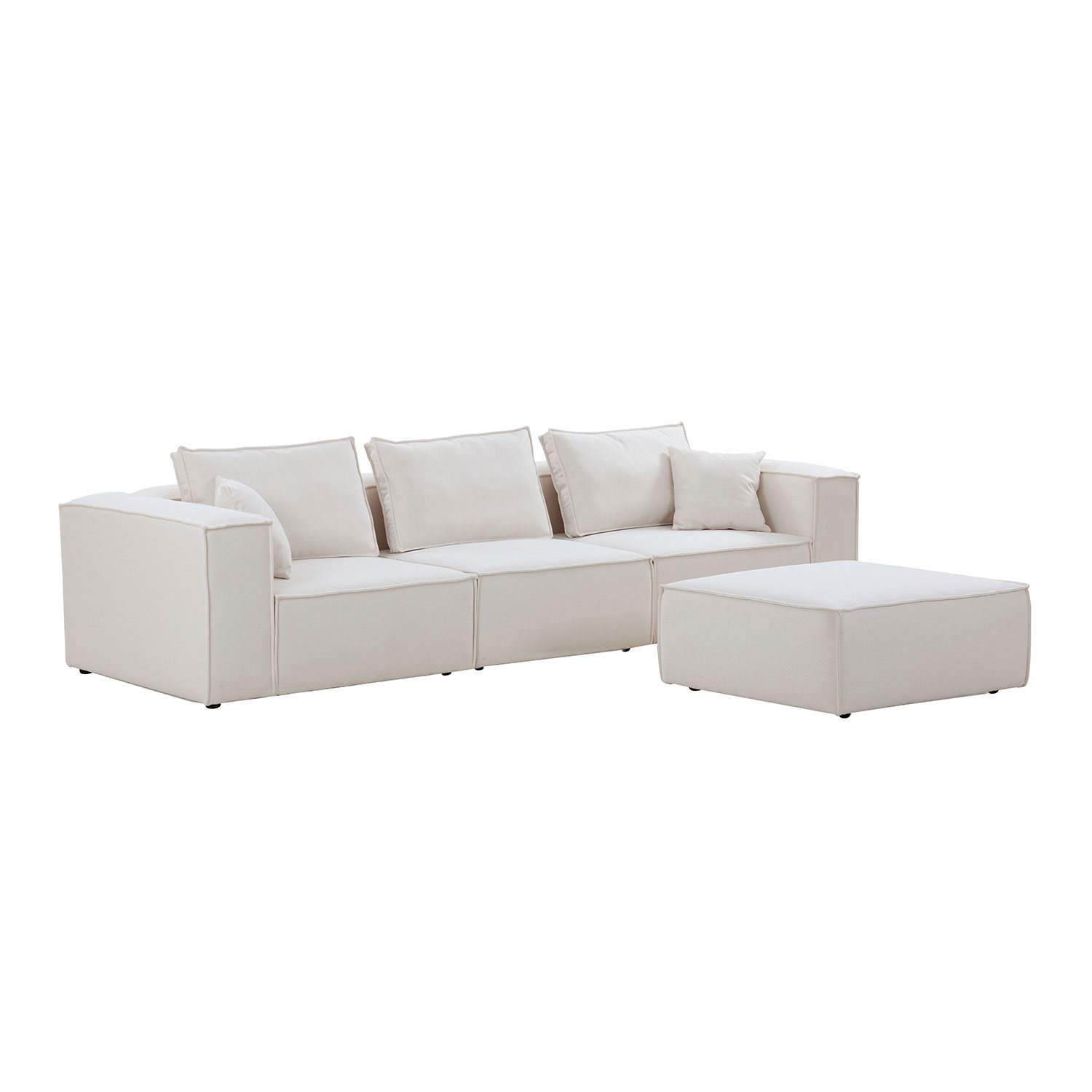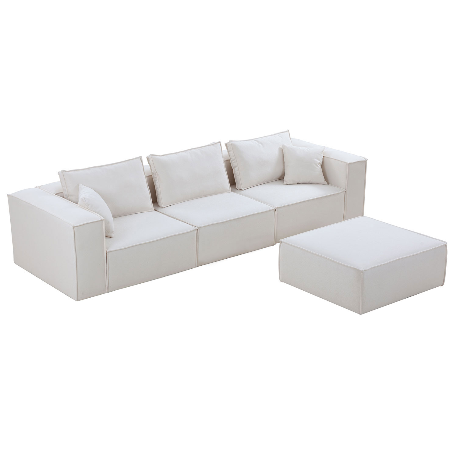 Modular Sectional Living Room Sofa Set, Modern Minimalist Style Couch with Ottoman and Reversible Chaise, L-Shape, White