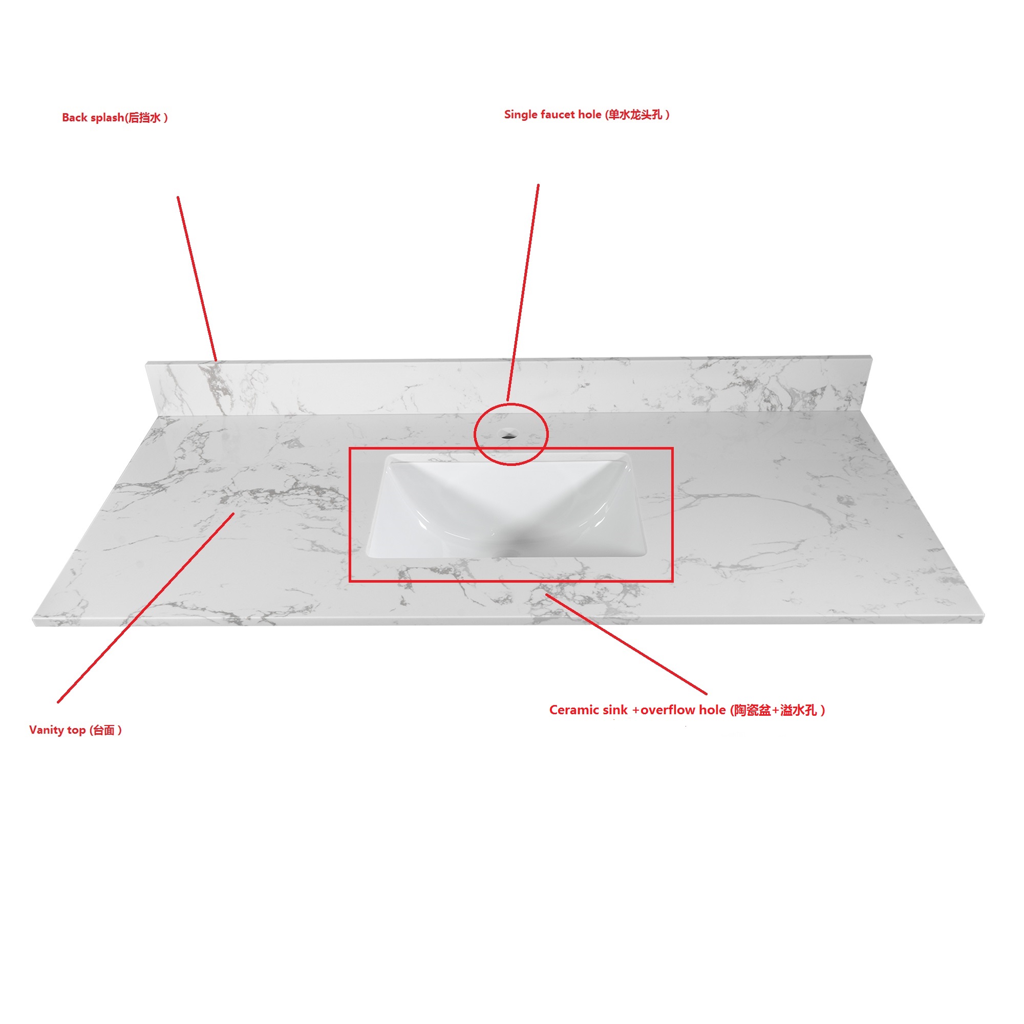 Product incude : Stone vanity top + backsplash+ceramic sink + drawings inch