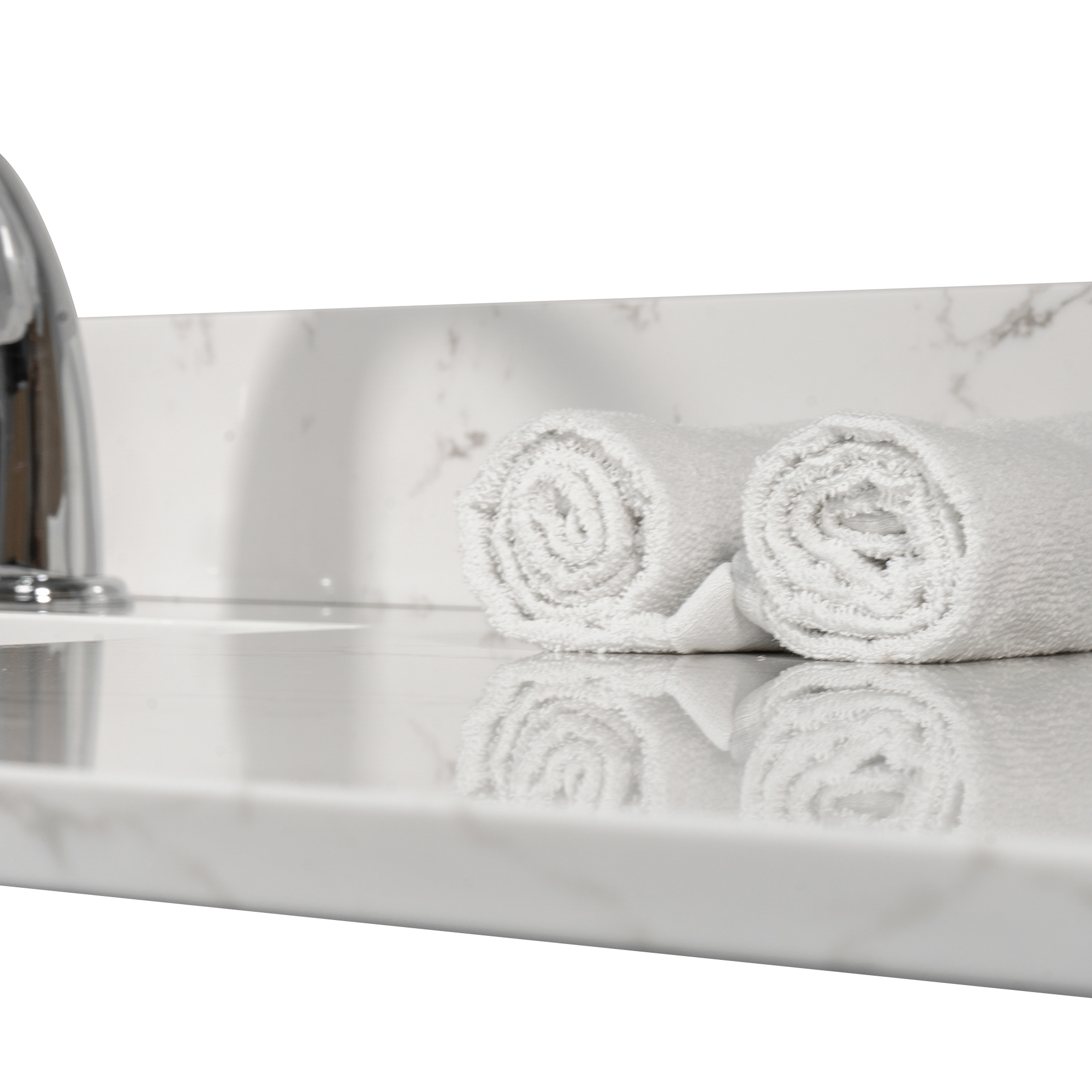 - [Elegant & Stylish Top] Warmly elegant and stylish Carrara marble vanity top complement most Bathroom designs and coordinate with both light and dark cabinetry High-end and classic natural stone top Pre-sealed and Polished for added protection