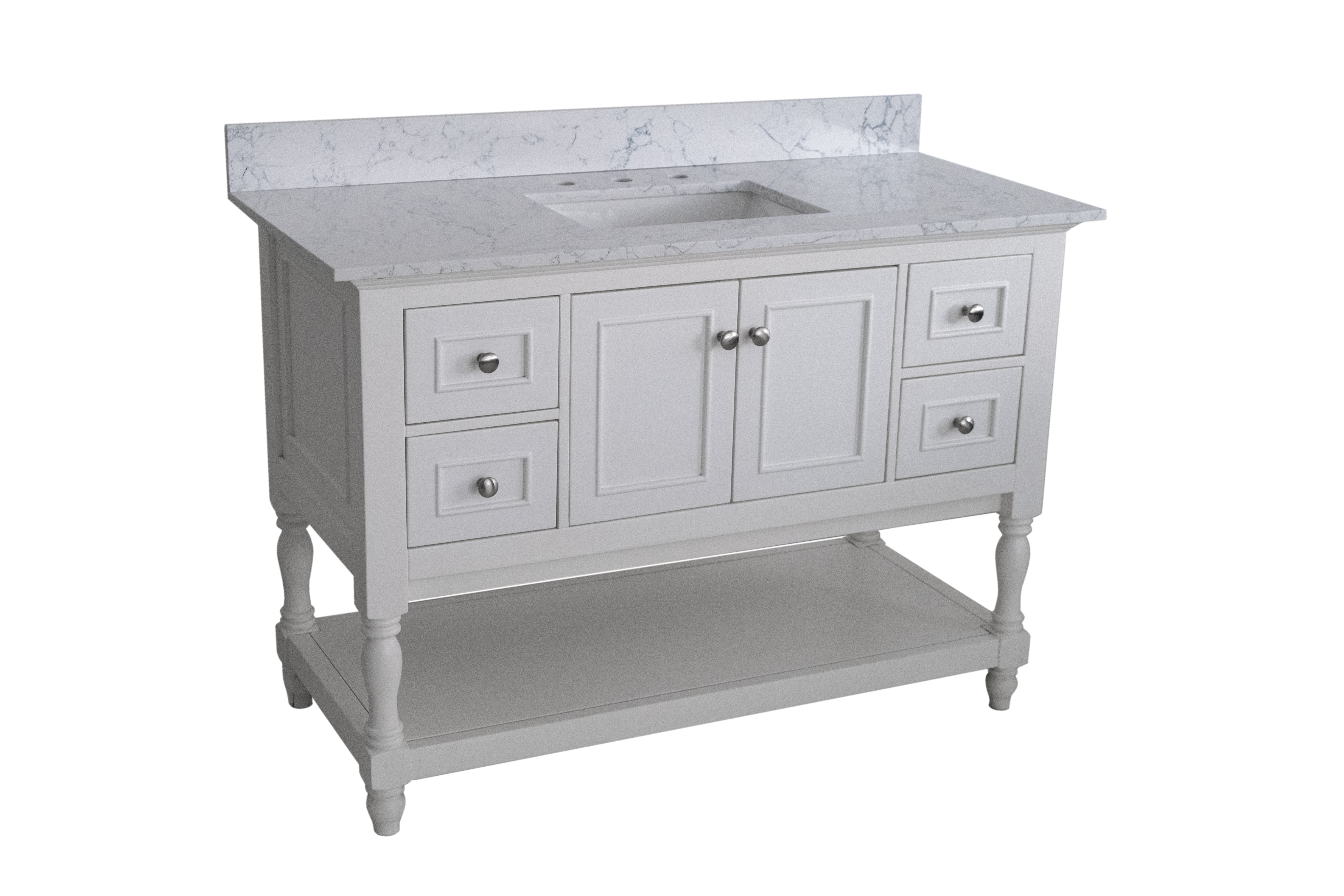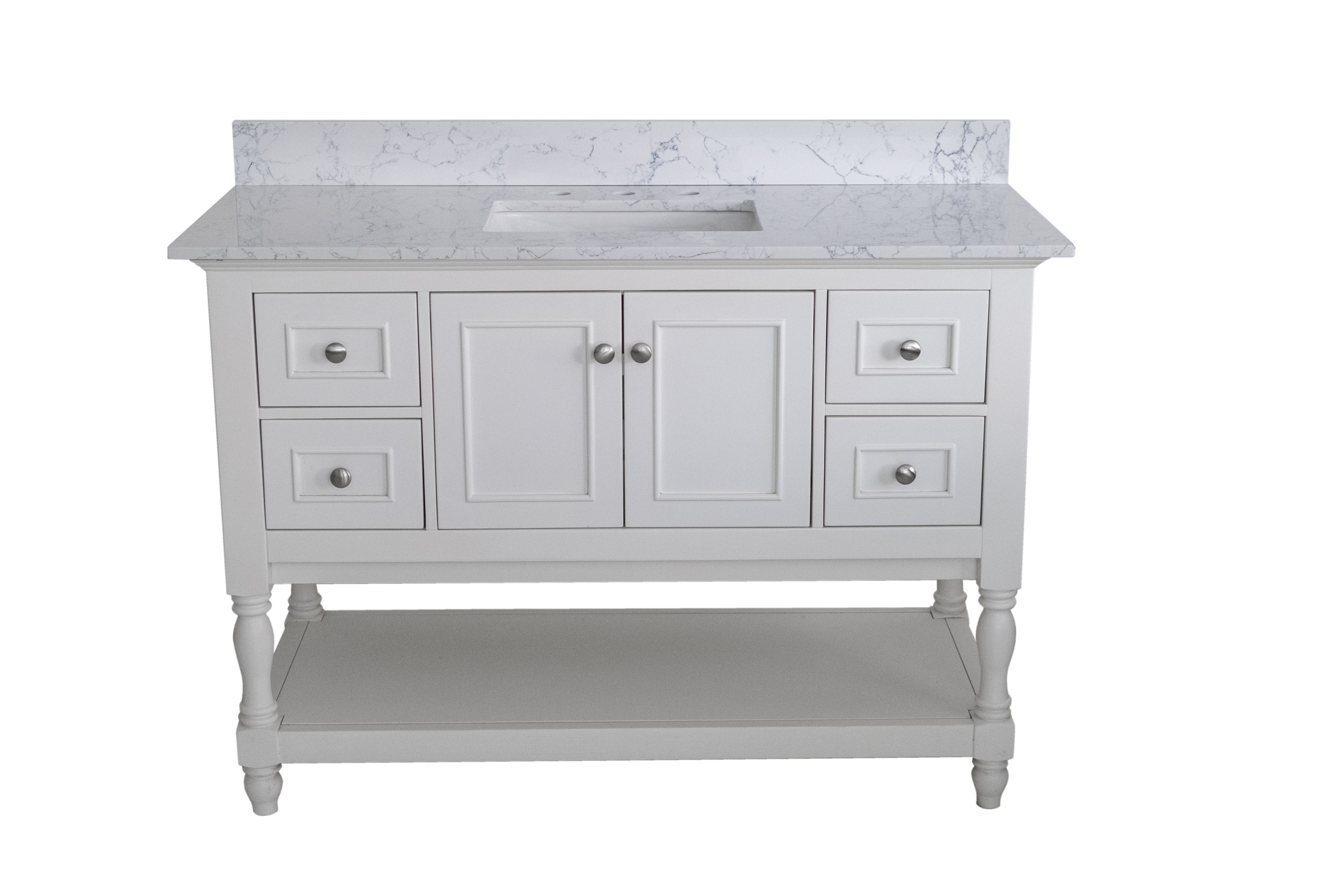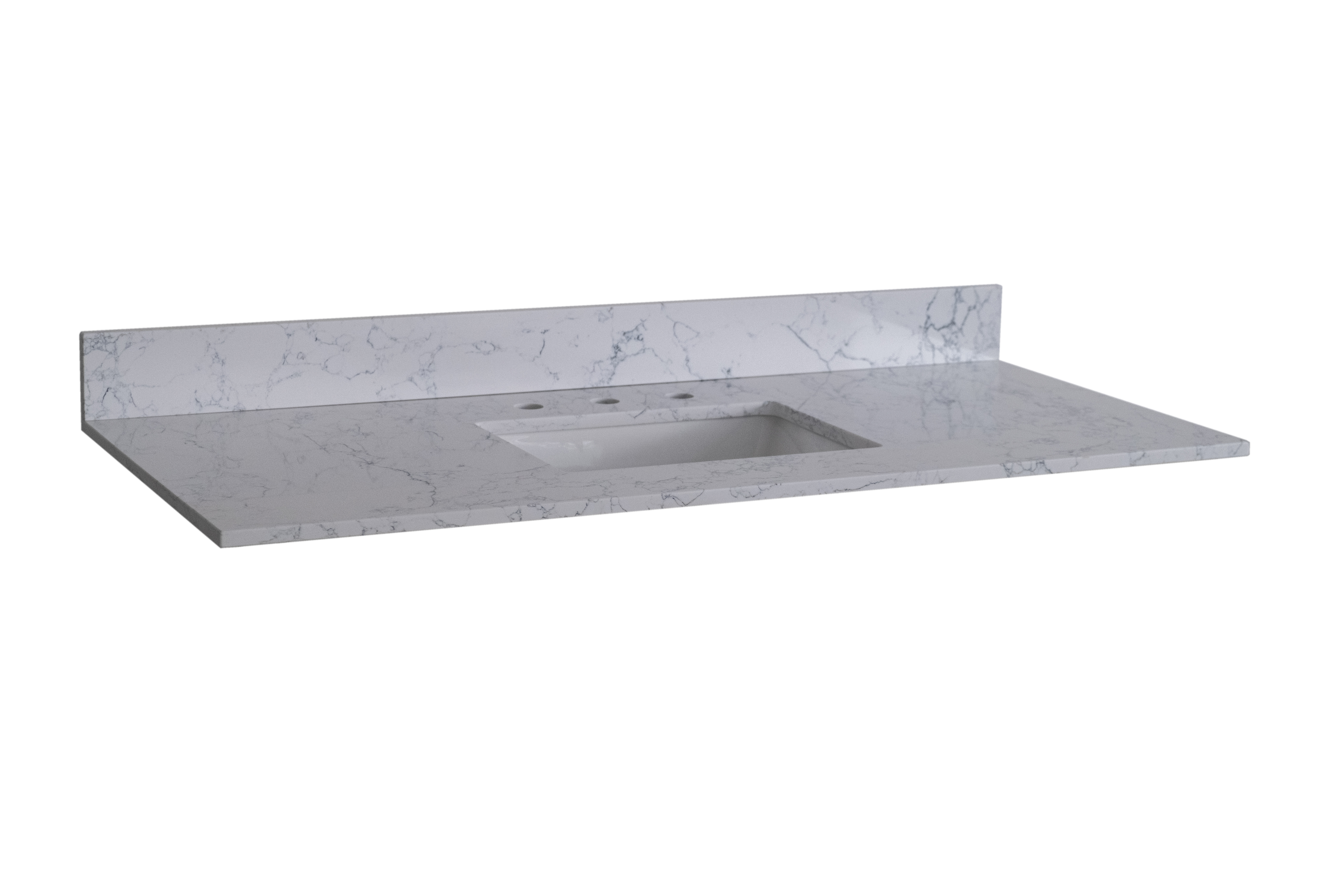 • [Easy to Installation] Top pre-drilled for 8-inch widespread faucet Assembled stylish rectangular white vitreous china under-mount bowl with safety overflow hole This top is perfect for quick and easy remodels Obtain the beauty and durability of marble without hiring a professional