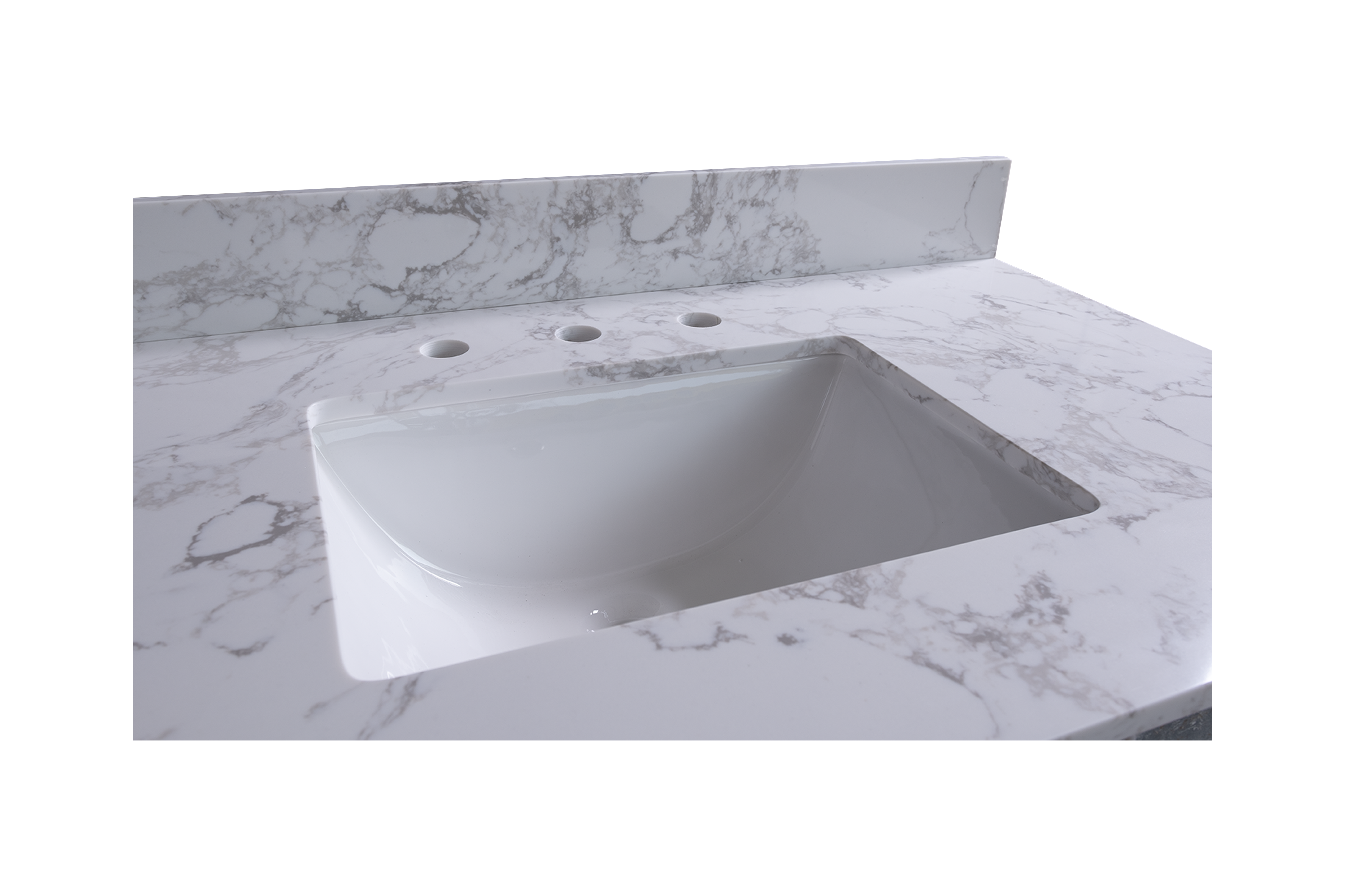 Monetary 49" carrara white engineered stone vanity top backsplash