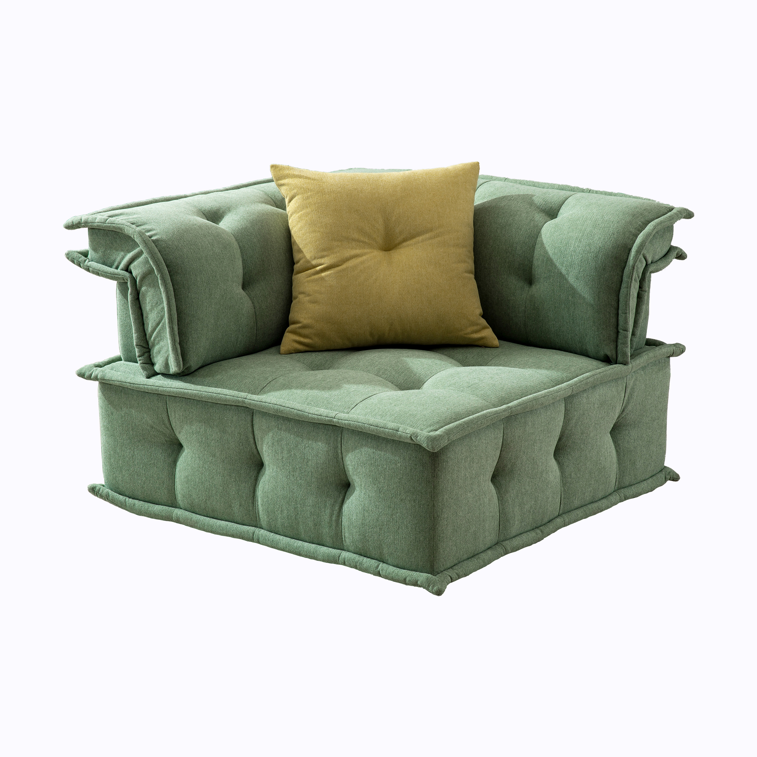 Sectional Sofa Offer includes: 2 Armless Chair, Corner Seat and 2 Ottomans + PillowsYou can have every color on one sofa! This sectional is very much and Looks Spectacular. Your guests will be amazed by the attractive and functional sectional sofa. The sectional sofa uses shiny velvet fabric, giving it a very relaxing feel and luxurious look. Pillows are included to match the colors and fabric of the sofa. Comfortable seating for six people, this is definitely a piece of furniture that will liven up any room.This modern sectional is an eclectic piece that provides an eye-catching and inviting appearance. Along with its fun color scheme, it features beautifully tufted upholstery and will provide inspiration to your living space.The Modular Sectional Sofa multi-colored velvet fabric sectional sofa with a low-to-the-ground presentation showcases an awe-inspiring European design. Button-tufted seat and back cushions are comfortable for seating and the special design makes them look special. The varied colors of the pillows blended well with the mint and yellow hues of the sofa, giving it an exciting, outstanding appeal. The low-to-the-floor design uses shades of navy and grey for a vibrant look. The modular Layout of Divani Casa offers a unique opportunity for customization and tens of possible interior design options.Get a powerful turn-on for your home interior with Modular Sectional Sofa right now!Features:Modular contemporary-style sectional sofaSet includes 2 low profile armless detachable single-seaters, a corner seat, and 2 ottomansThe sofa may be arranged in different configurations to suit the living spaceUpholstered in 100% Floss fabric material with various chic colorful patternsAll of the seats and backs are high-density foam to give superb comfort and support