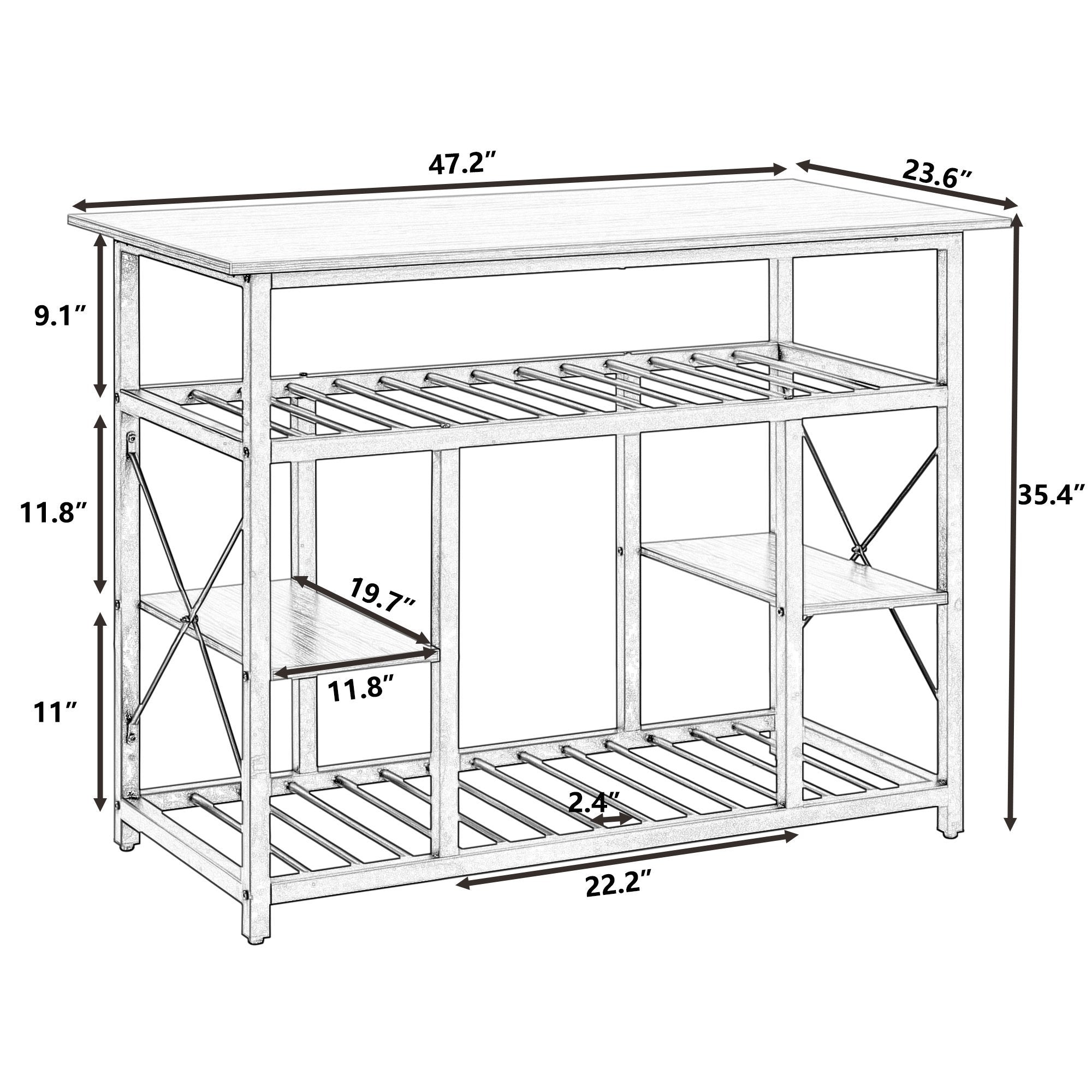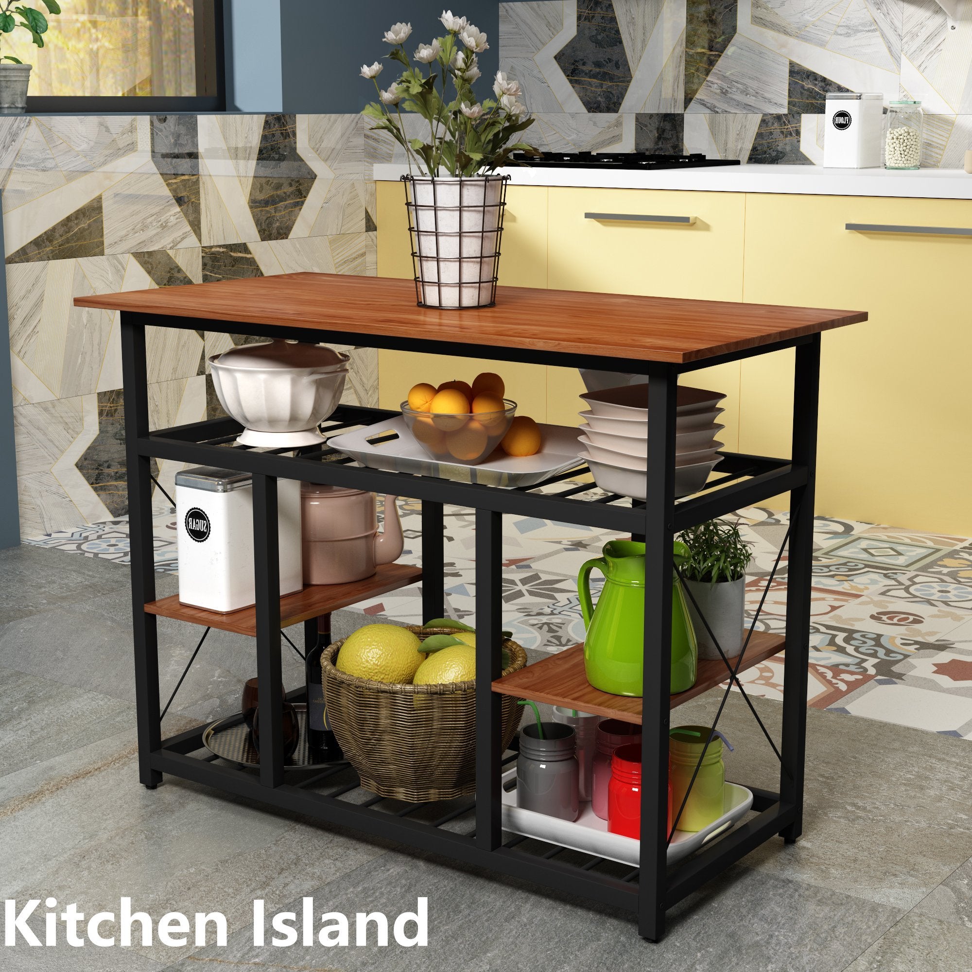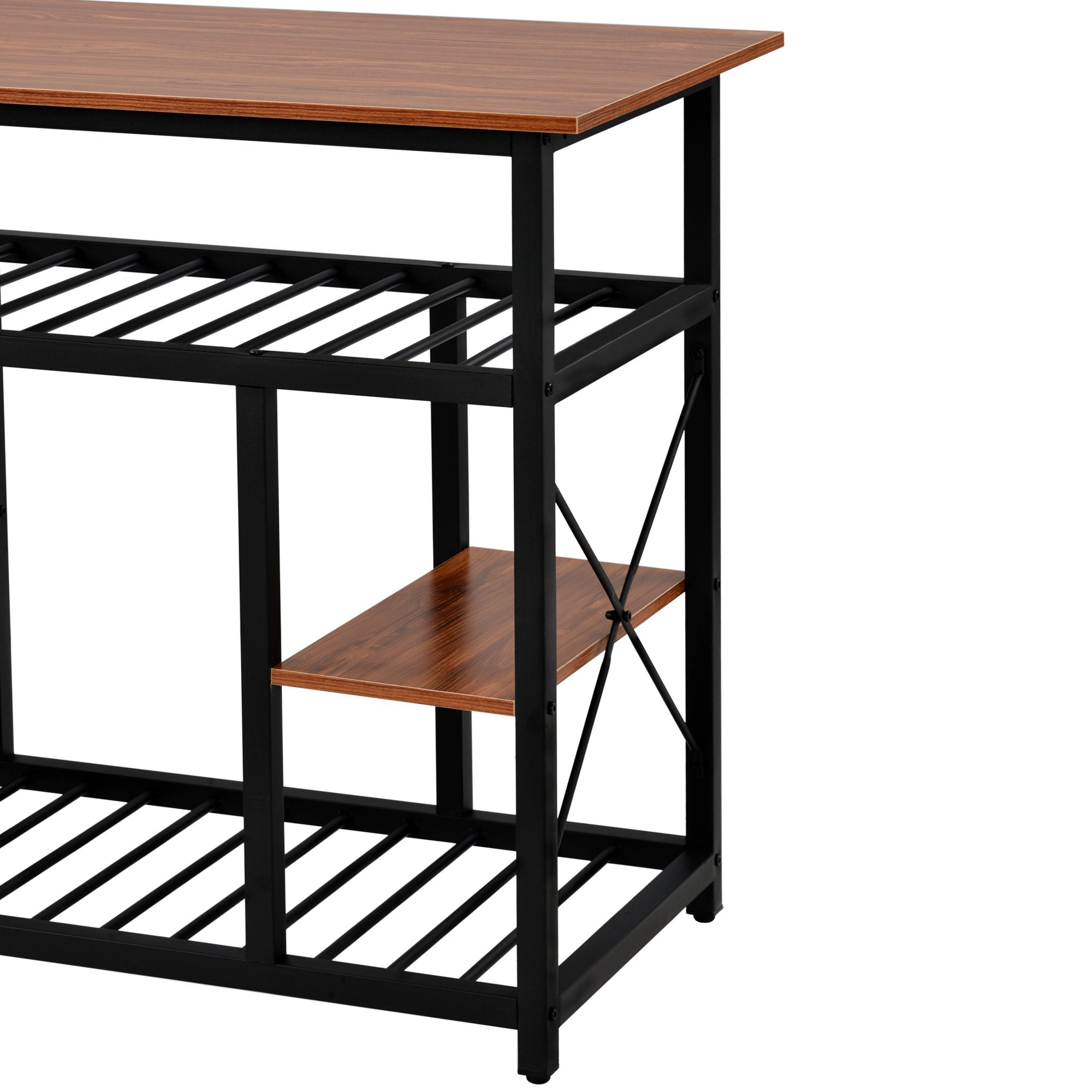 More Than A Kitchen Island---Designed with suitable top and several shelves, this table also perfect for storing your smalls things in living room. Just put the table against the wall and set your favorite books, snacks and toys etc on the top. Have a small dining room? Don't worry about wasting space and just some stools or chairs, the table will become a dining table easily. Warm Notice: Stools or Chairs are not included.