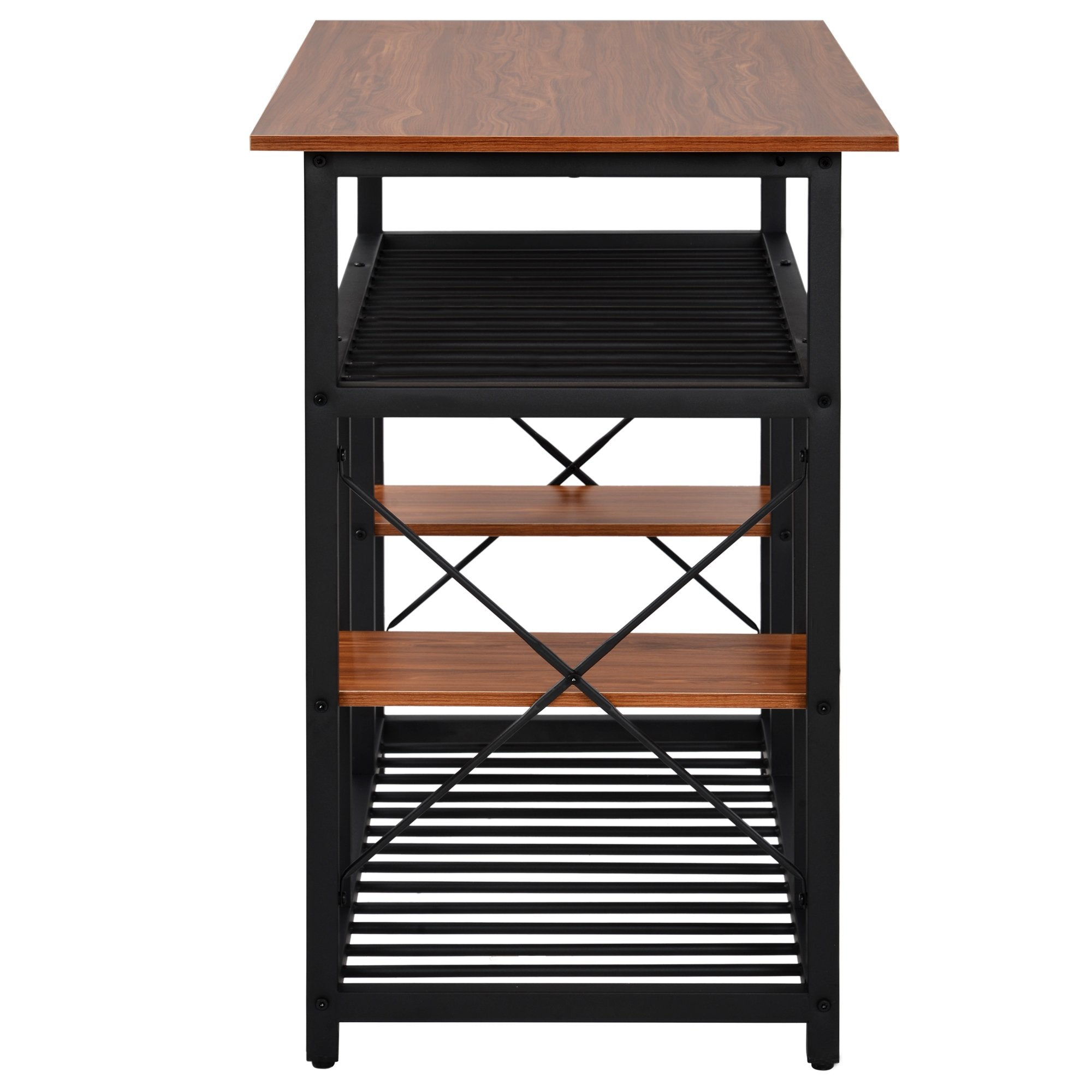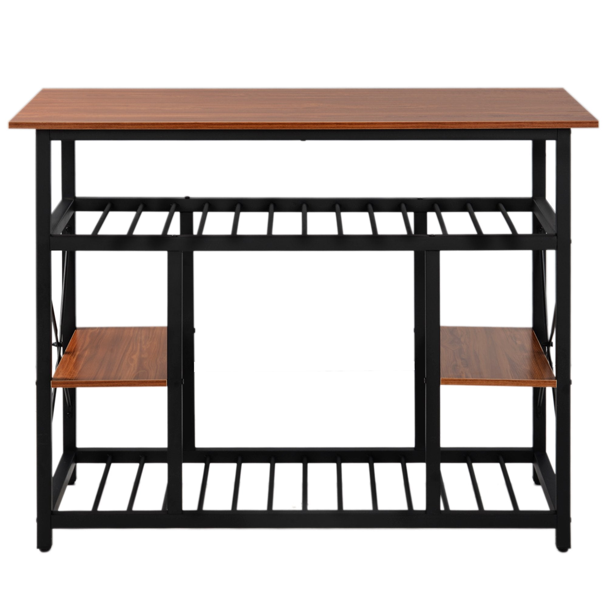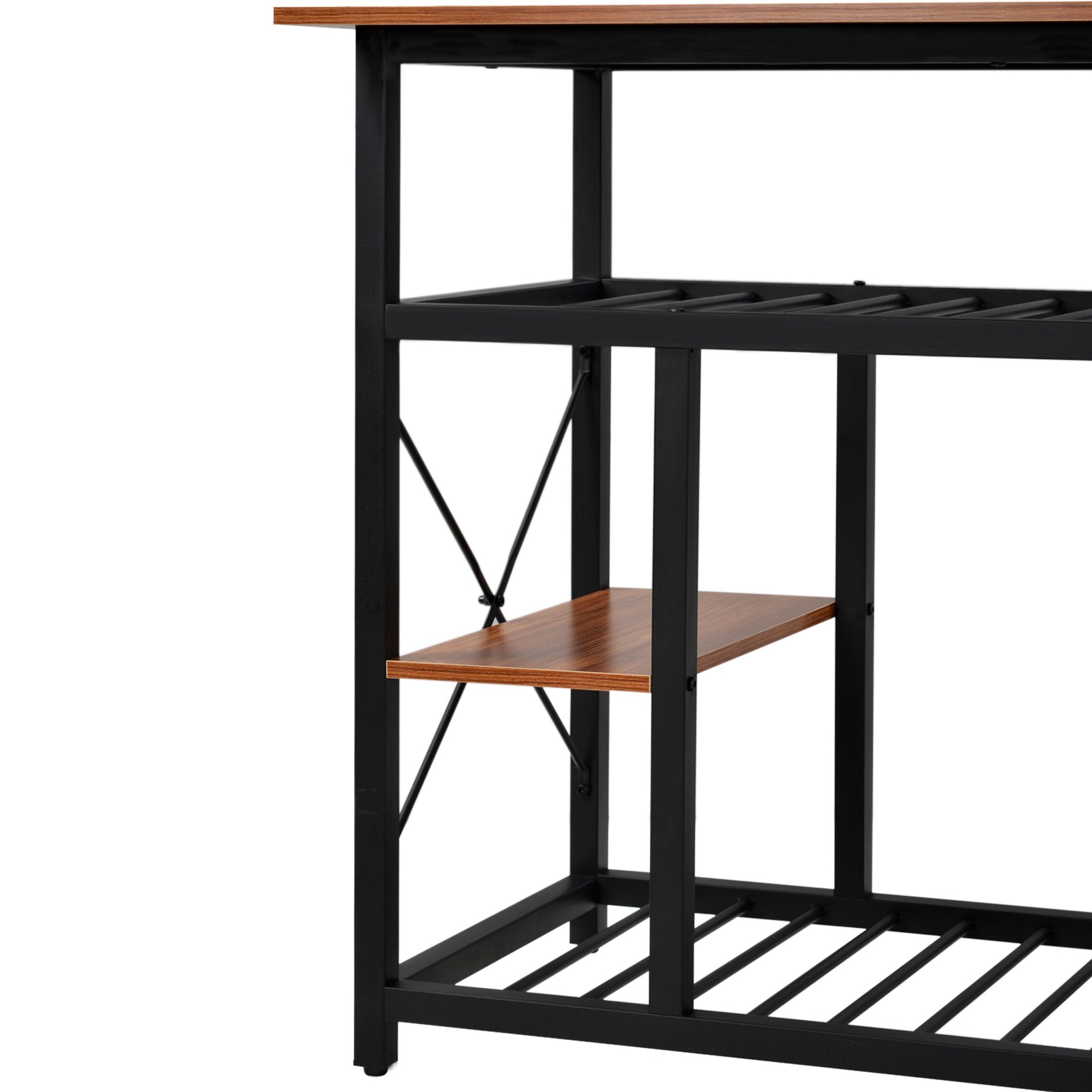 More Than A Kitchen Island---Designed with suitable top and several shelves, this table also perfect for storing your smalls things in living room. Just put the table against the wall and set your favorite books, snacks and toys etc on the top. Have a small dining room? Don't worry about wasting space and just some stools or chairs, the table will become a dining table easily. Warm Notice: Stools or Chairs are not included.