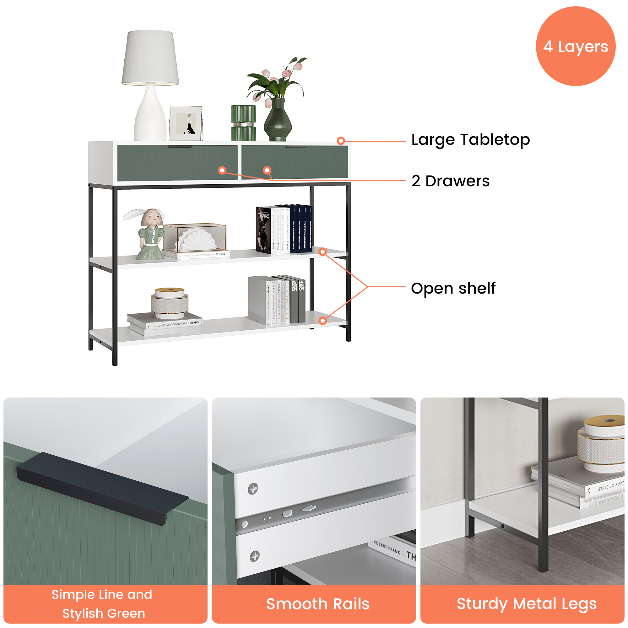 Narrow Console Table with 2 Entry Storage Shelves, Contemporary Sofa Table with 2 Drawers, Side Table with Stabilizing Metal Support Living Room, Hallway, Easy to Assemble