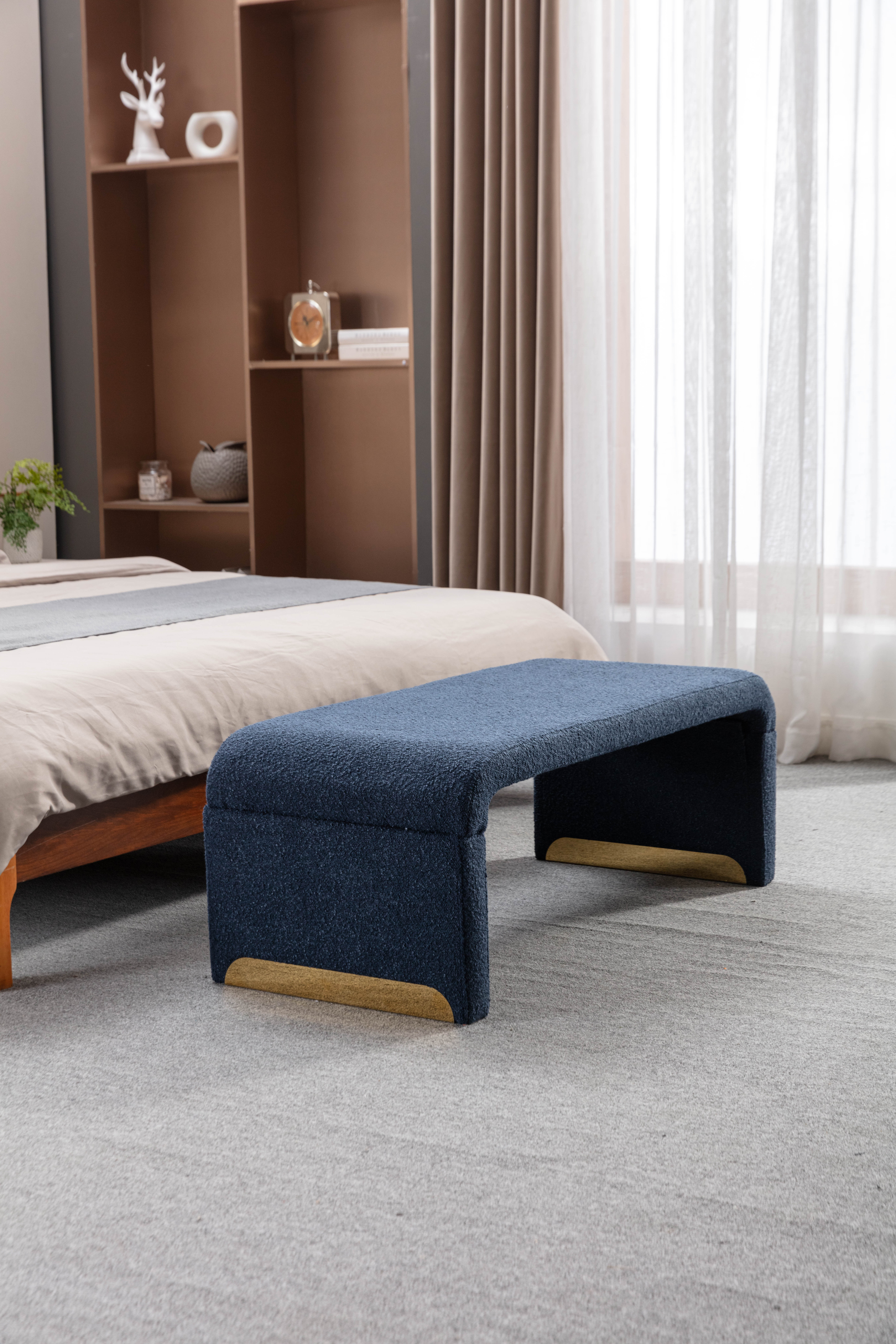 1.Product Pomposition:Boucle Material+Foam Filled+Wooden Frame+Gold Metal Legs;2.Product Size-Weight:Length19.69"×Width43.31"×Height16.14";Weight:26.5lbs;3.Package Size-Weight:43.7"×5.5"×20";Weight:30lbs;4.Product Assembling:It can be assembled by one person in 15 minutes;5.Applicable Scope:Indoor,Bedroom Bench,Shoes Bench,Out of the door and so on.6.AppLicable Age:5-70 Ages;7.Weight Capacity:200lbs;8.Product Care:Spot wipe clean with a soft, dry cloth;