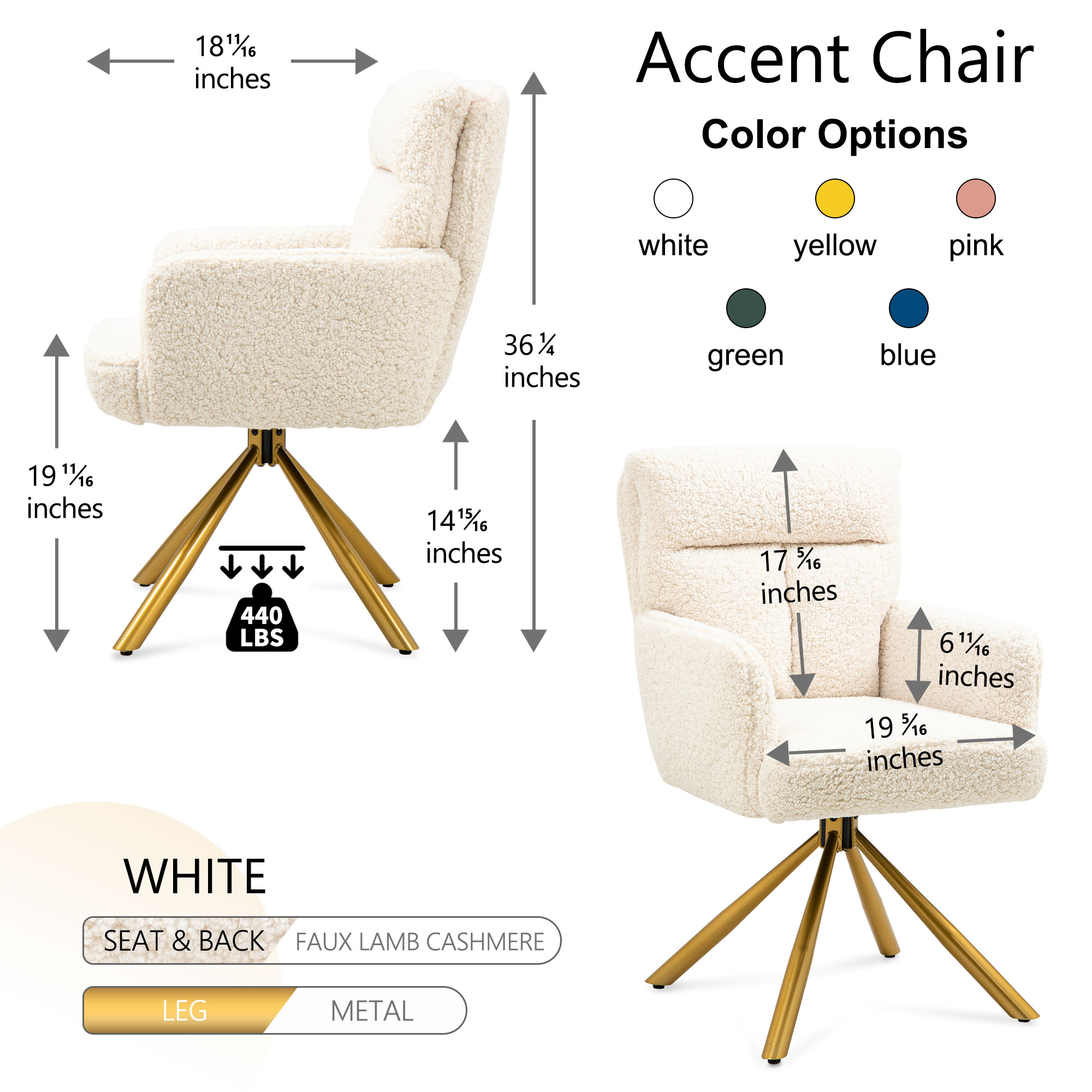 • ACCENT LOUNGE CHAIR-The sturdy metal frame makes the chair durable. Excellent seat welding and curved backrest provide good support and a comfortable seating experience.