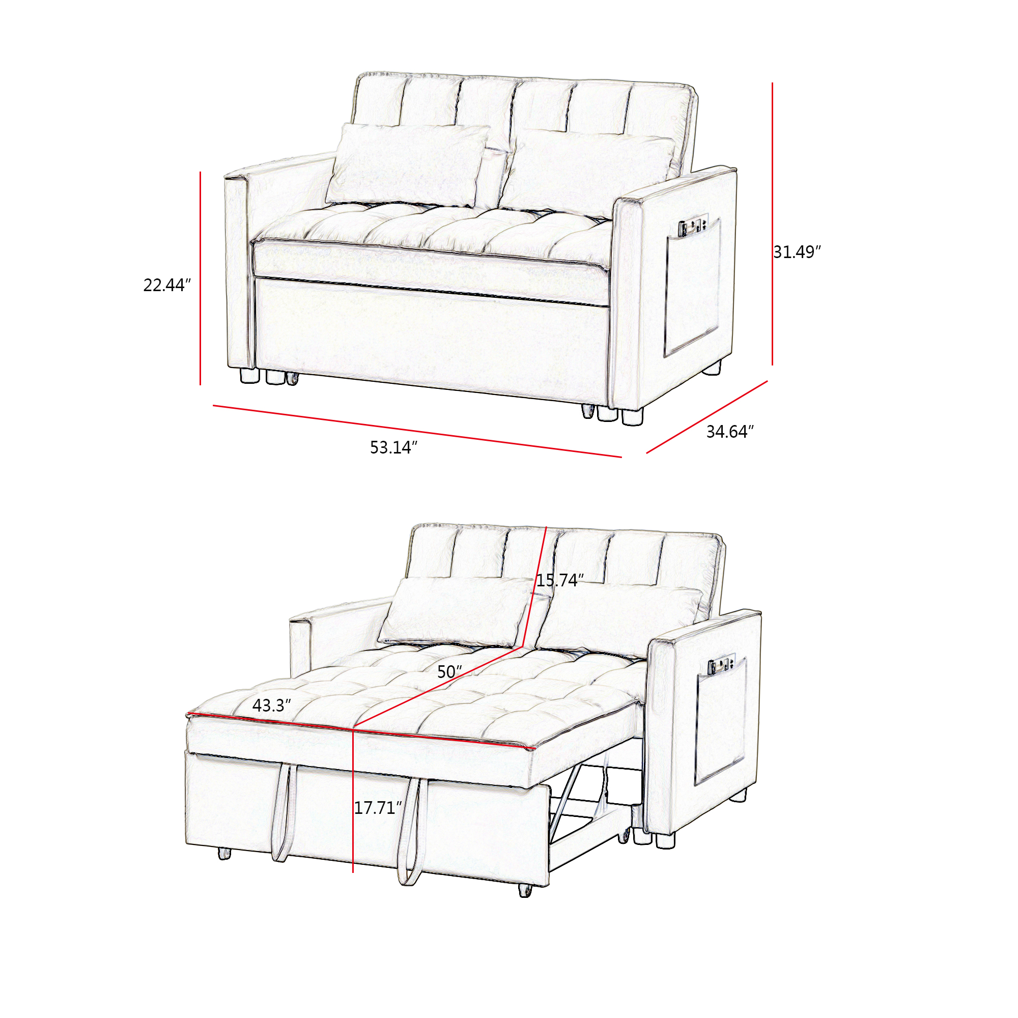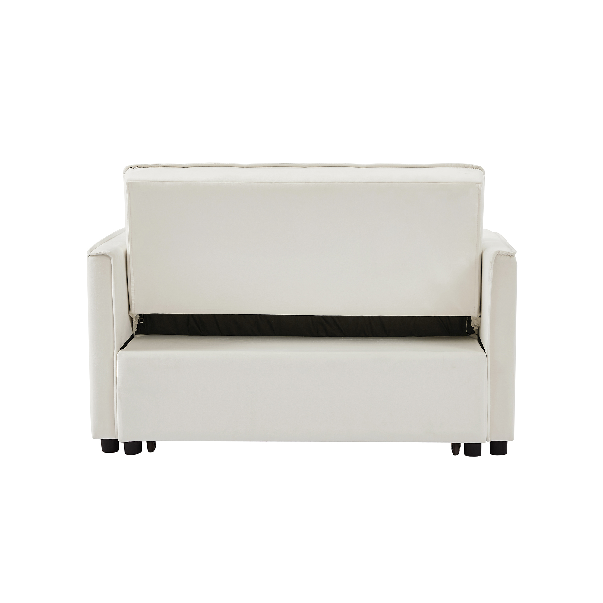 Products Velvet sofa bed Upholstery Material: Velvet Upholstery Colour: off white Leg Material / Color: plastic / black Seat & Back Fill Material: Foam Frame Material: Solid + Manufactured Wood Seat Construction: form Assembly Required: Yes