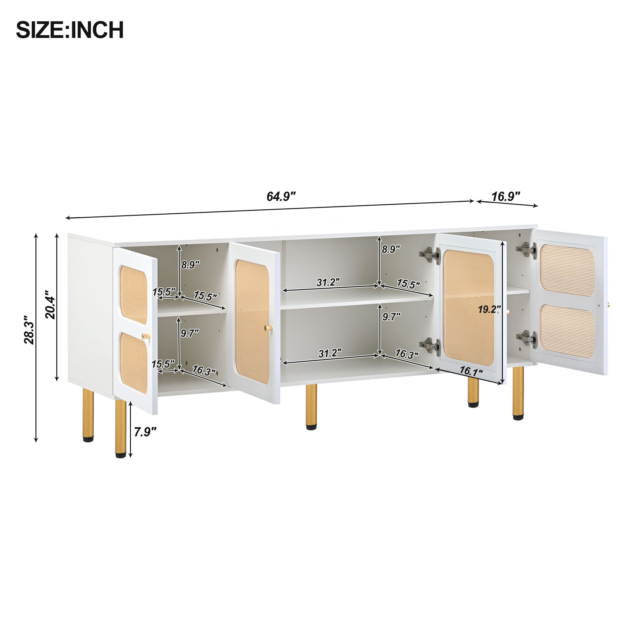 Detailed Measurement | Overall: 64.9”W x 16.9”D x 28.3”H |