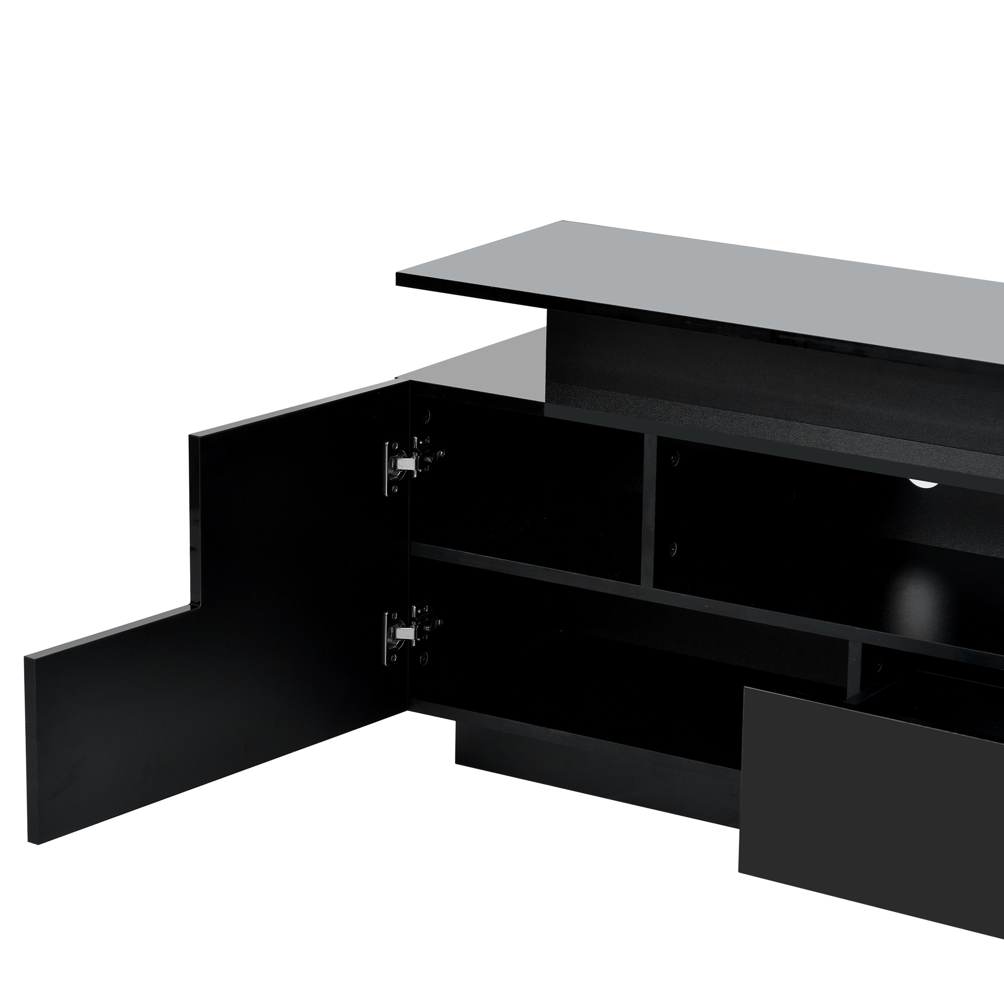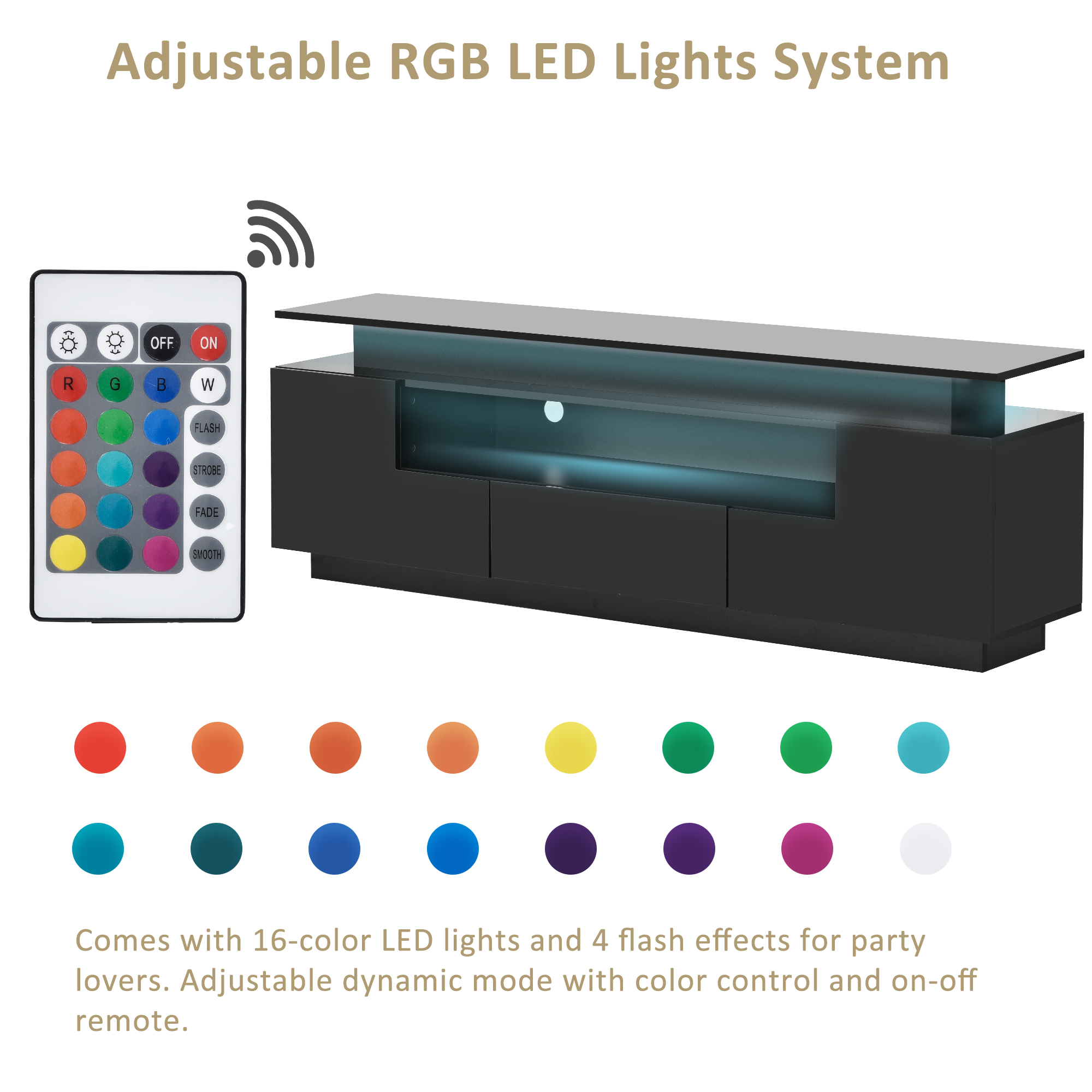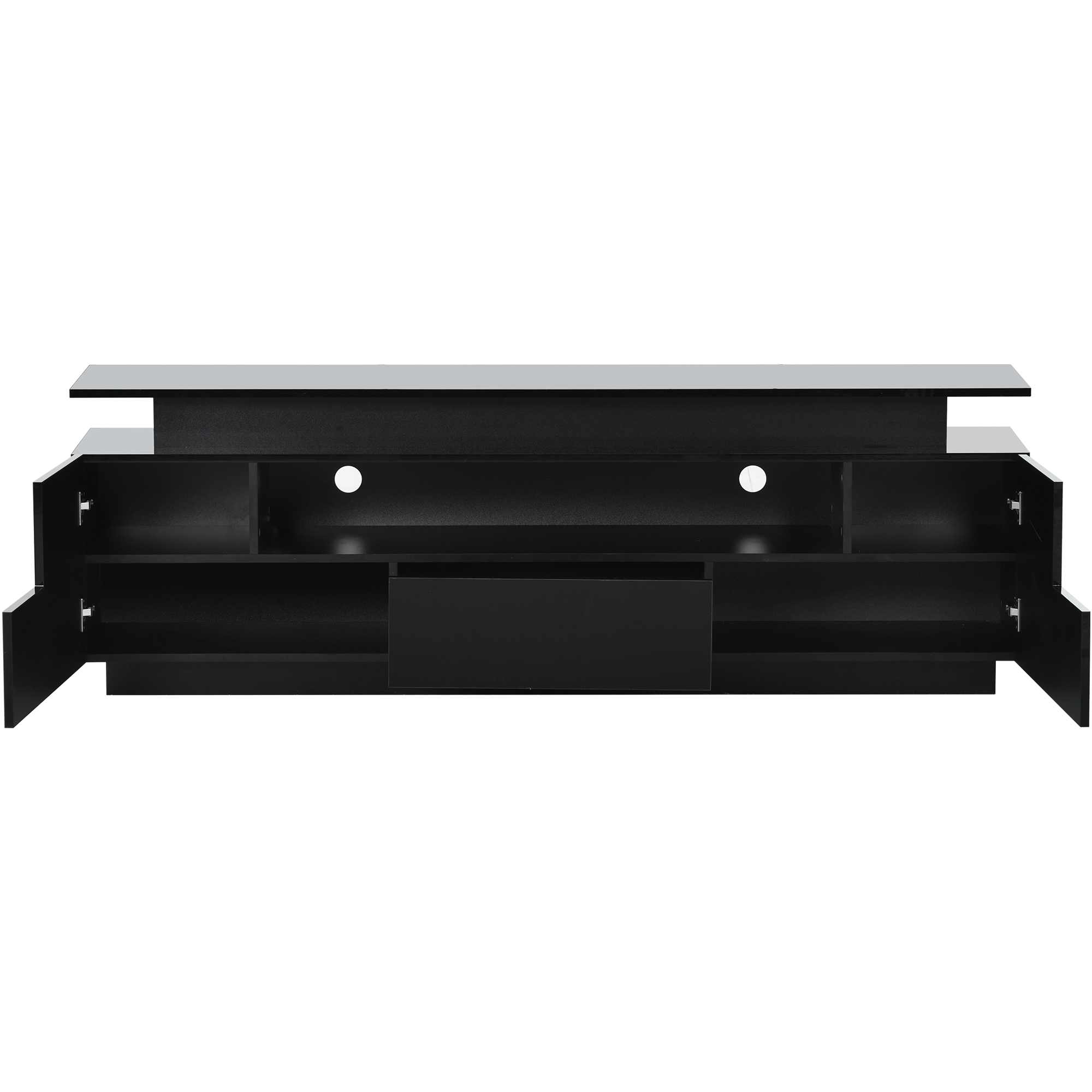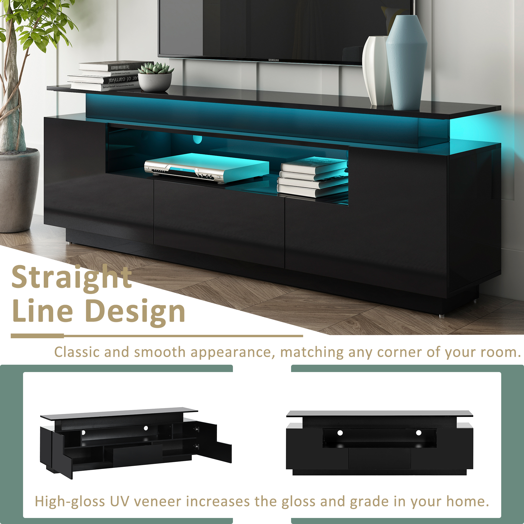 ON-TREND Modern, Stylish Functional TV stand with Plug-in Color Changing LED Lights, Universal Entertainment Center, High Gloss TV Cabinet for 75 inch TV, Black