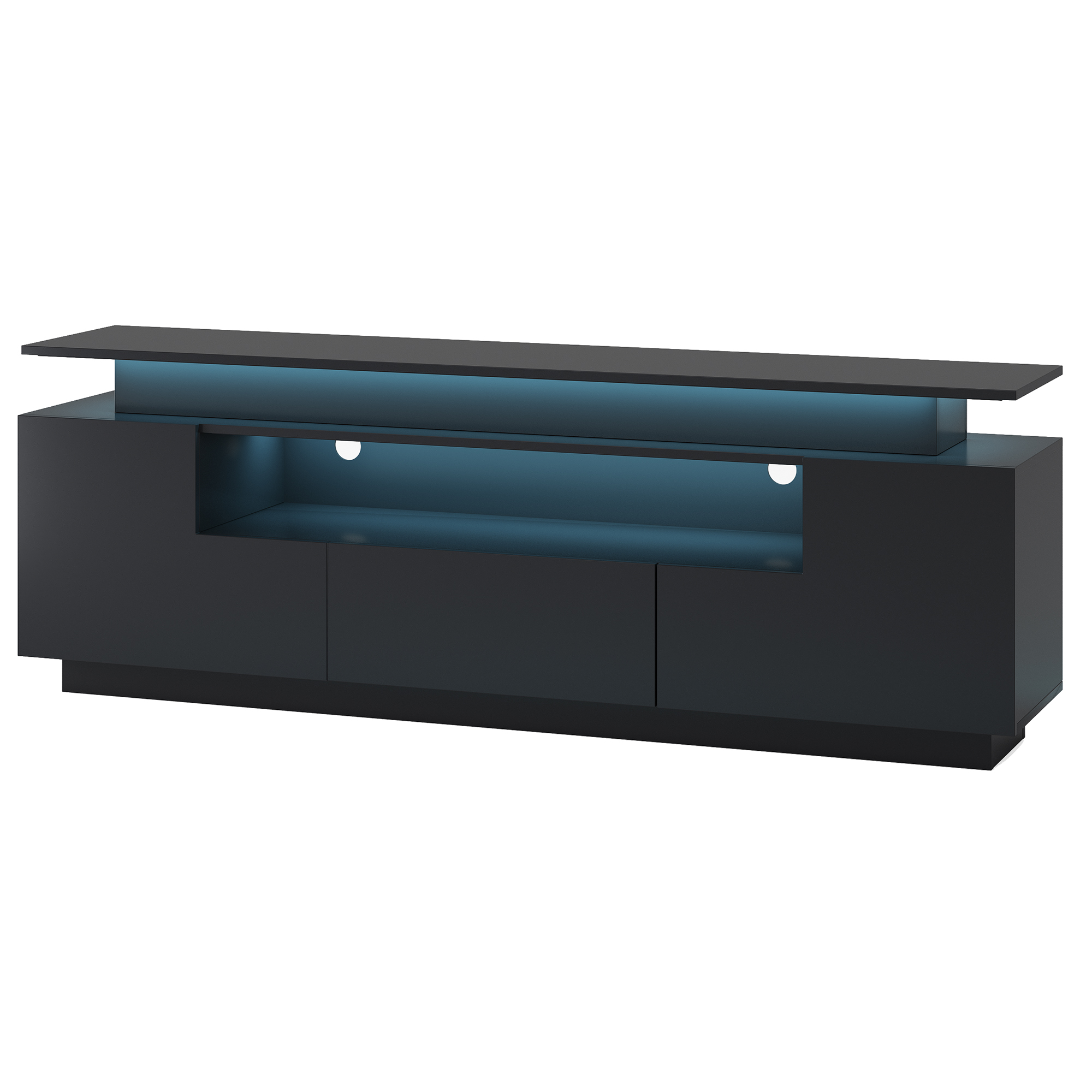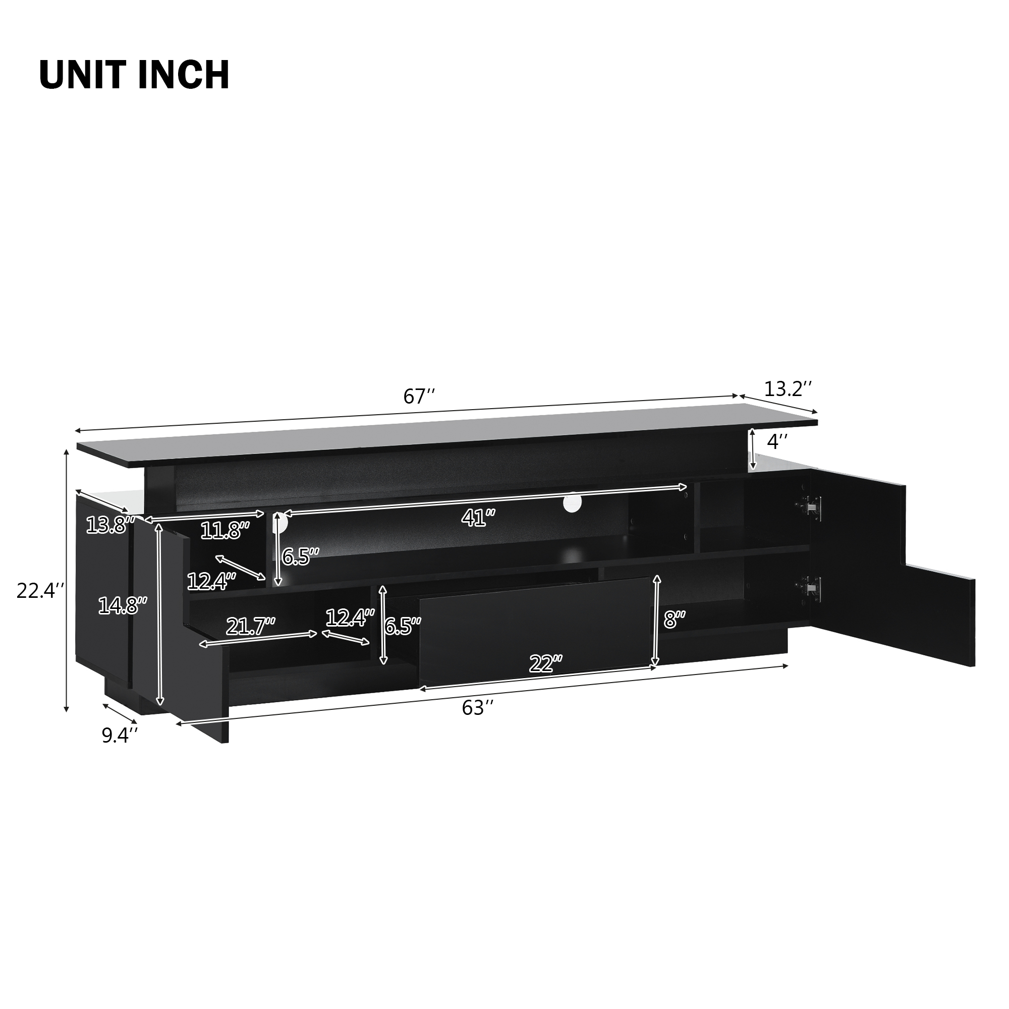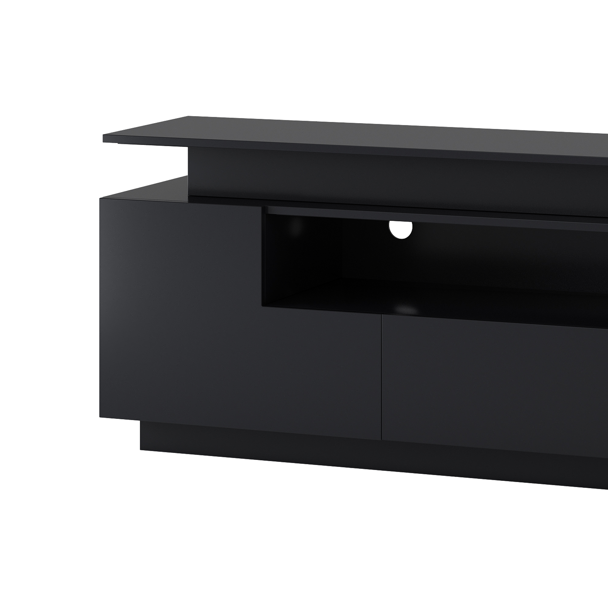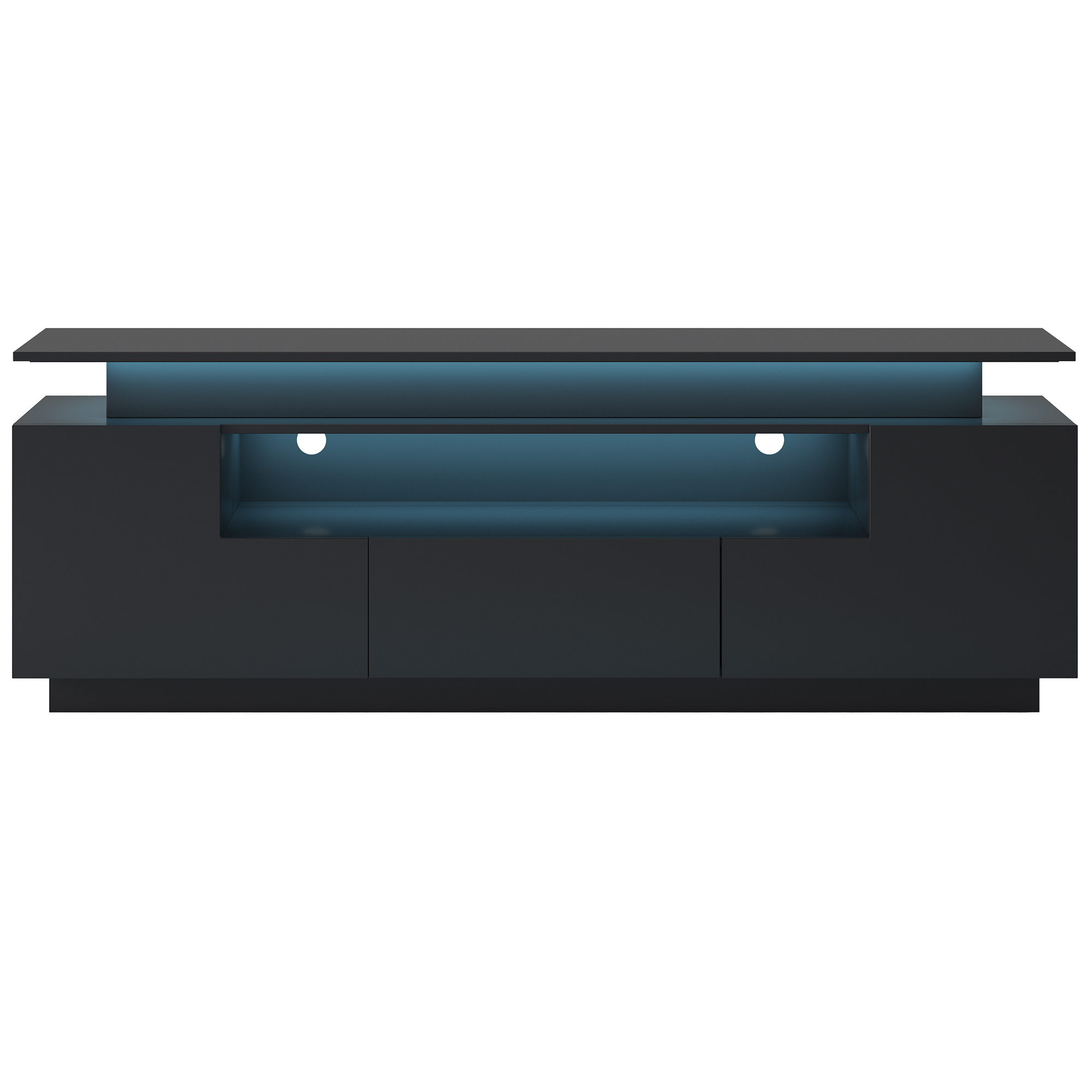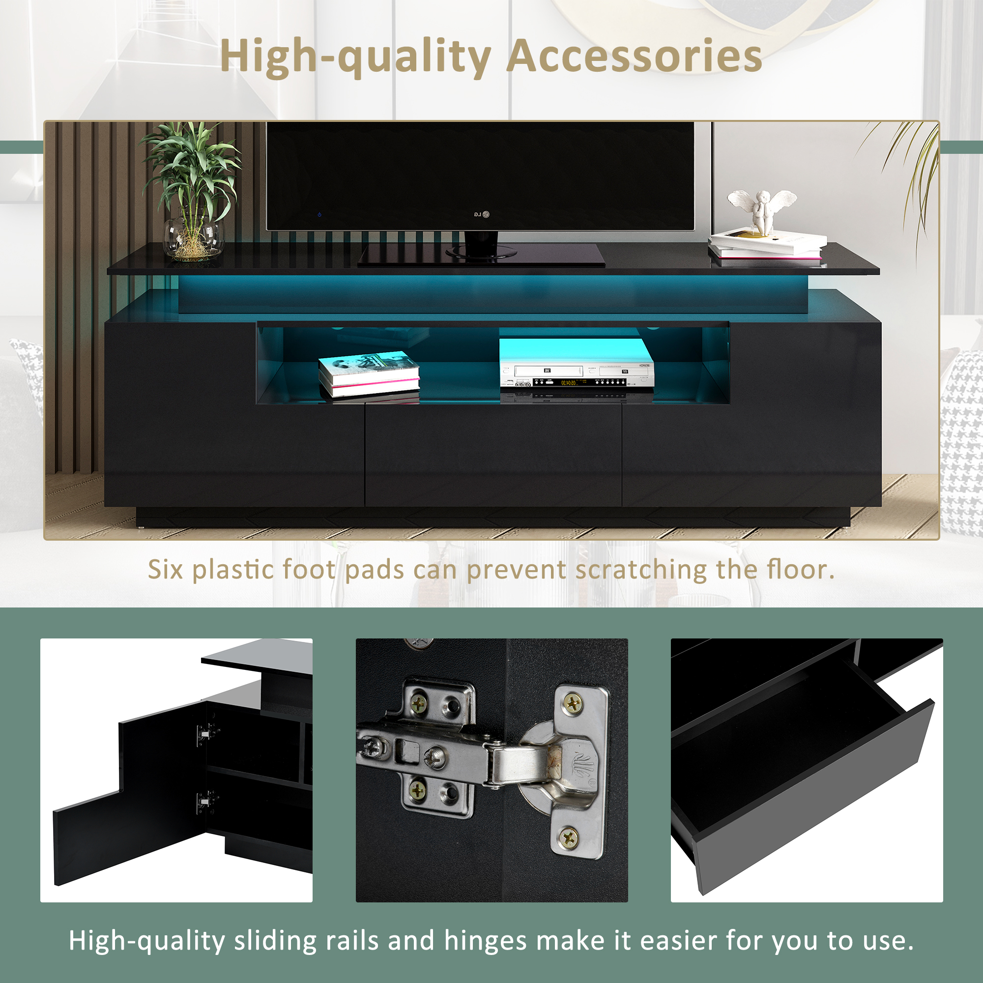 ON-TREND Modern, Stylish Functional TV stand with Plug-in Color Changing LED Lights, Universal Entertainment Center, High Gloss TV Cabinet for 75 inch TV, Black