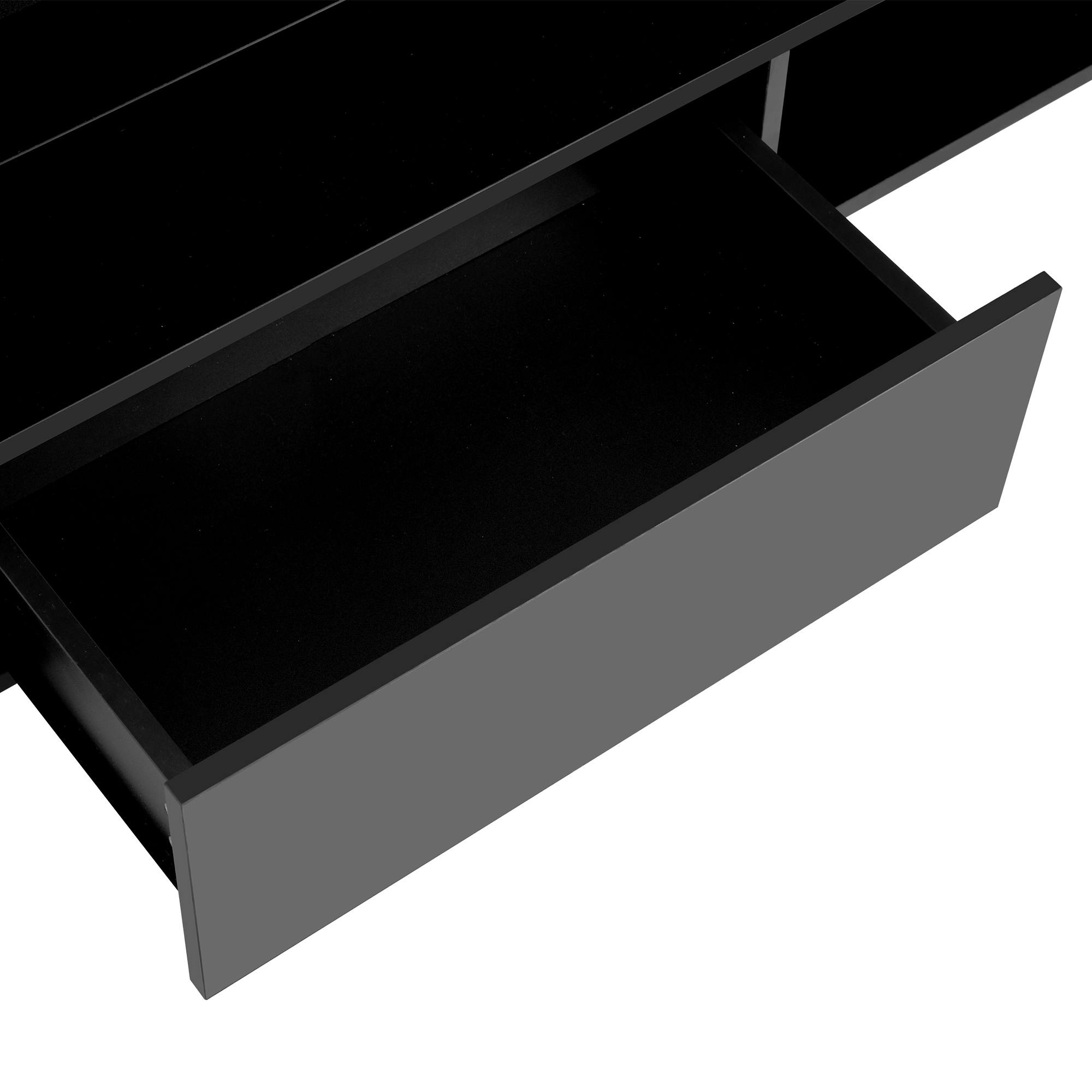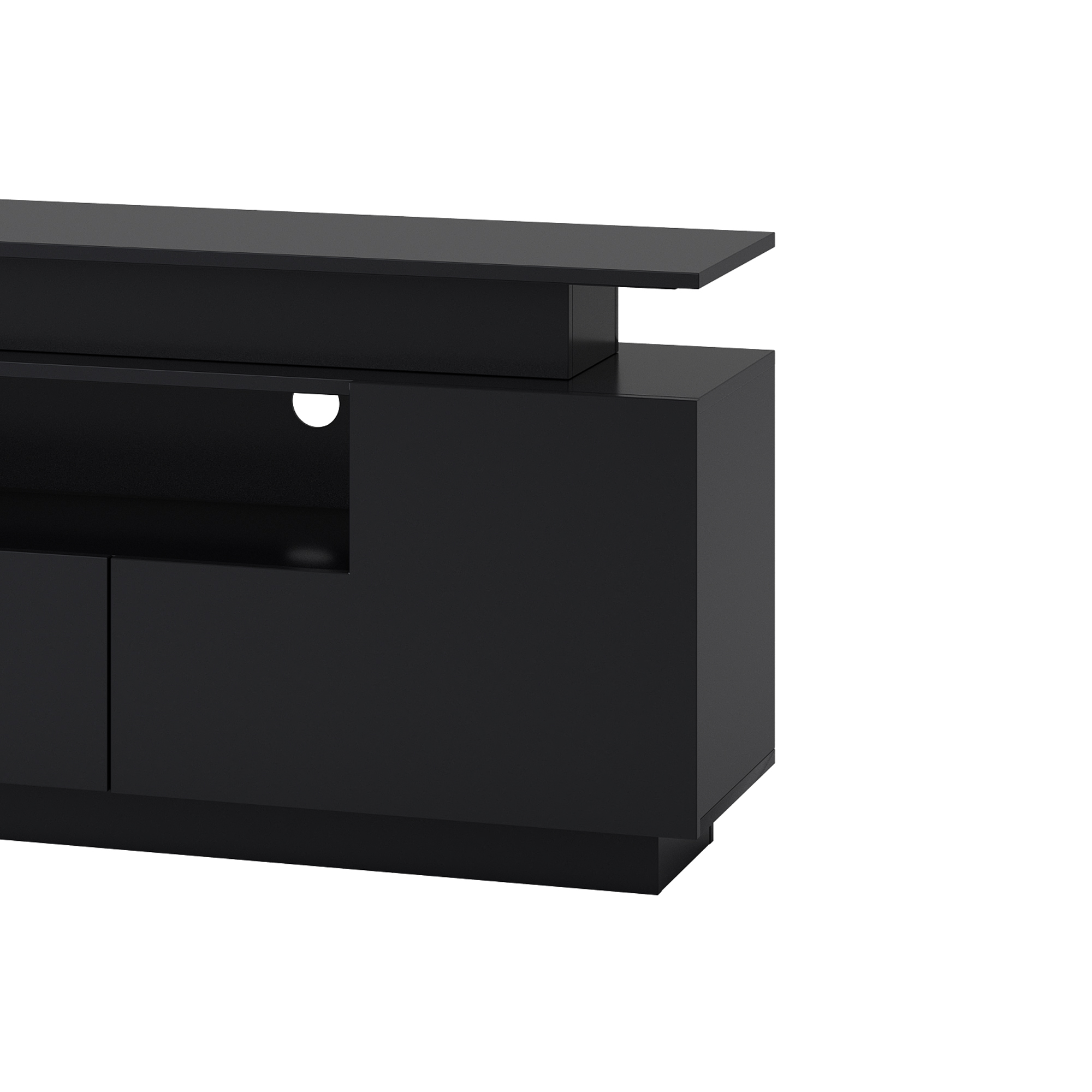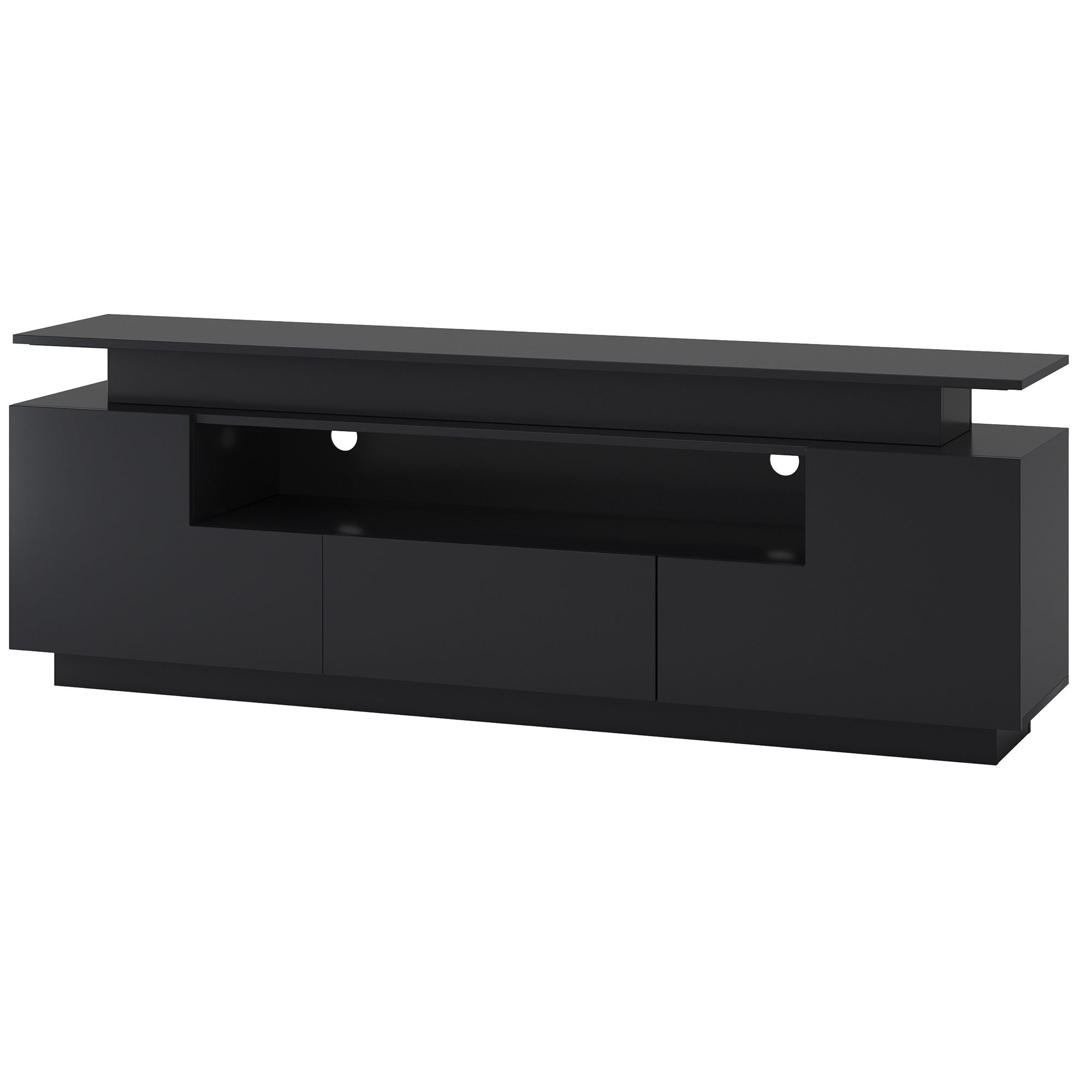 Drawers and cabinets can store your snacks, batteries or CDs, the middle open storage space is a good place to put game consoles, DVDs, remote controls, etc. The upper layer also has excellent load-bearing capacity, which can place a TV for 75 inches.