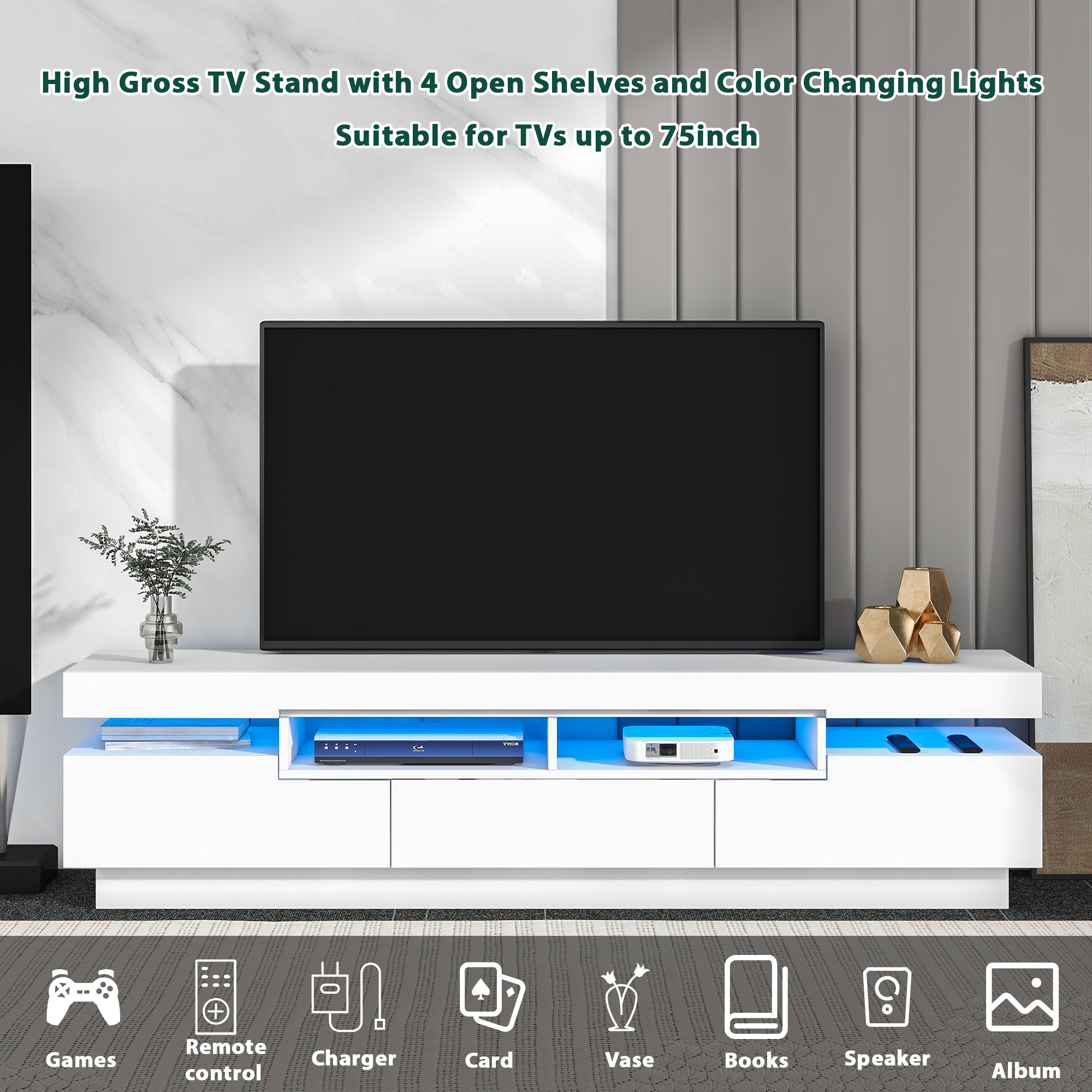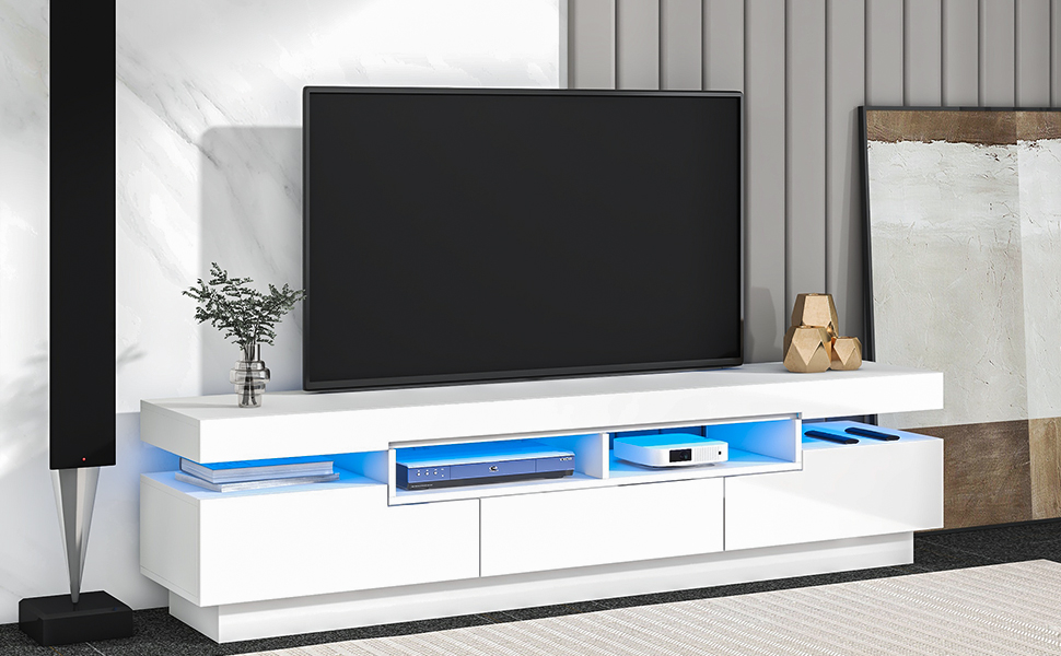 Contains four open storage shelves for your DVD or game consoles, a drawer that is easy to pull out and four storage cabinets, which are convenient for you to store some small items, remote controls, books, chargers, etc. This hidden storage will make the living room more tidy.