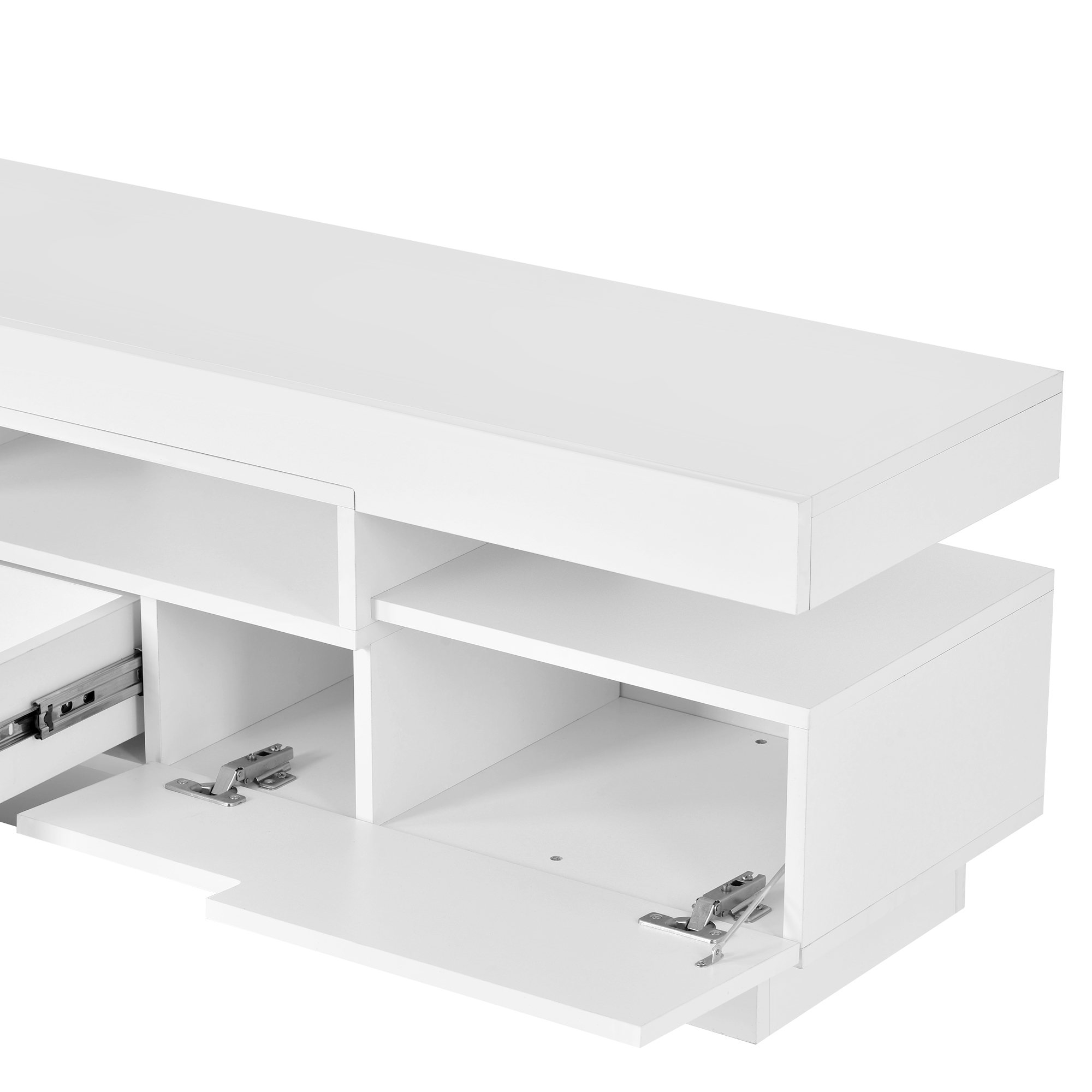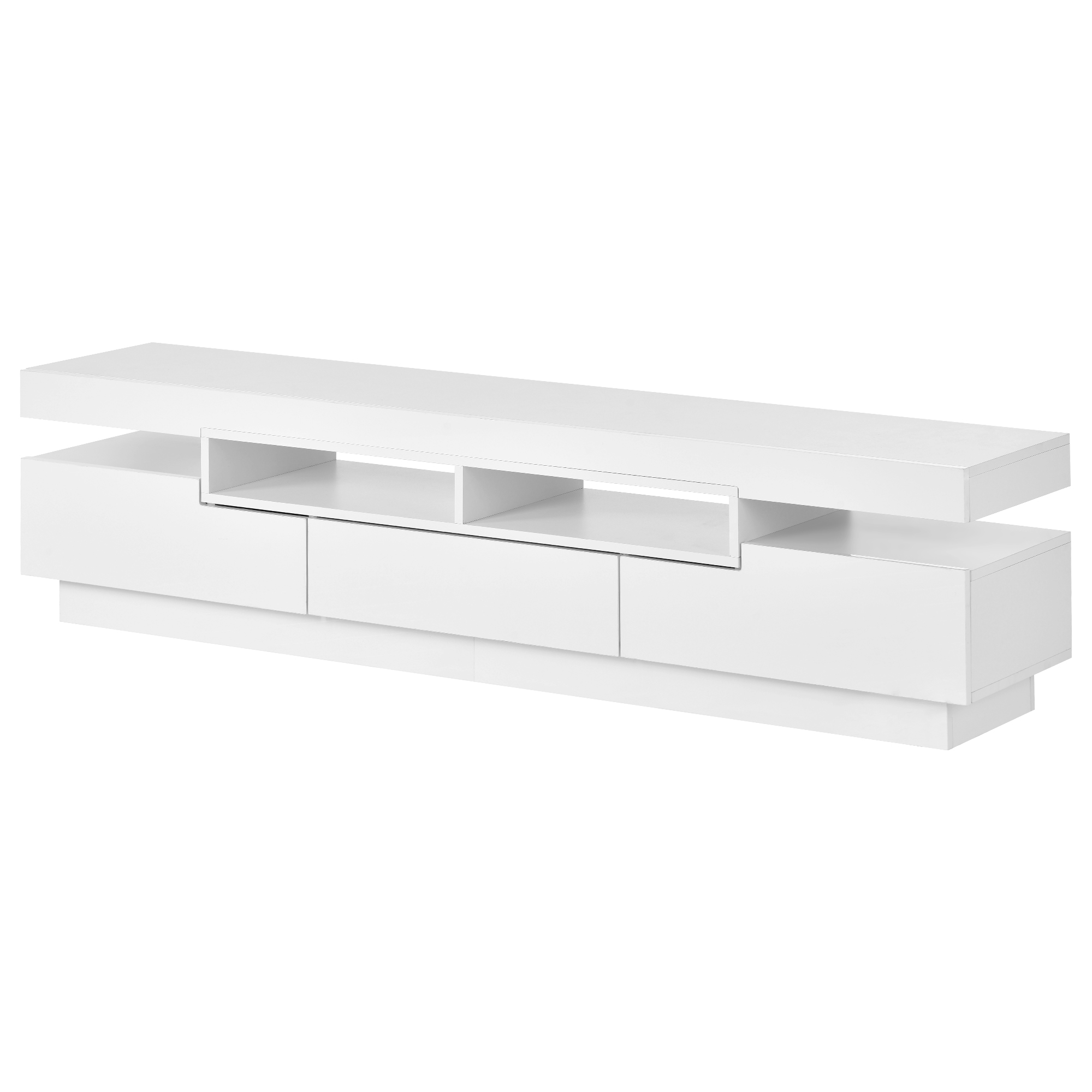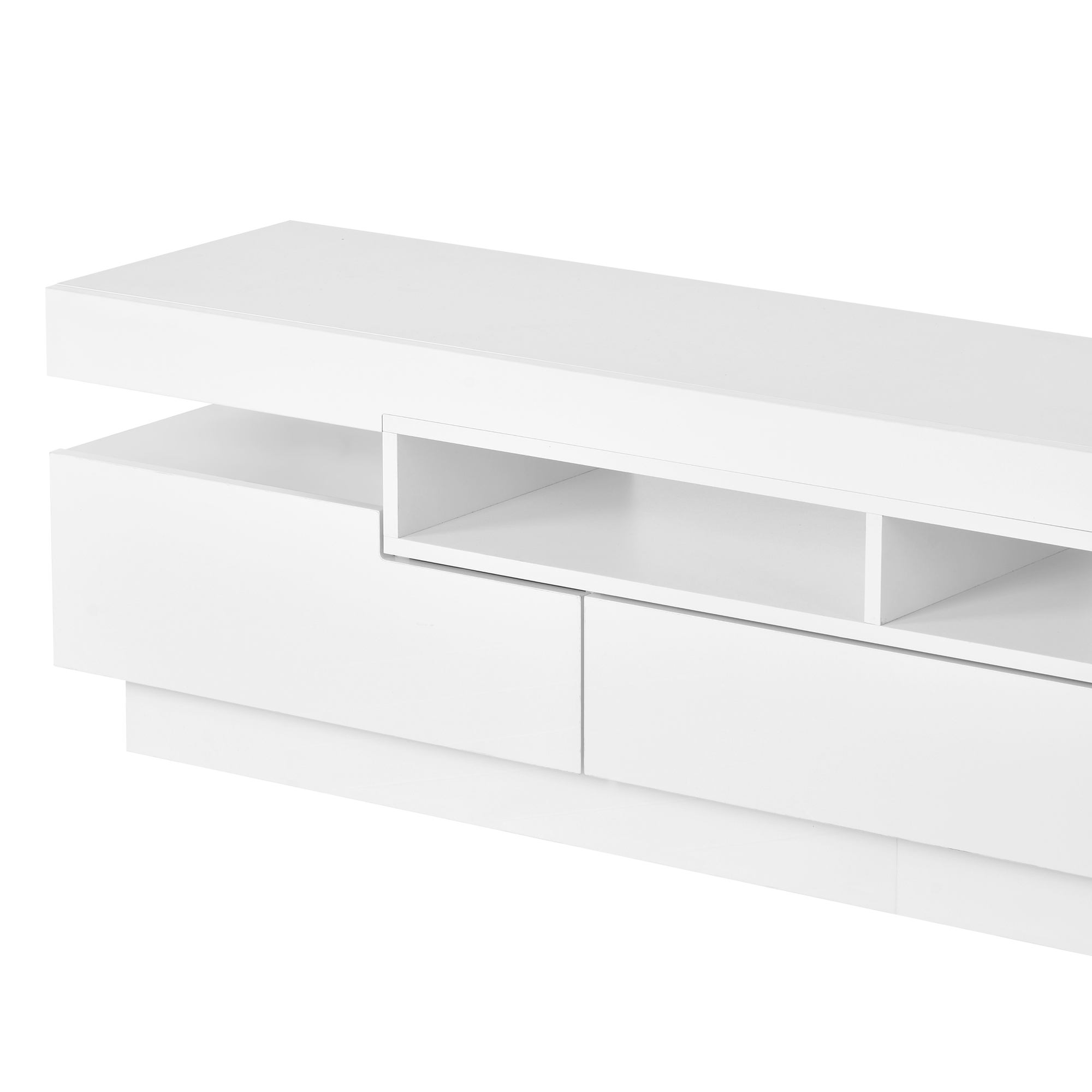 Straight lines and simple designs, geometric doors, height-differentiated cabinets and thickened table tops give the product an even stronger sense of uniqueness. The bright UV front material brings a low-key and luxurious temperament to your living room. The height is slightly lower than other TV cabinets, which can bring you a better experience when you are lying on the sofa and watching movies.