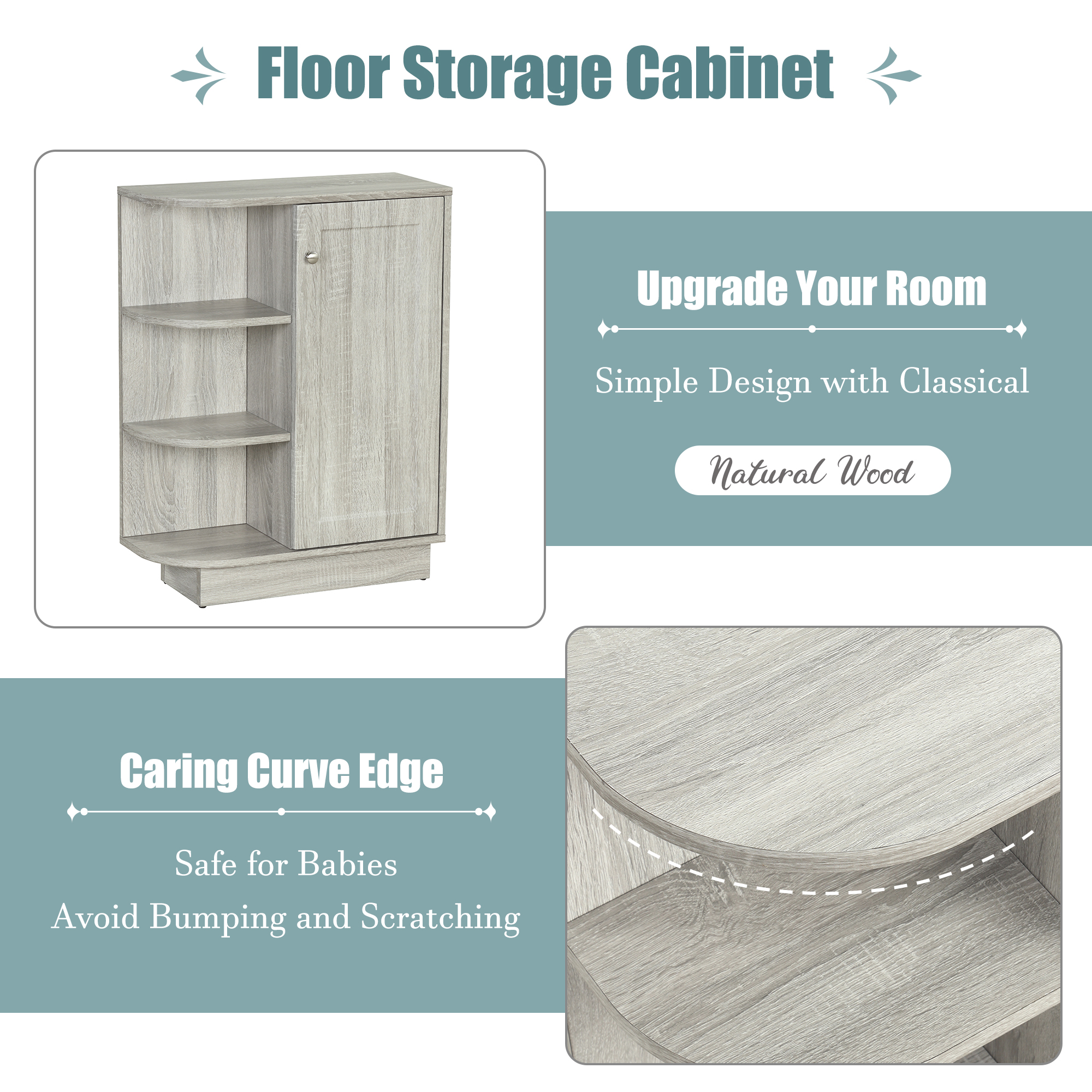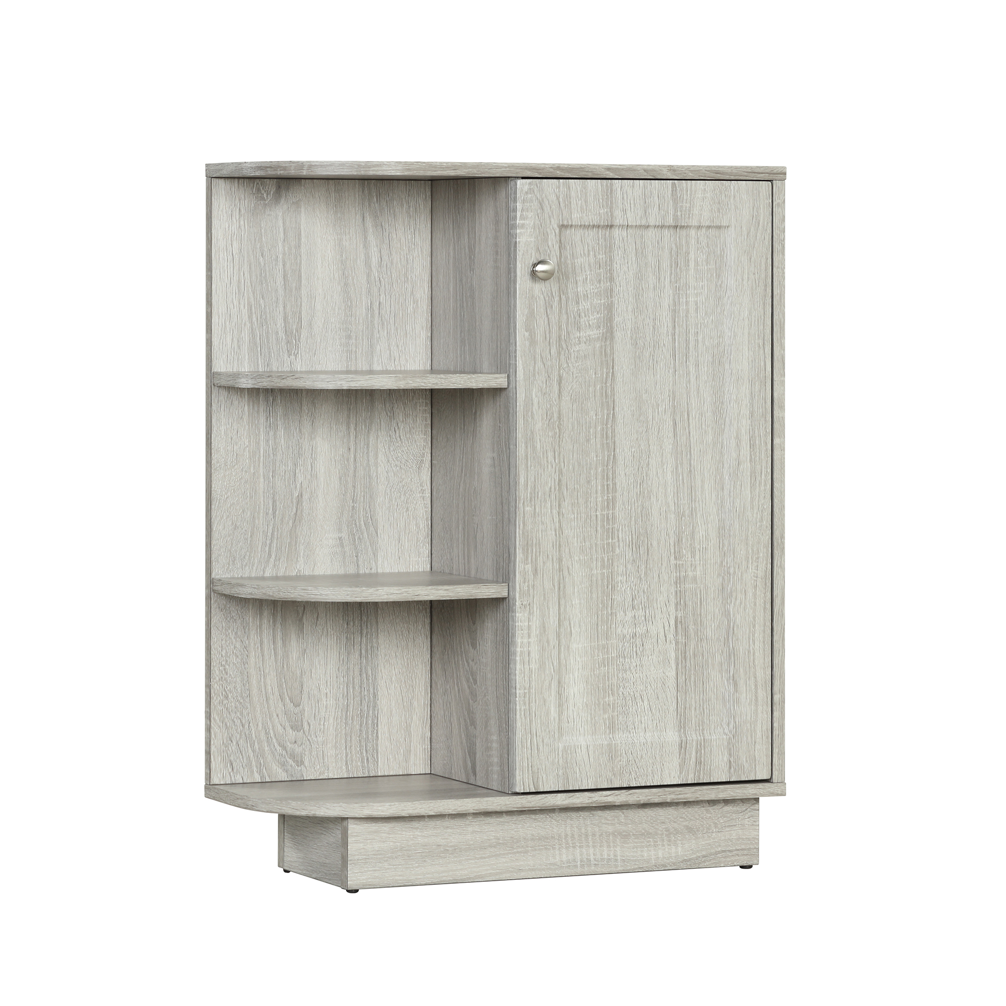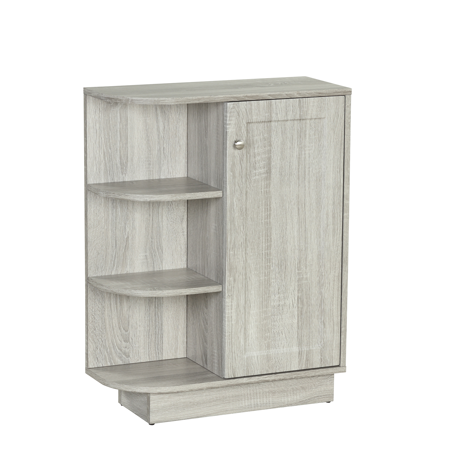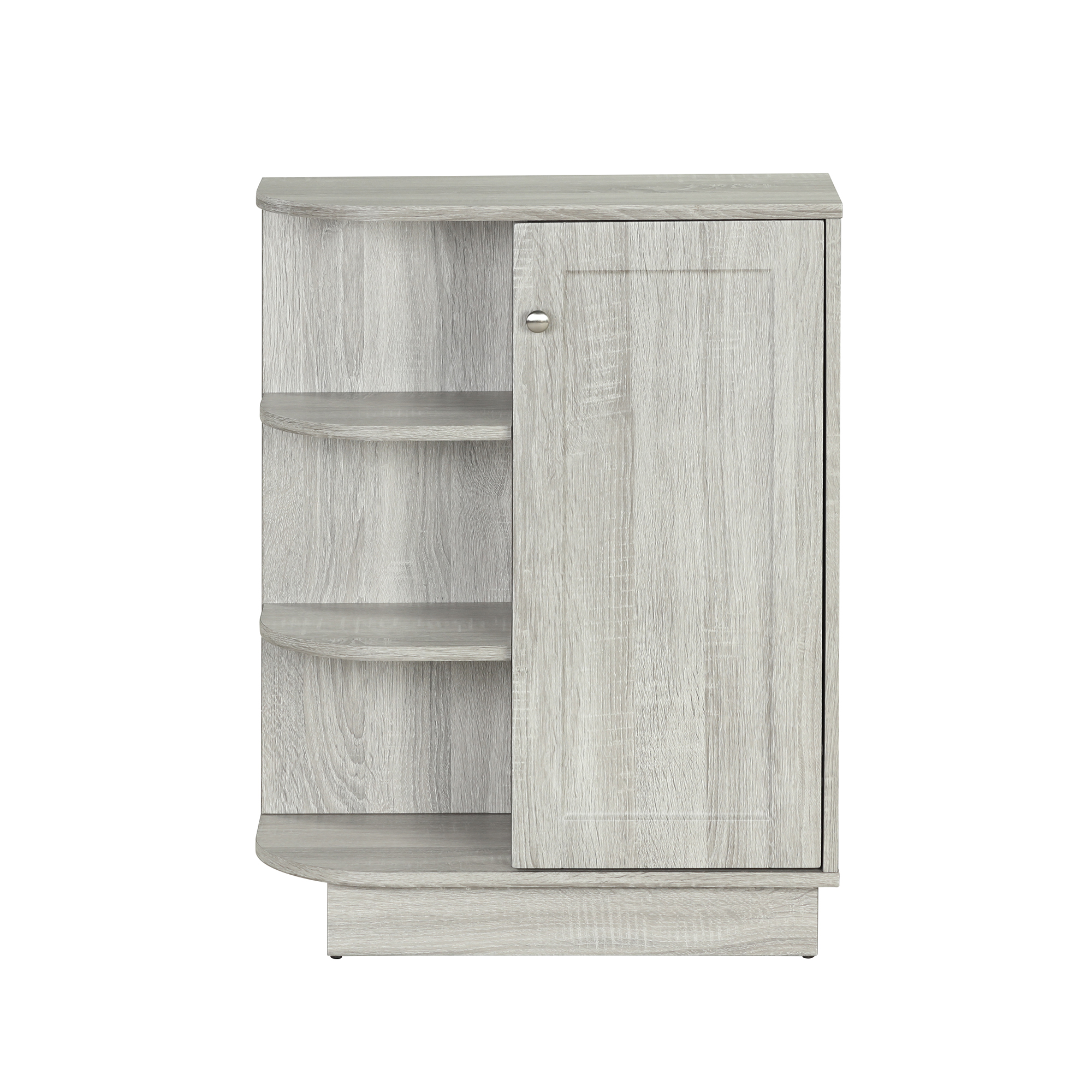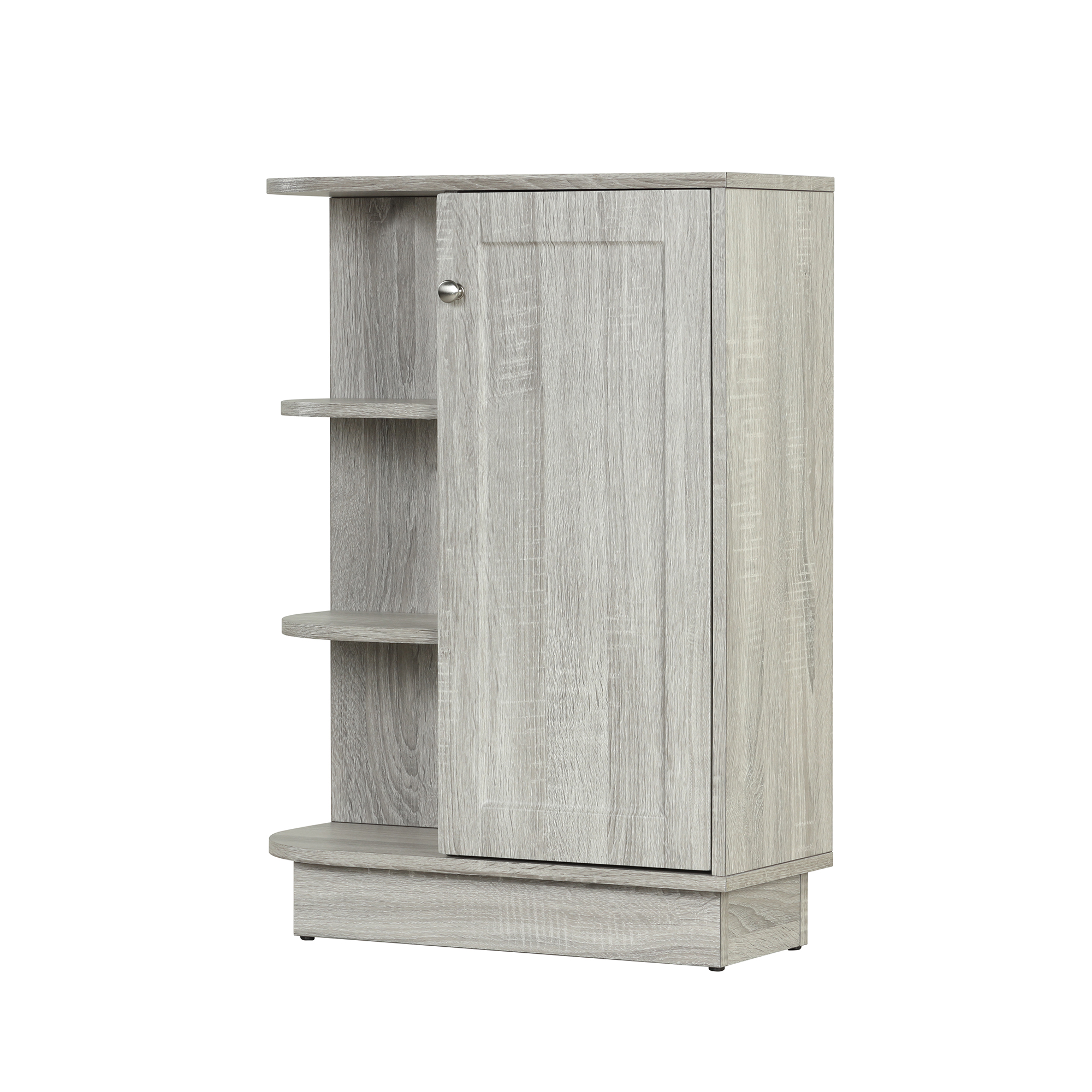 Open Style Shelf Cabinet with Adjustable Plates Ample Storage Space Easy to Assemble White Grey Oak
