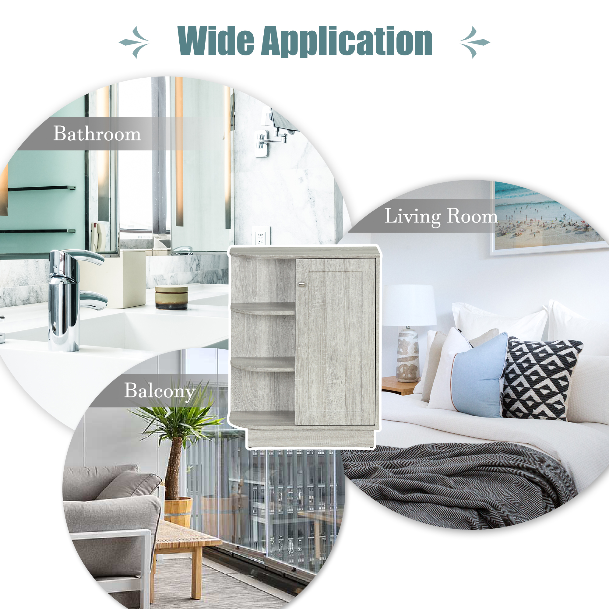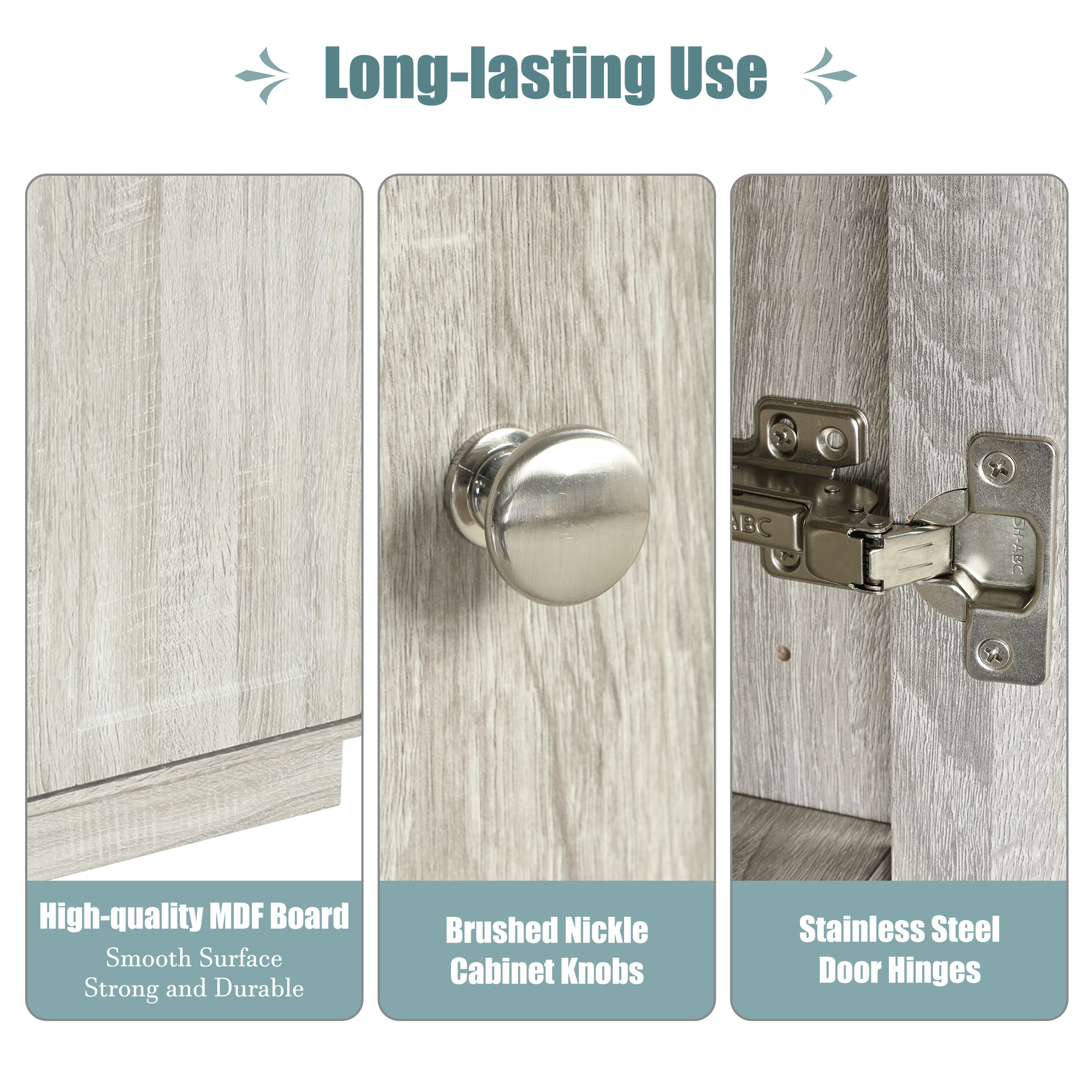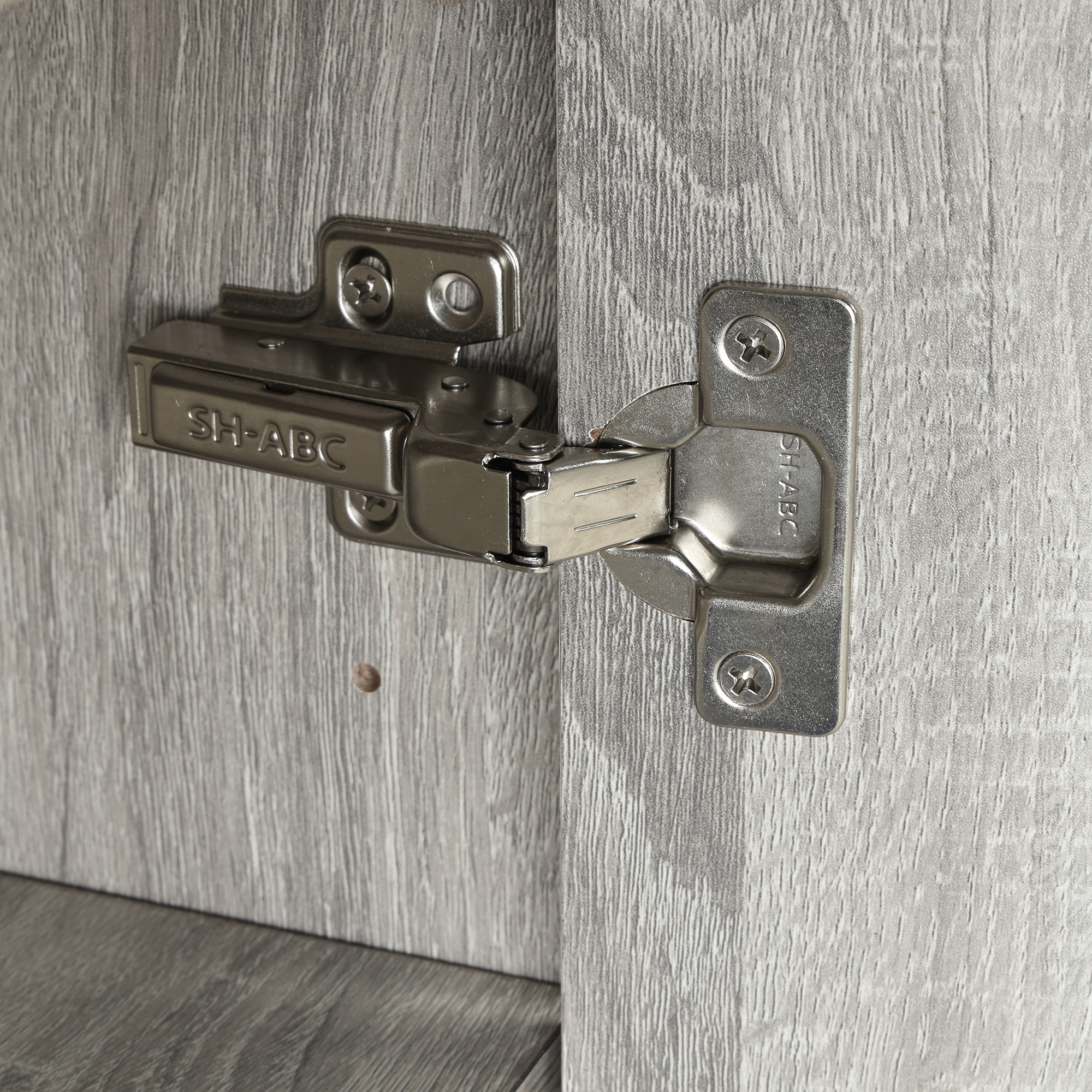 In order to ensure a wonderful user experience, high-quality MDF boards are used as the main material of this cabinet. The advantages of the MDF board are smooth, water-resistant, and easy to clean. Door Hinges are made of stainless steel while the door handles are brushed nickel. There are three different colors of this cabinet are introduced to the market at the same time, namely white, grey, and original wood grain.