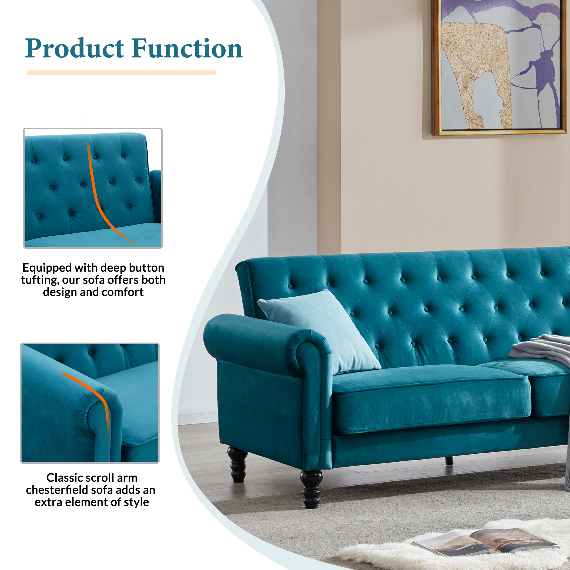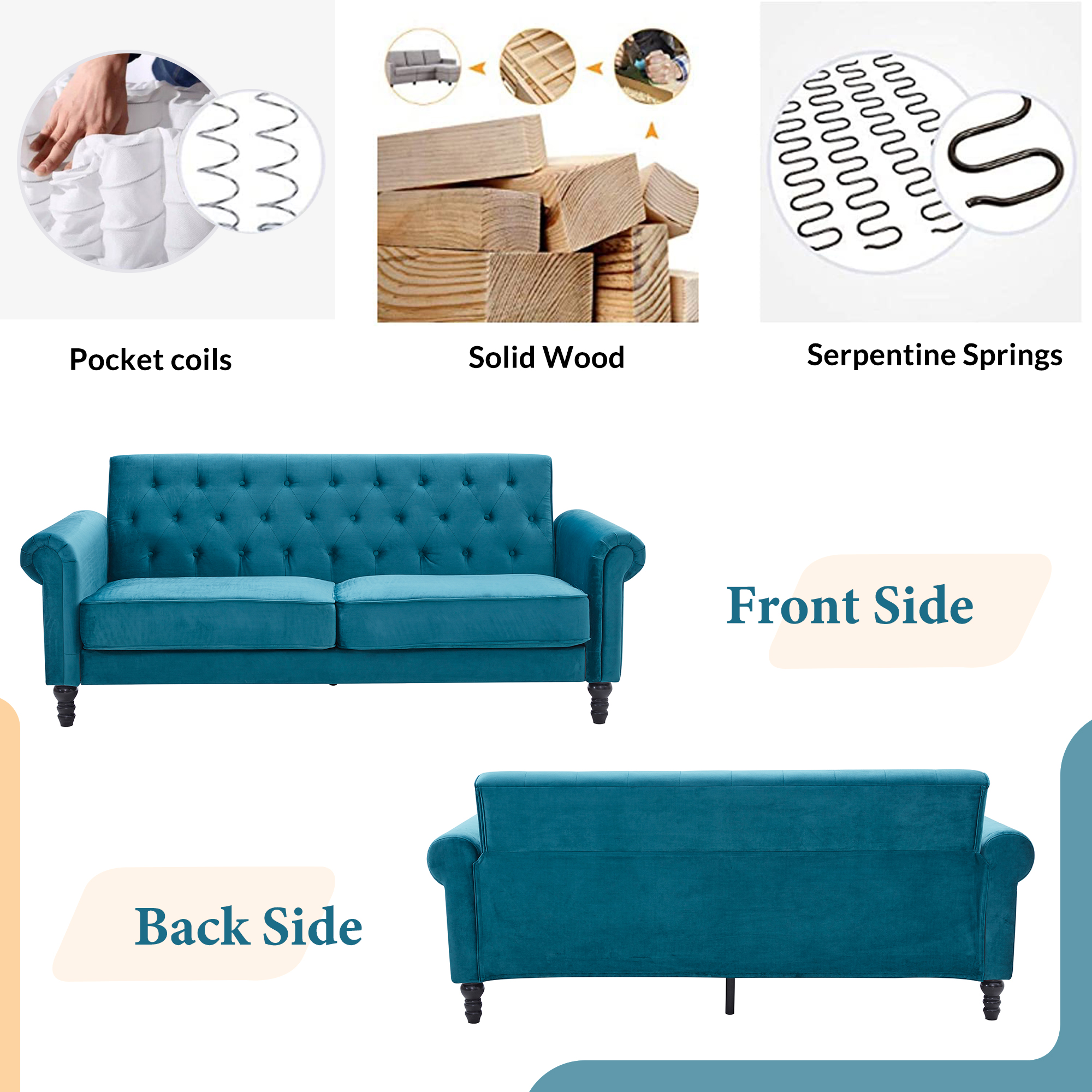 ✔Button Tufting and Scrolled Arms: This sofa has tasteful scrolled arms to draw the eye in and complement the deep button tufting. To complete the chesterfield look, this sofa features scrolled arms. Not only does it add an air of class to the sofa and your room, but it also provides a more comfortable place to lean against while relaxing on your sofa.