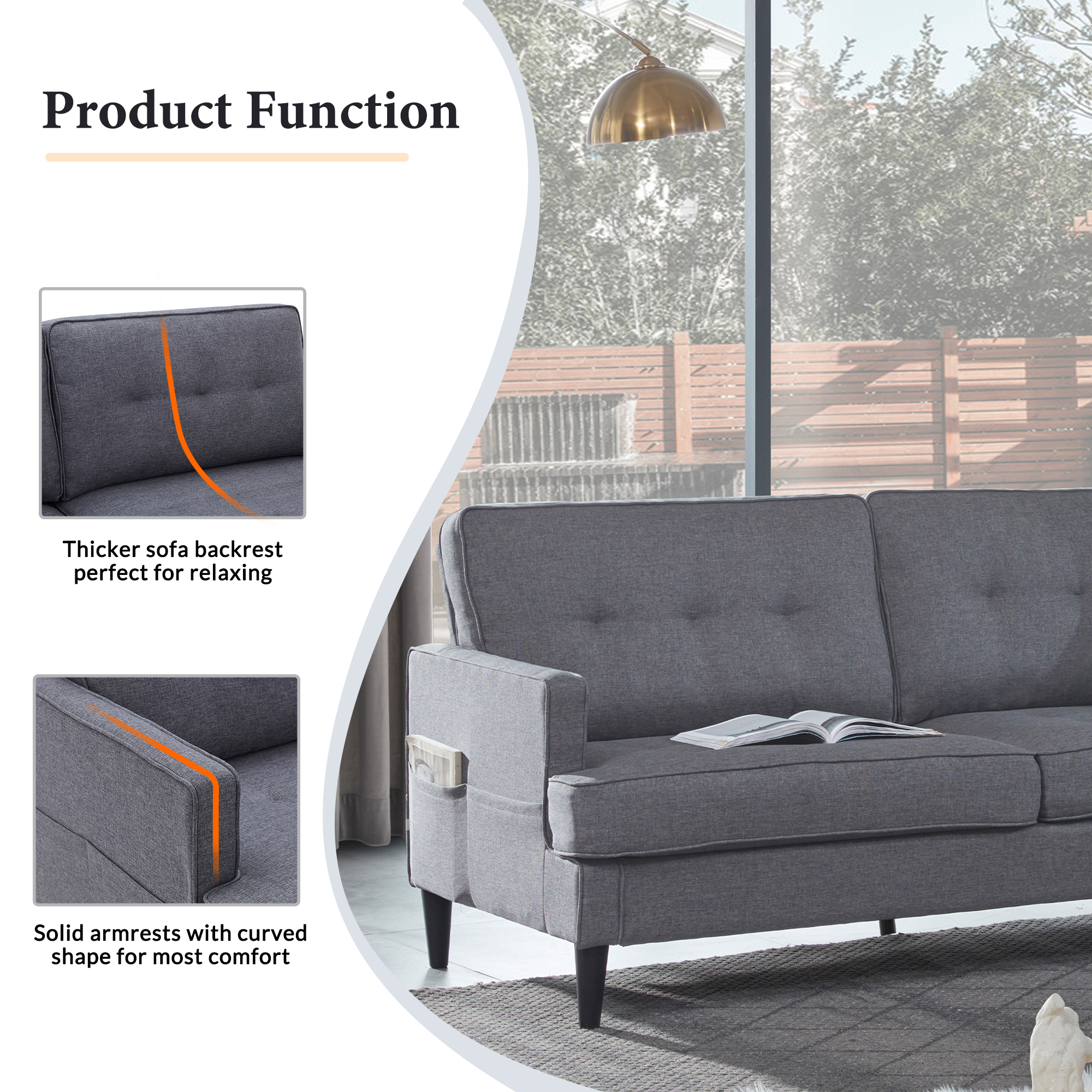 ✔Comfortable Seat Cushion: Seat cushions filled with high resilience foam provide comfortable support for your body when seated, and easily regain their shape when you rise. Sitting in a soft sofa makes your body completely relax.