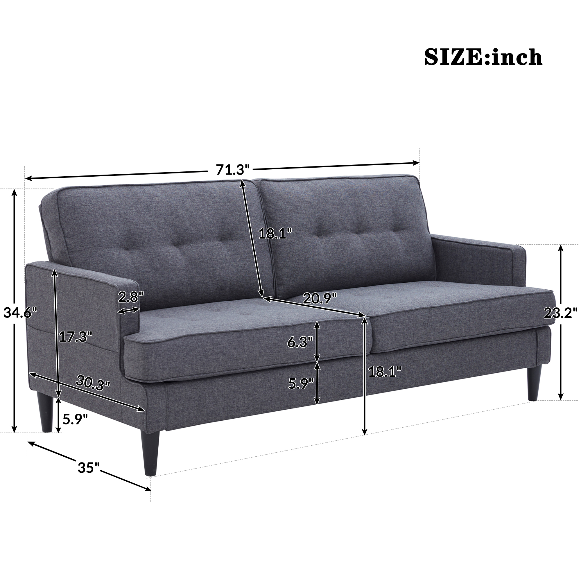 ✔Perfect for Small Space: Don't lost style in your small rooms or compact spaces! This 71 inch small couch adds mid-century charm to your small apartment, dorm, living rooms or loft while its streamlined silhouette arms fuse together to make a modern look.