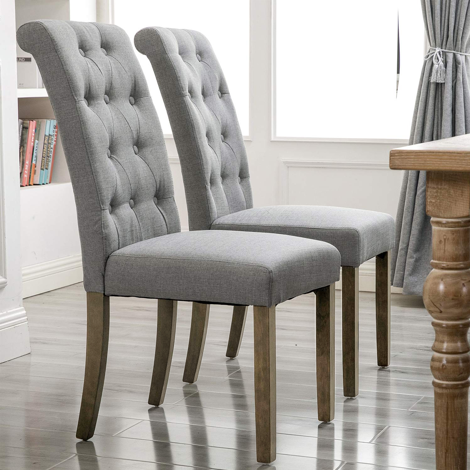 ✔ These high-back chairs are slightly and elegantly curved, expertly finished with linen soft upholstery.