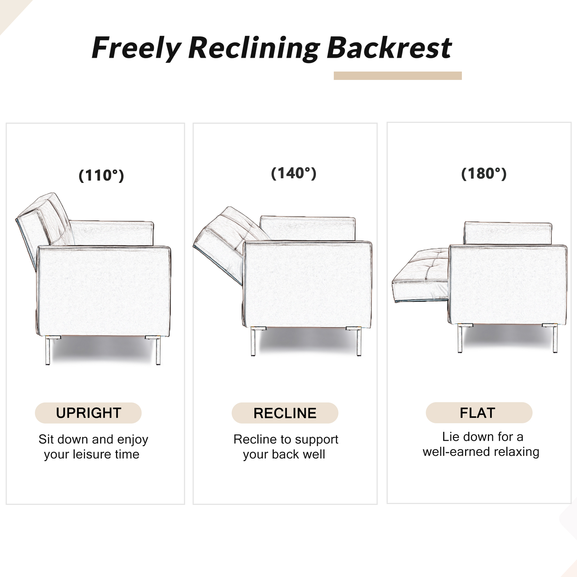 ✔Multiple Adjustable Positions: 3 adjustable positions can offer different comfort to you, if you want to watch TV in your living room you can adjust the back rest to 140 °, if you want to take a nap you can adjust the angle to 180 ° as a bed.