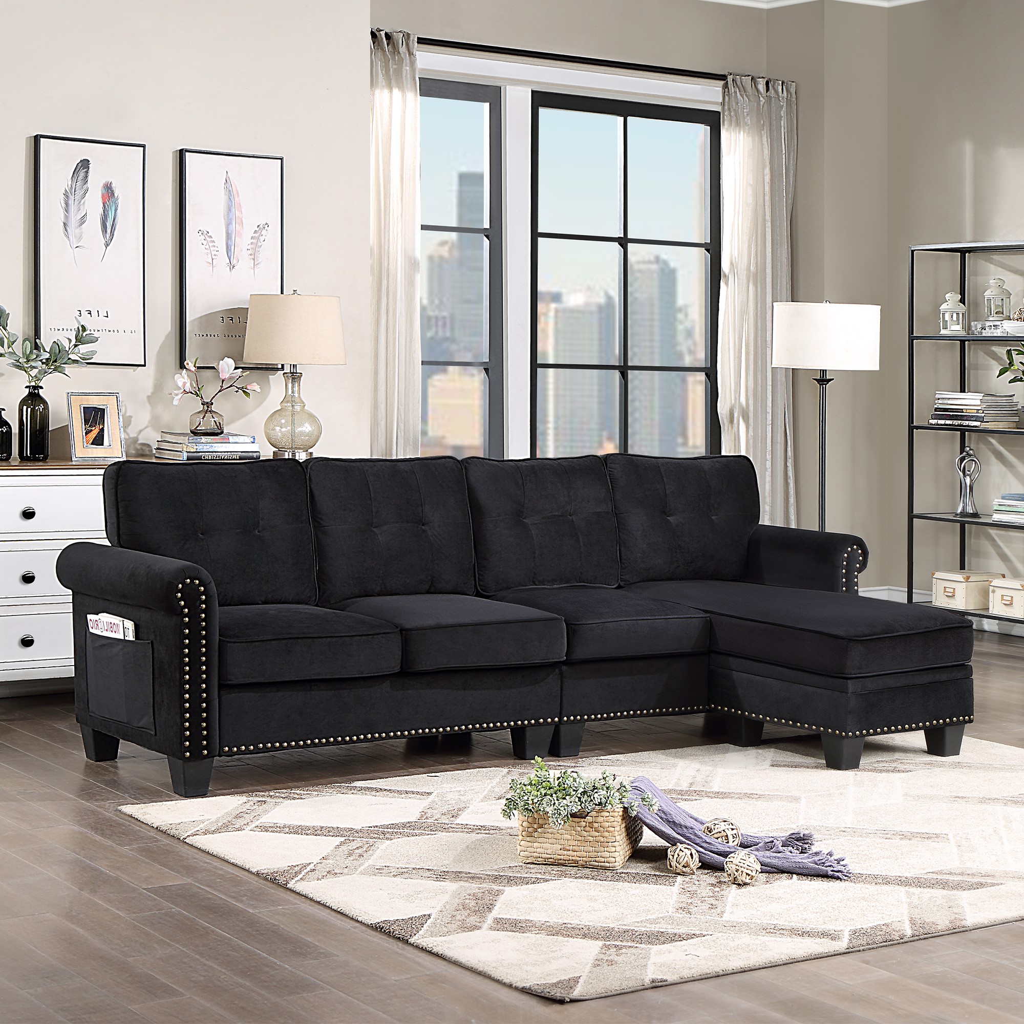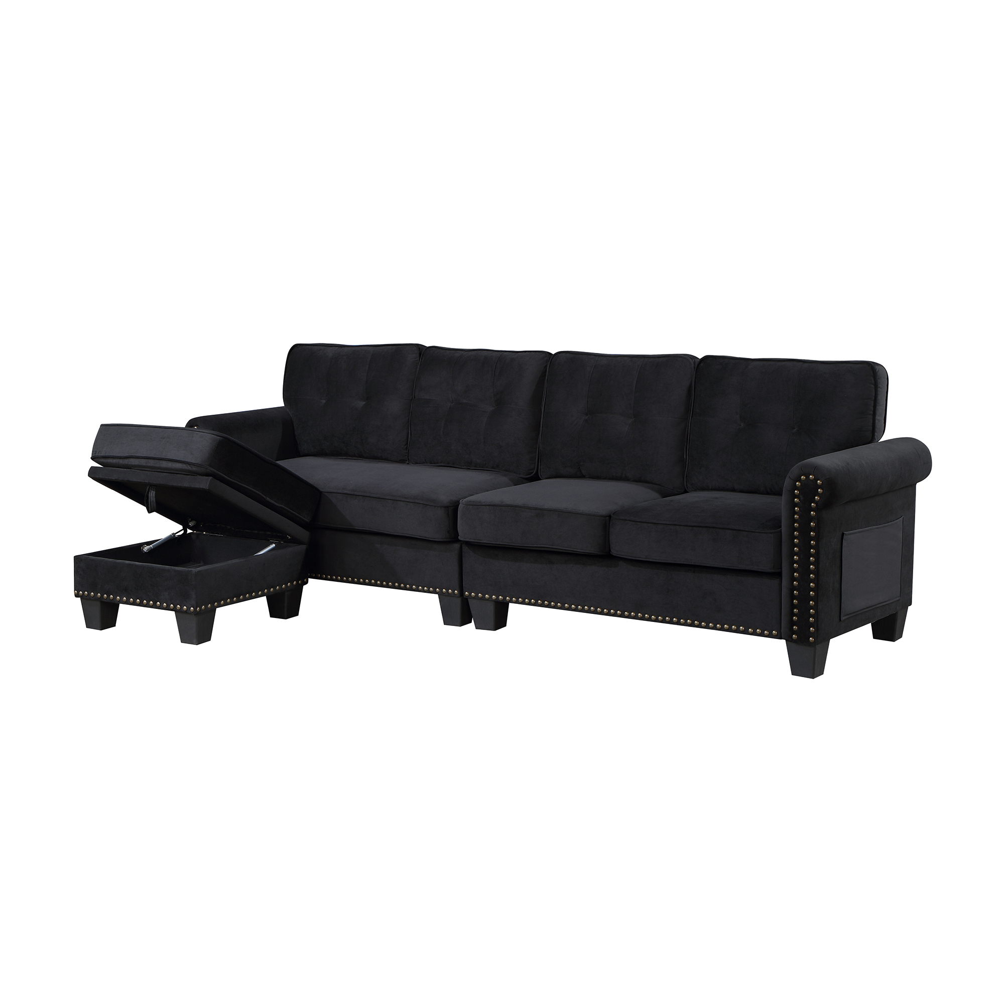 ✔ Perfect Storage Space: This sectional sofa with storage ottoman and handy side pocket will make the perfect addition to your den or living room. The convenient space in the storage ottoman provides the perfect place to put blankets and magazines. Side pocket design to keep small items within reach such as books, tablet, etc.