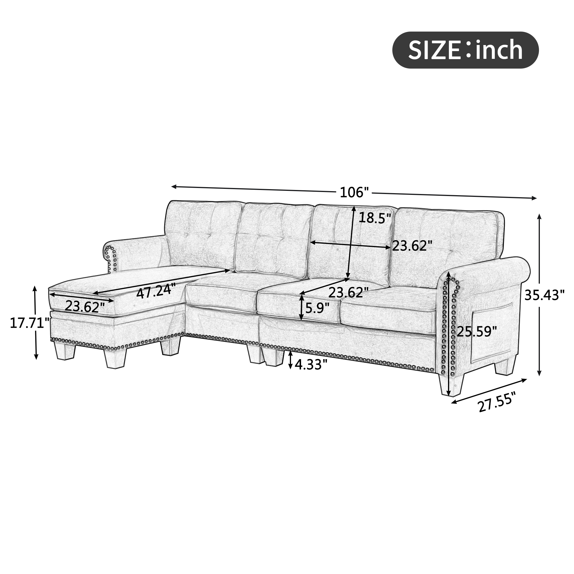 ✔Modern Outlook Design: The modern design features tasteful nail head accents on the front end of the rolled arms, matching perfectly with any decor theme and giving your home a variety of styles.