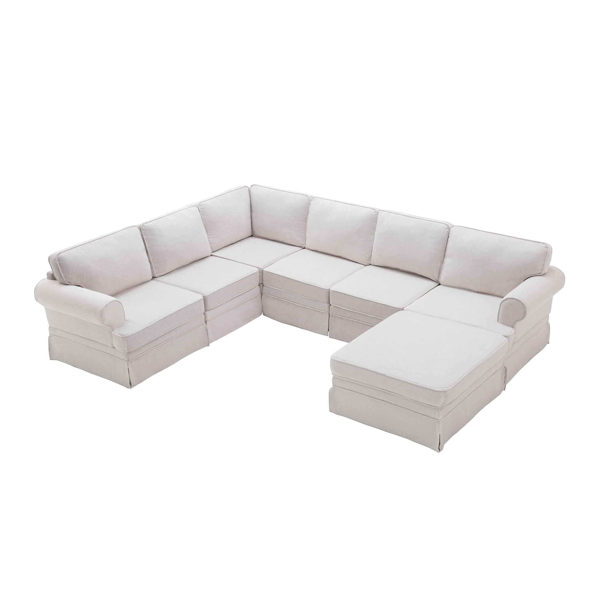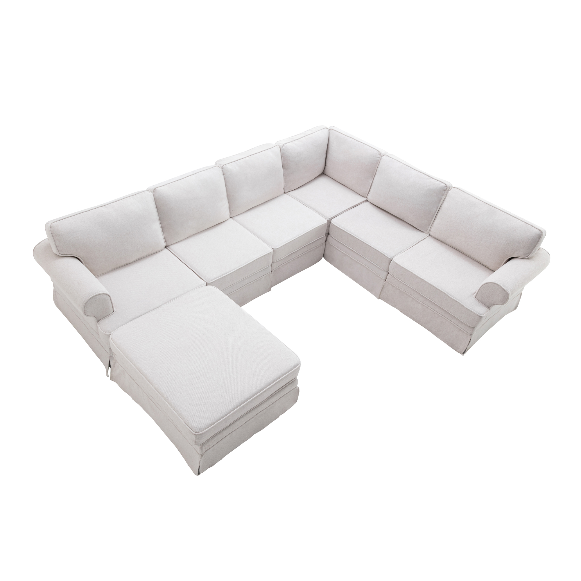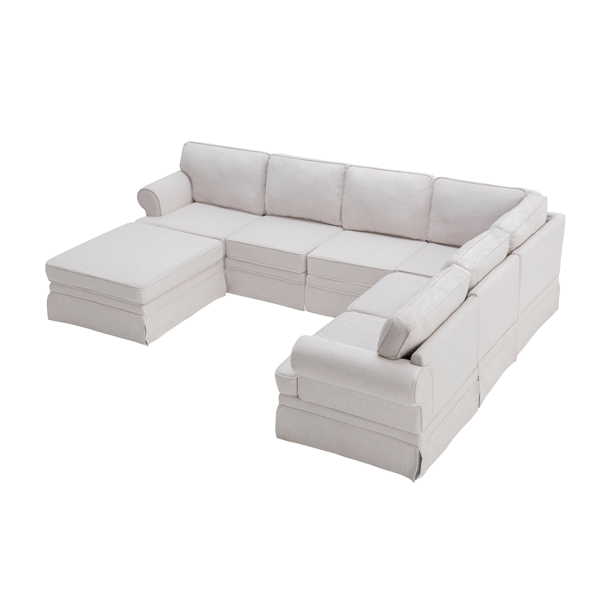 The U-shaped sectional sofa is made up of a number of individual modules that can be arranged into various shapes, a cozy U shape sofa, space-saving L shape sofa with an ottoman to suit any living space, large or small.