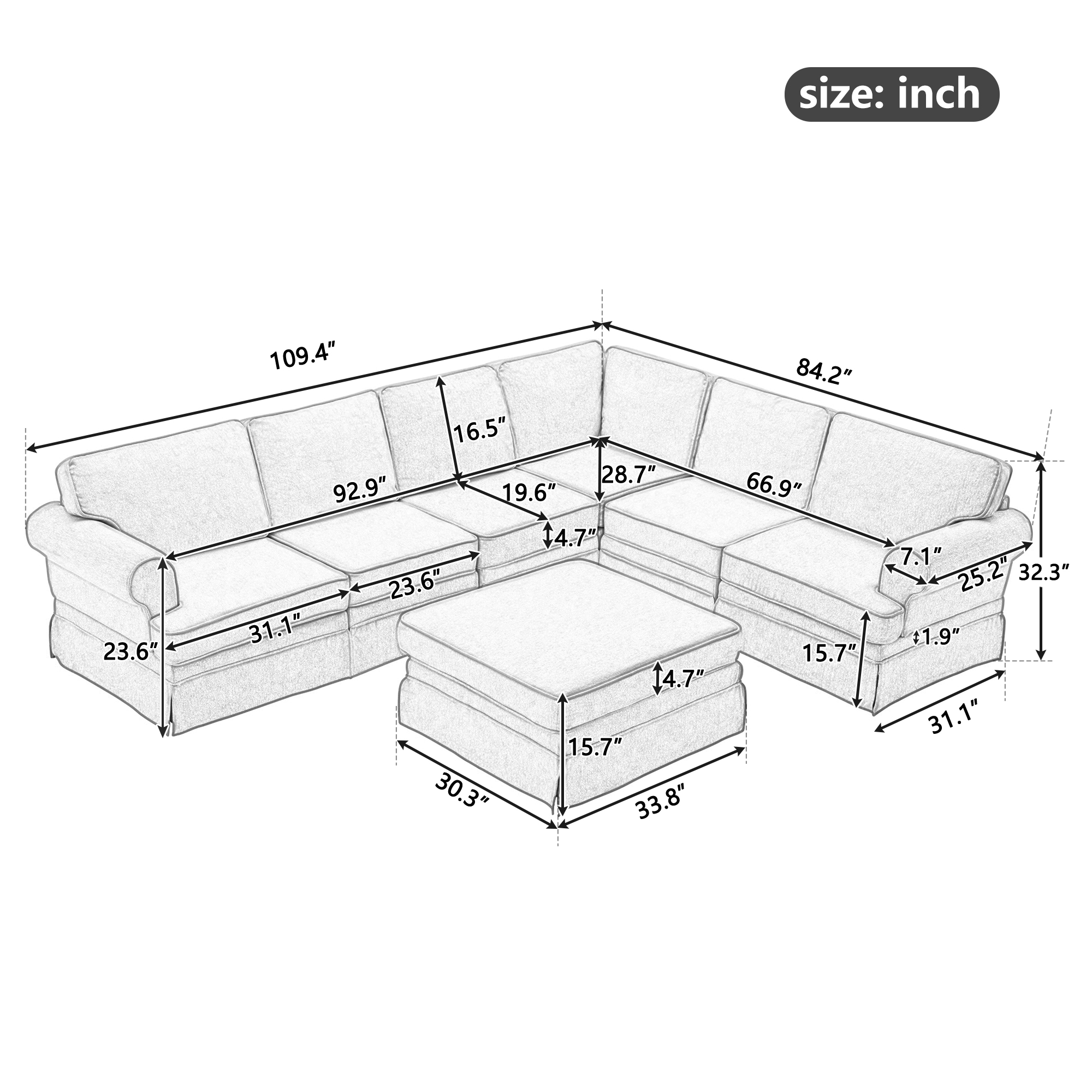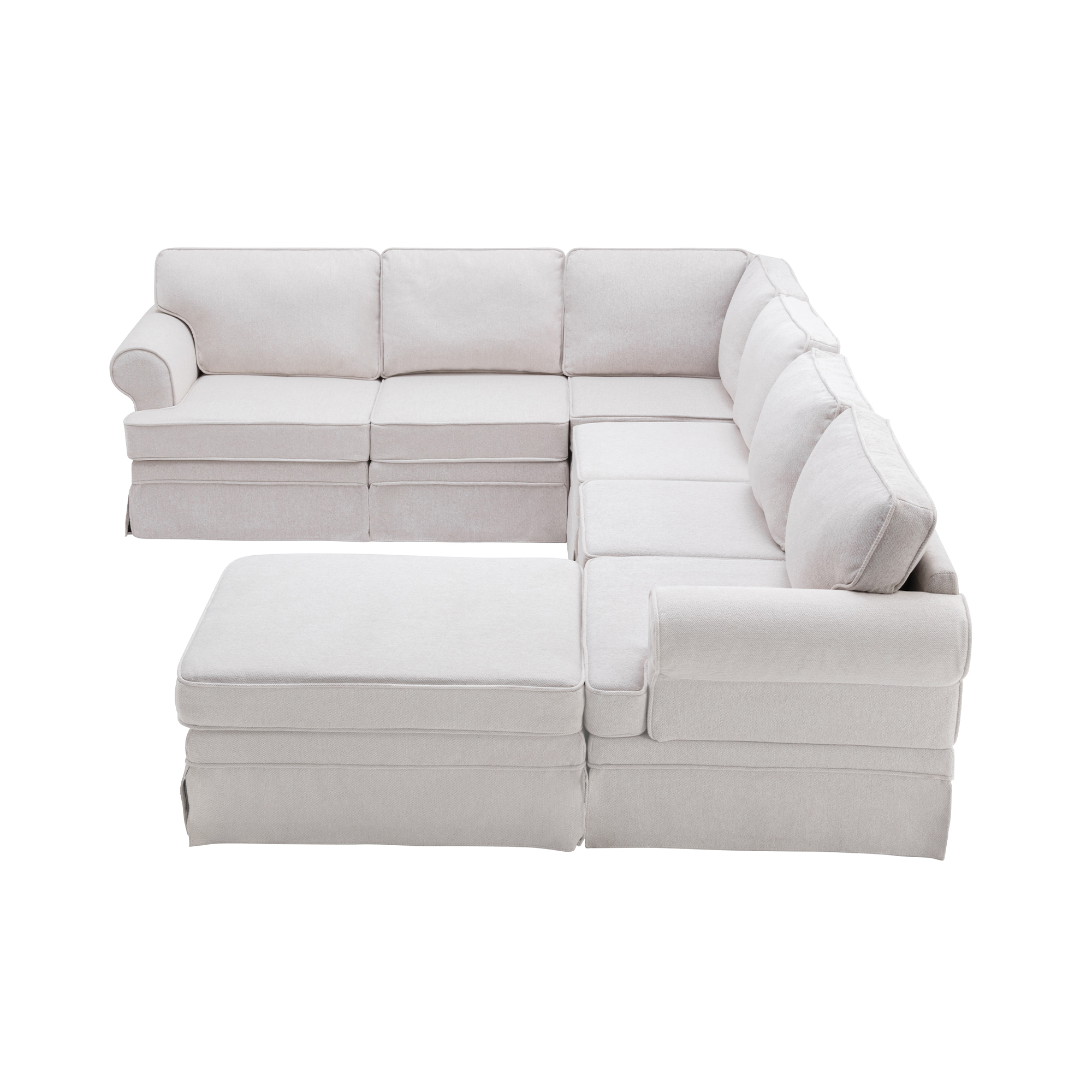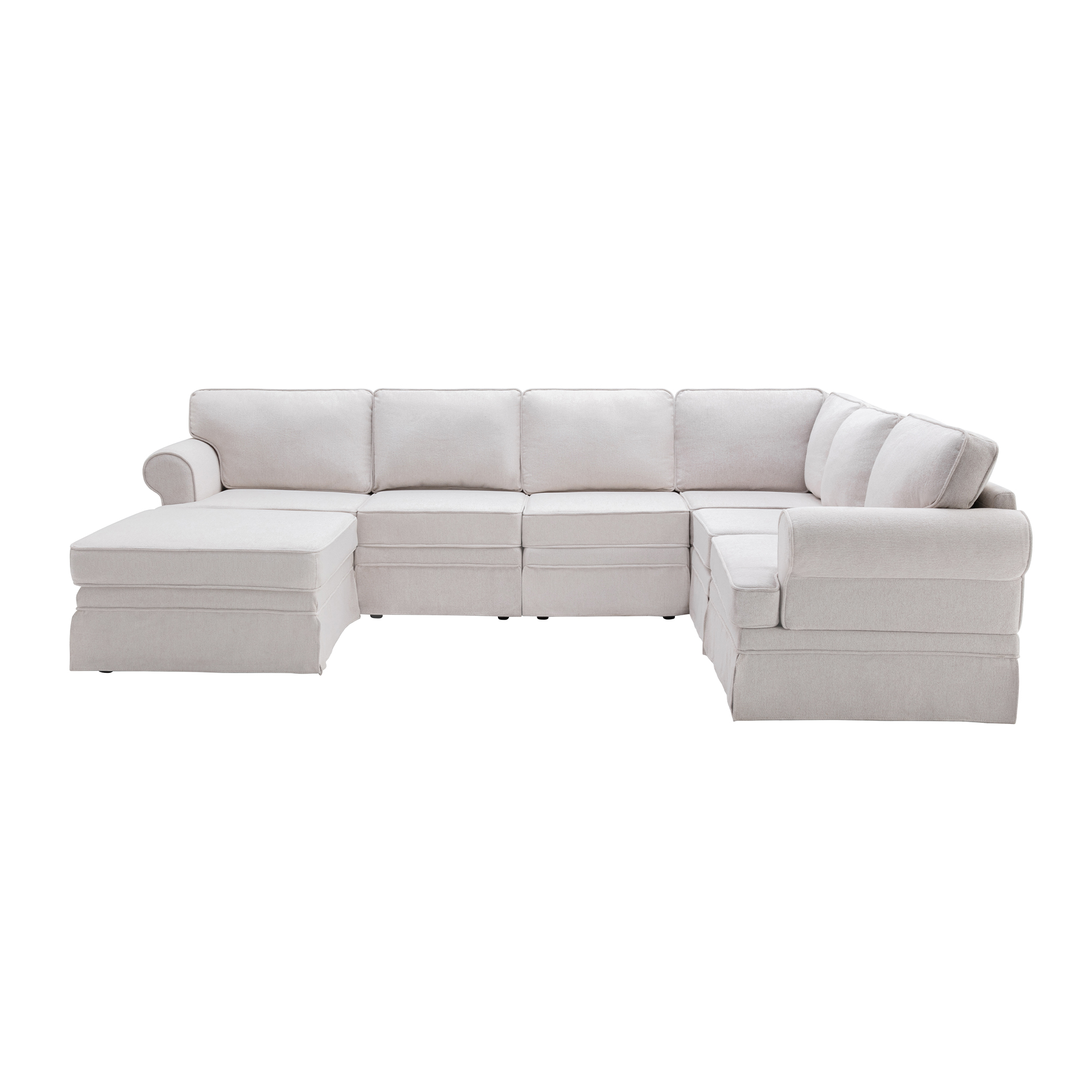 The U-shaped sectional sofa is made up of a number of individual modules that can be arranged into various shapes, a cozy U shape sofa, space-saving L shape sofa with an ottoman to suit any living space, large or small.