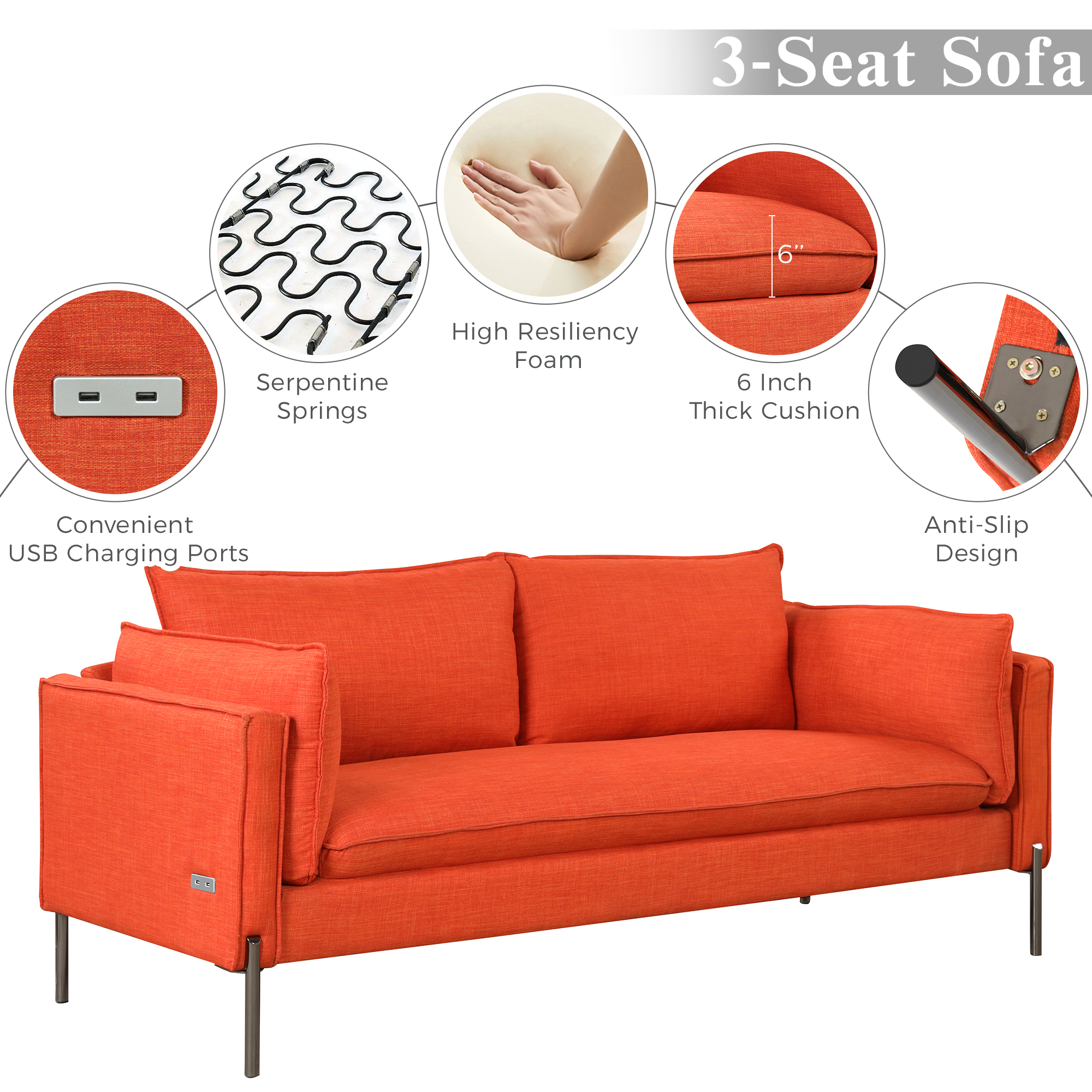 Orisfur.Modern Style 3 Seat Sofa Linen Fabric Upholstered Couch Furniture 3-Seats Couch for Different Spaces,Living Room,Apartment