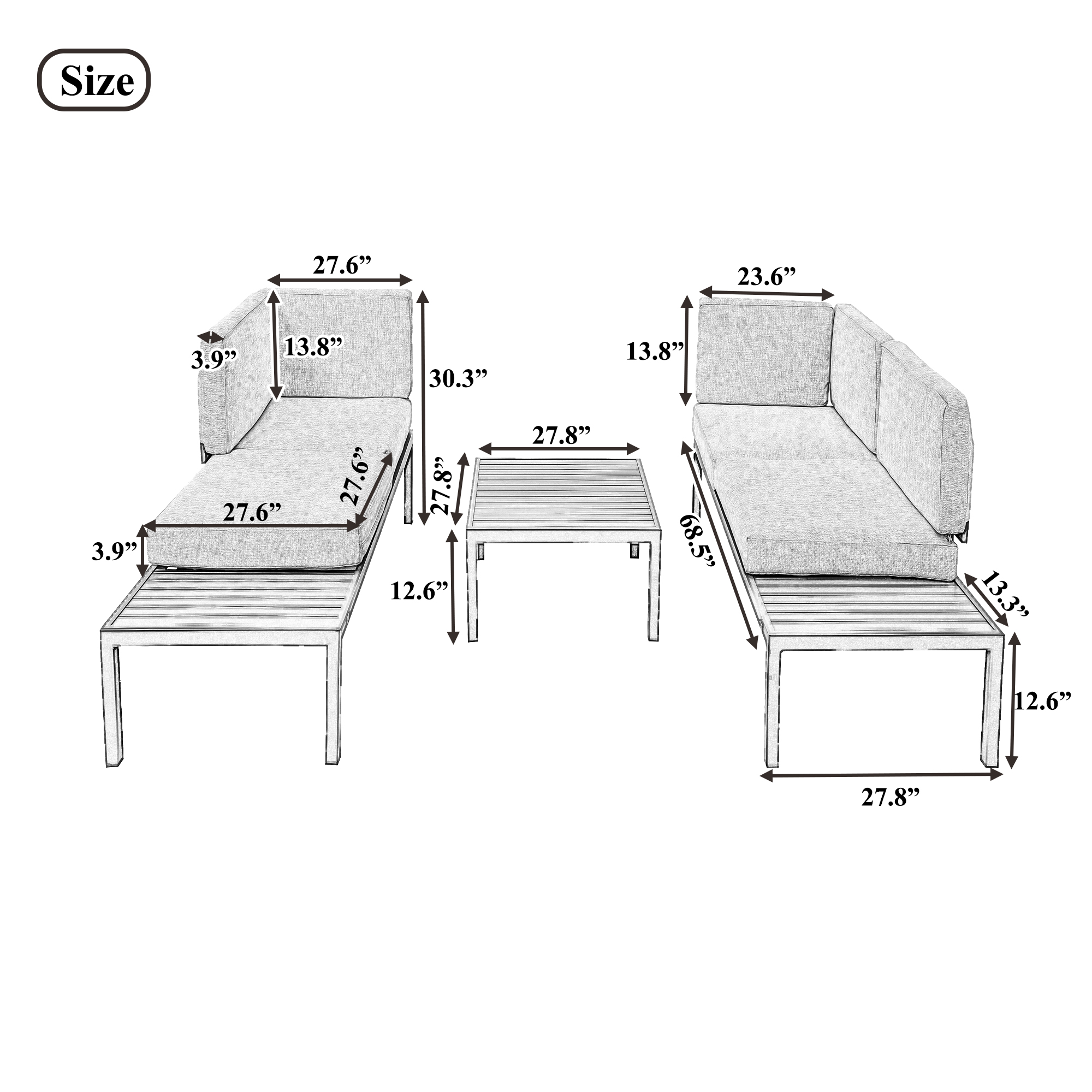 Overall Product Dimension | Table Size (Overall): 27.8"x 27.8" x 12.6" Sofa Size:68.5”×27.8”×30.3” End Table:27.8"x13.3" x 12.6" cushion:27.6"x 27.6" x 3.9" Pillow : 27.6"x 13.8" x 3.9"(just one smaller size: 23.6"x 13.8" x 3.9") |