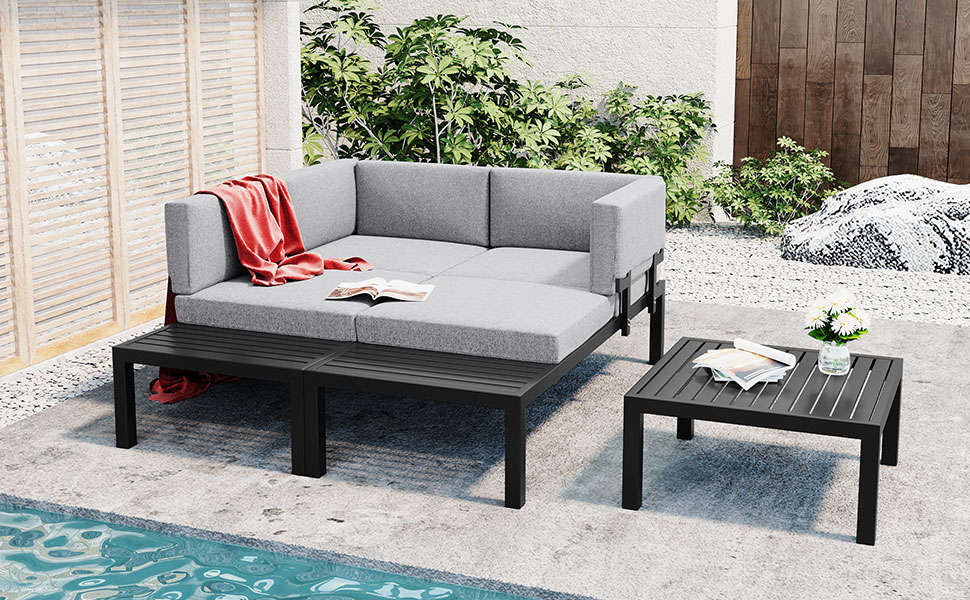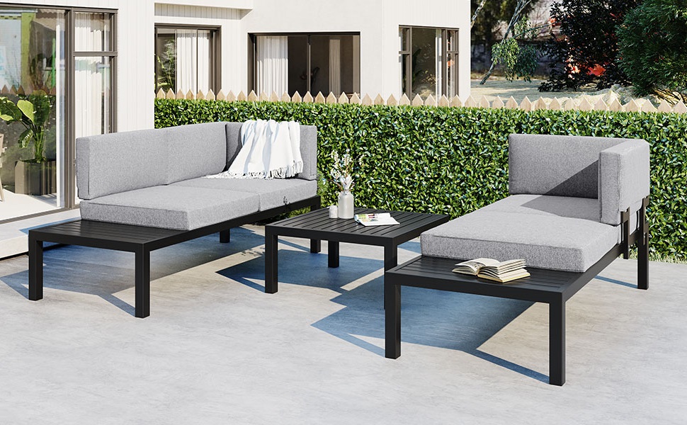 Two independent sofas support free combinations. By adjusting the position of the sofa, this outdoor sofa set will supply different demands and ensure the diversity of use scenes.