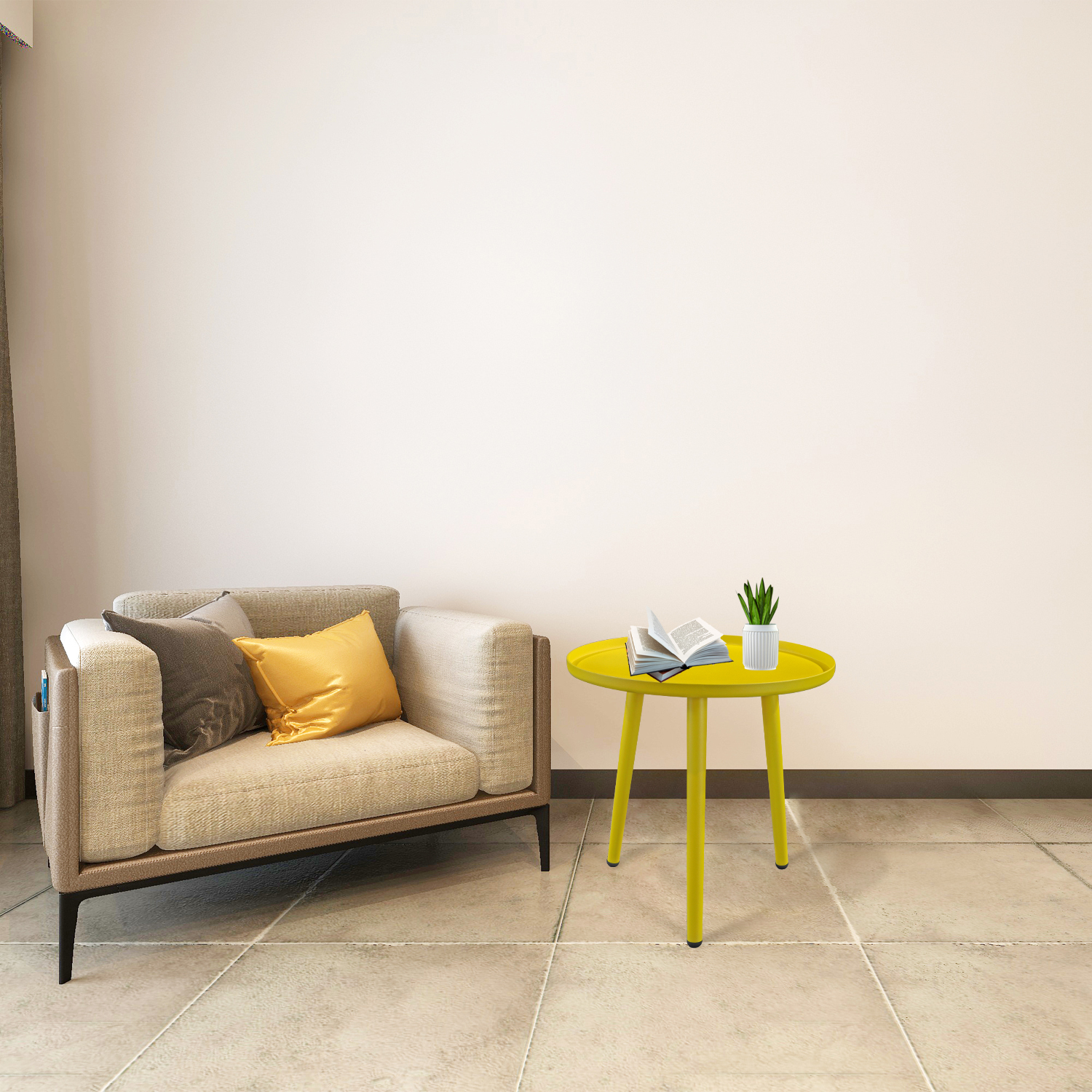 Outdoor Coffee Side Table Aluminum End Table Rust-Resistant 3 Legged Modern Small Table for Living Room Bedroom Patio Garden (Yellow)