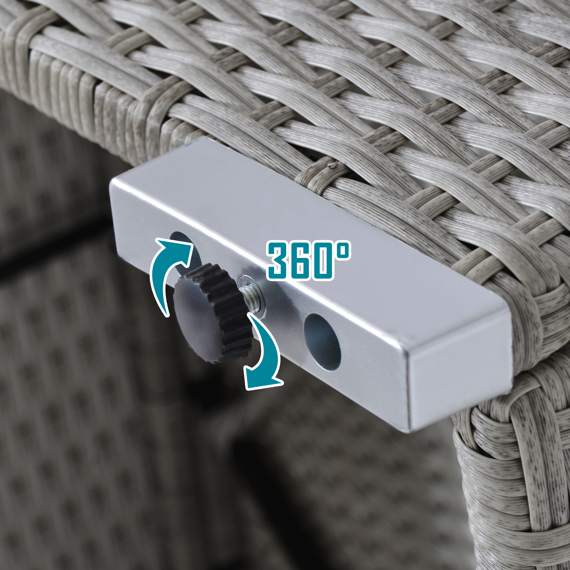 Can adjust the height of the chairs & table to make them more smooth and steady. Silver-color foot pads highlight the setting, more fashion and high-class sense.