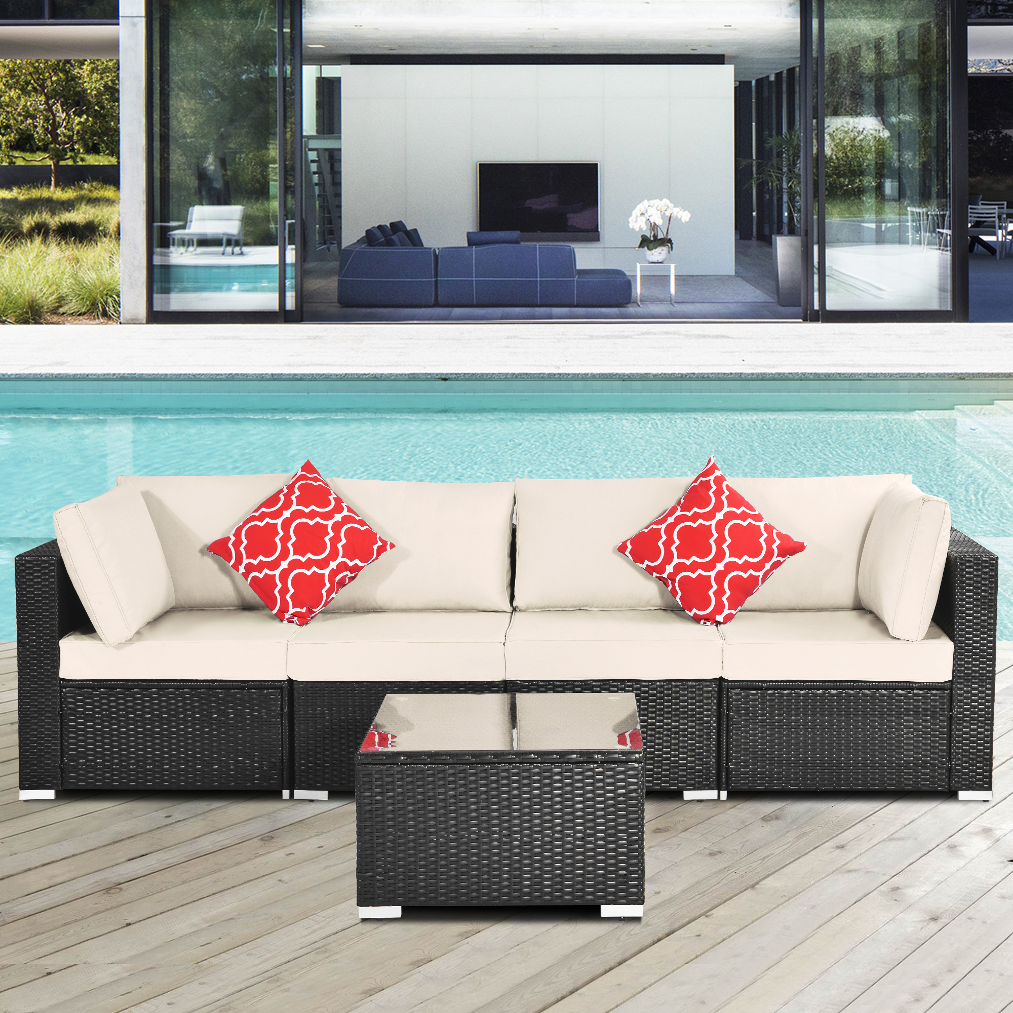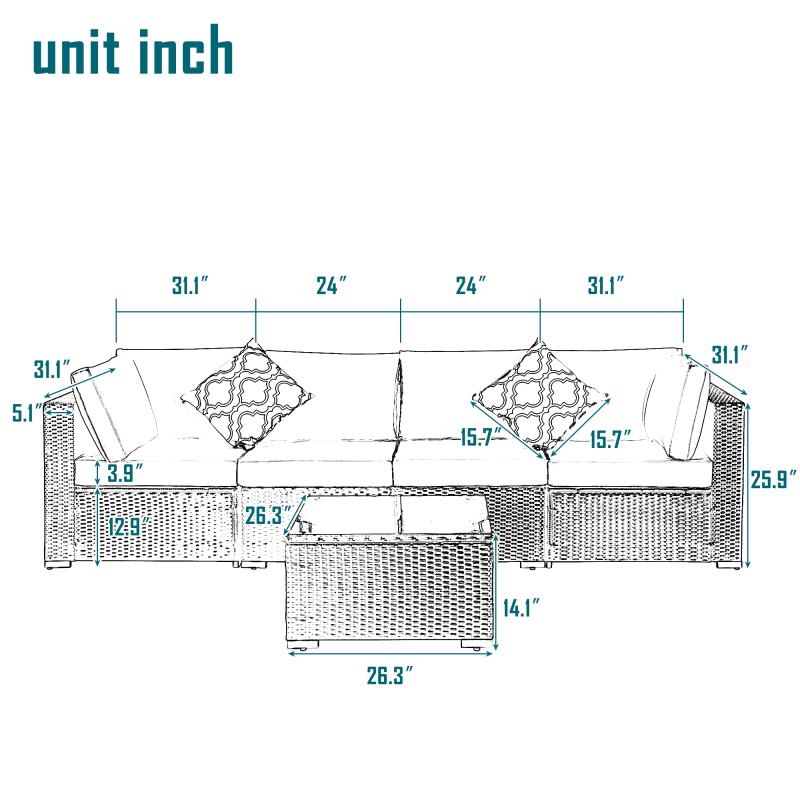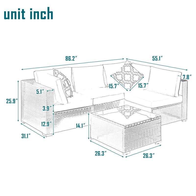 The 5 PCs sectional wicker sofa set has 4 boxes in all with detailed instruction.