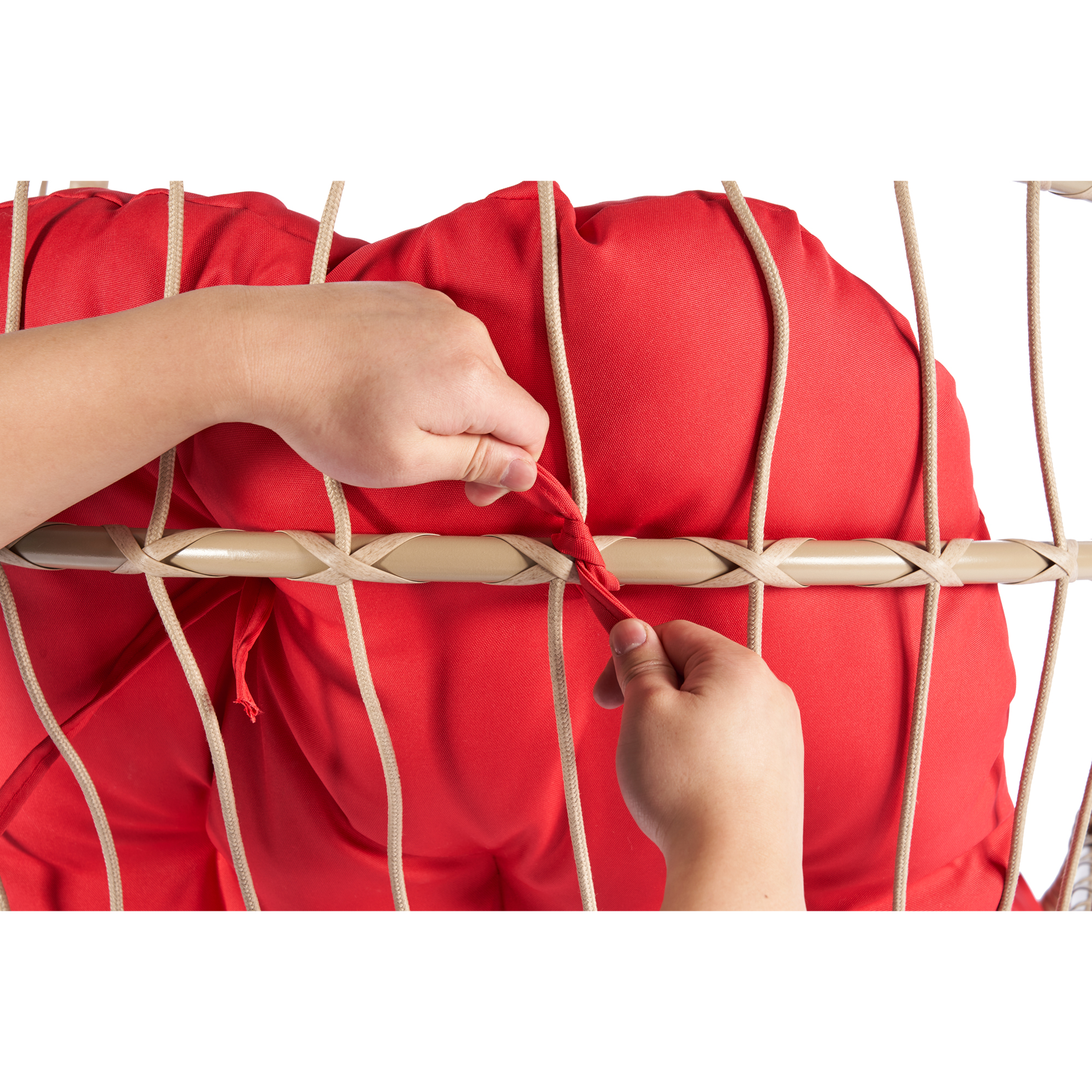 【PORTABLE DESIGN & FOLDABLE BASKET】This Hanging Chair with Stand All-in-one Seat, Back and Arm cushion also features Zippers to Easily Remove the Inner Cushions for Cleaning; The whole frame is made of Powder coated metal,and the frame and seat surface of the Egg Chair are made of rattan ,it's safe enough to accommodate an adult to swing.Safety strap helps keep the chair safely in place while getting in and out of the chair.