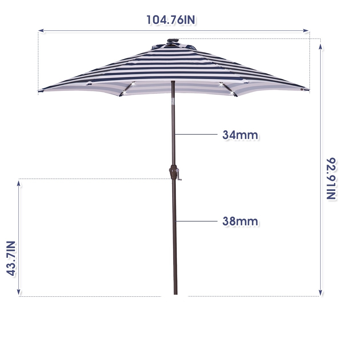 【8.7Ft Patio Umbrella】The 8.7 Ft Dia canopy with flap is ideal for your 50" round, square or rectangular table with around 6 chairs .It provides wide enough shade for your patio, garden, deck, pool and beach.